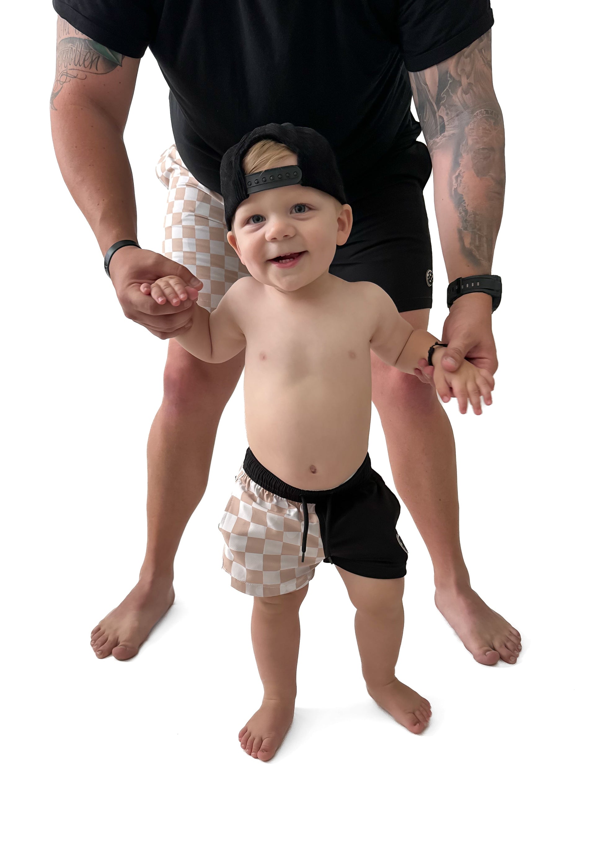 Take on the beach, the gym and all wet and dry in between. Our Hybrid Shorts feature a high quality, stretchy, water repelling material for functionality and your comfort. Match with your minis in Our Hybrid Shorts and create memories to last a lifetime!
