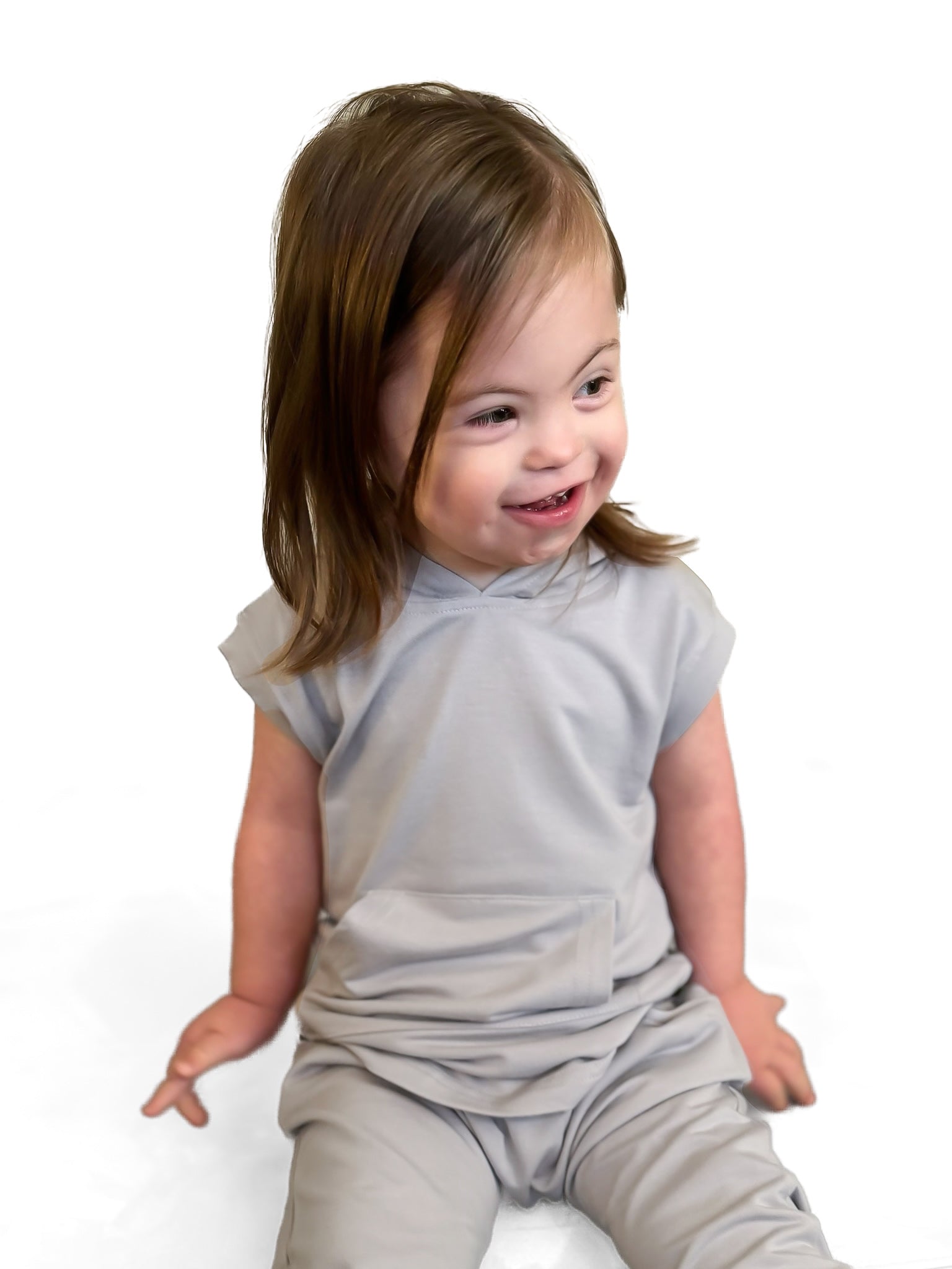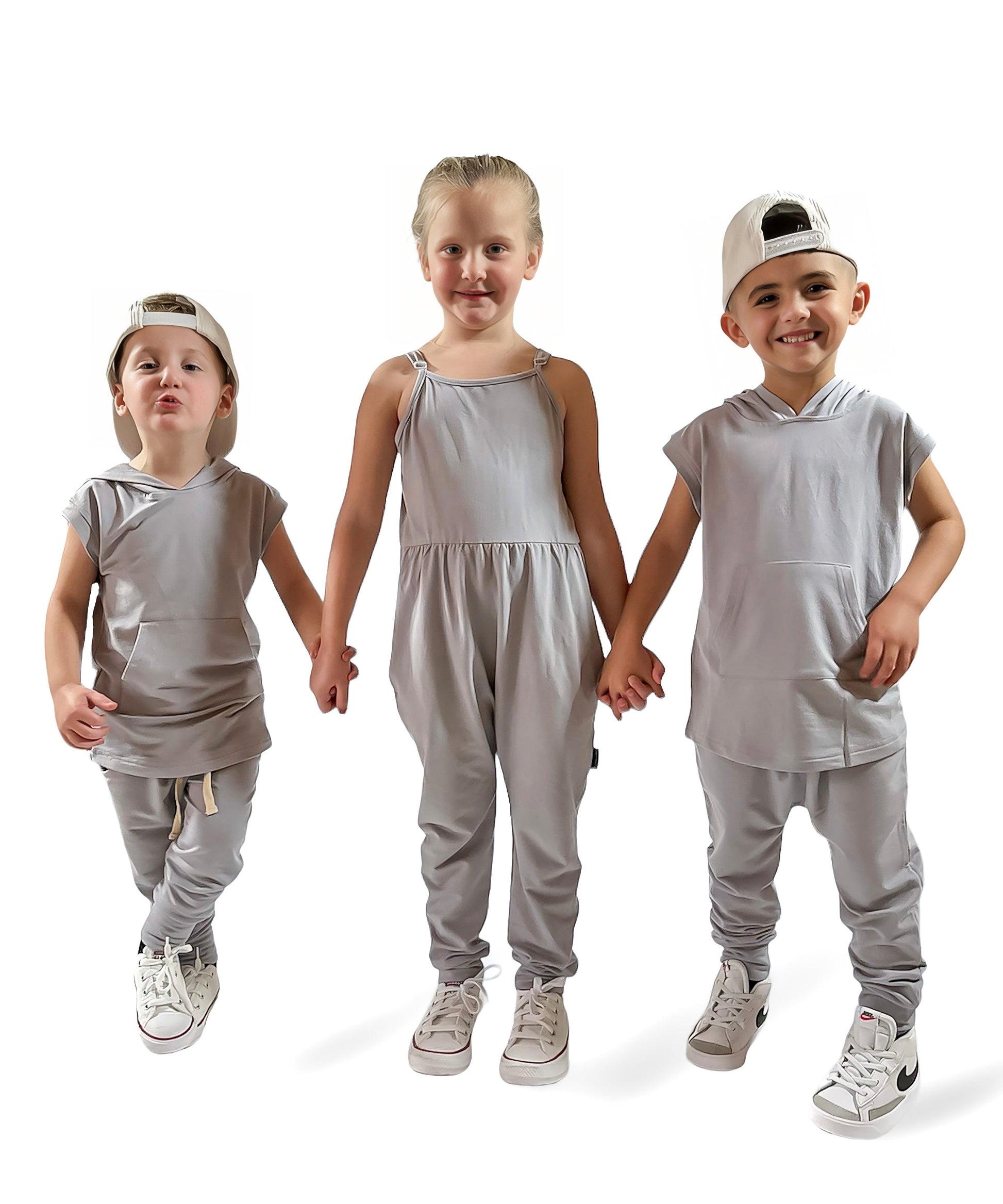 Our ever loved Bamboo Hooded Muscle Tee is back! Featuring a new color, FROST! With a large kangaroo pocket for the extra style, our Bamboo Hooded Muscle Tee will elevate your little stylers wardrobe. Whether you layer a long sleeve/tee underneath, or style it with a jacket, comfort will meet style.