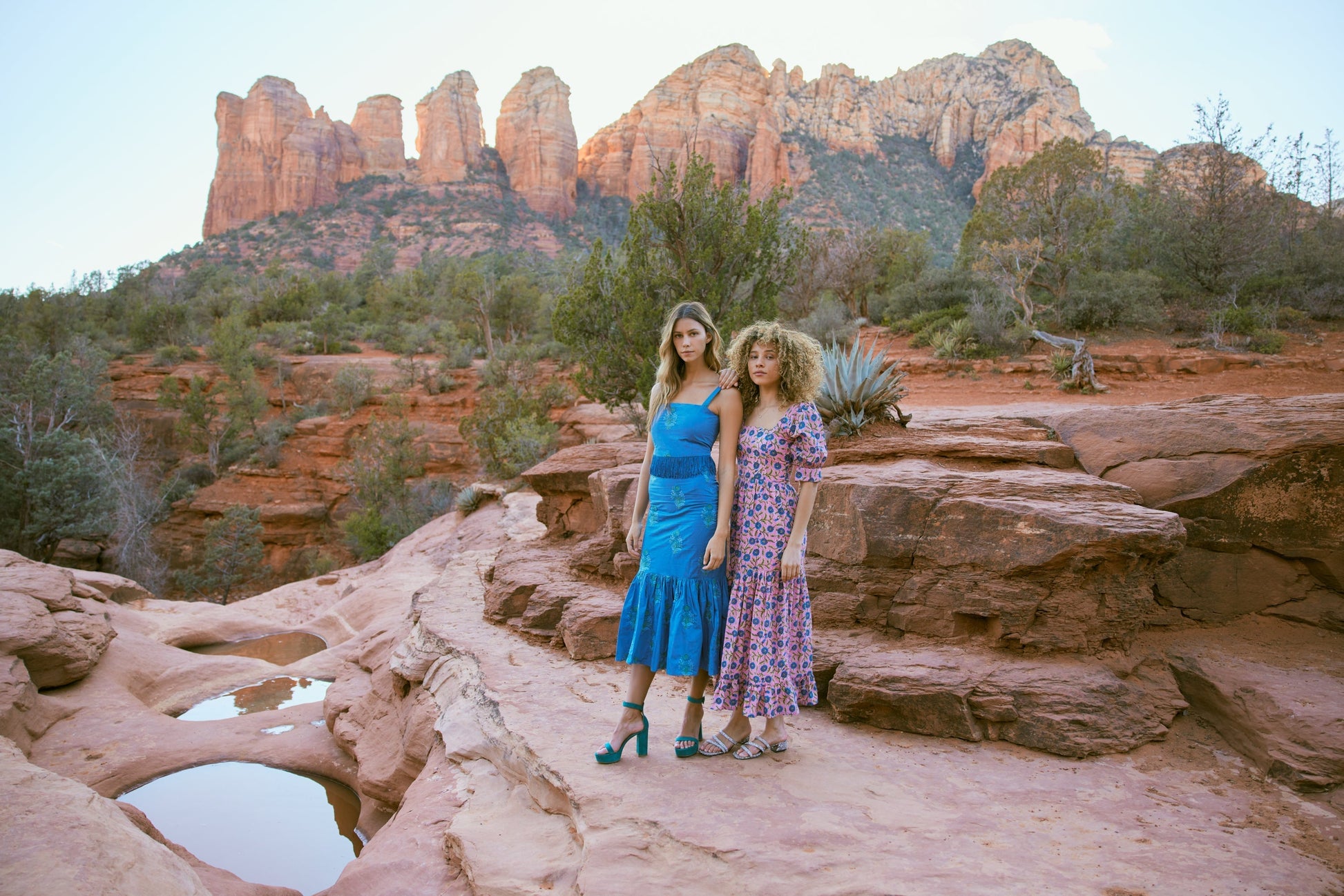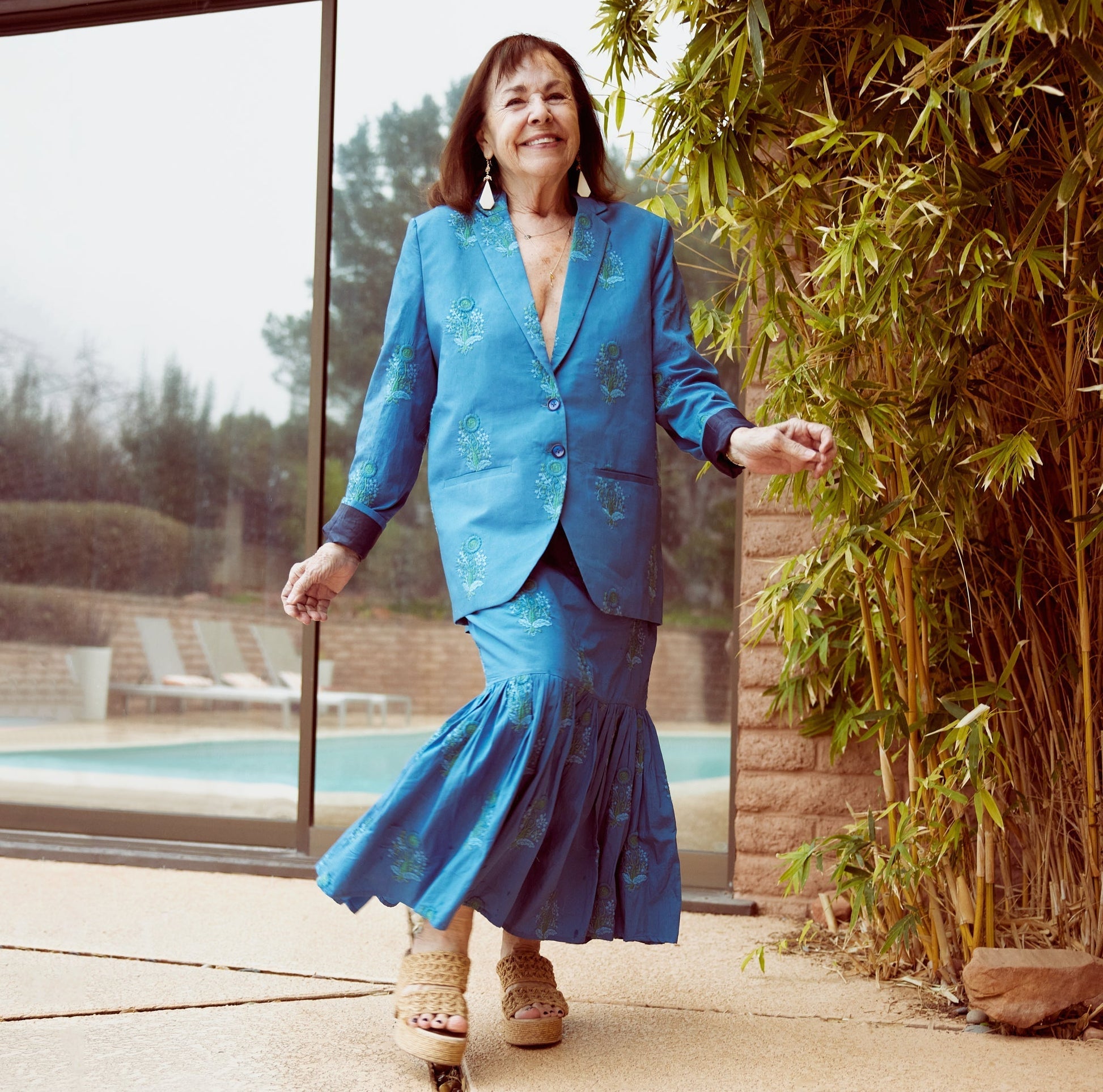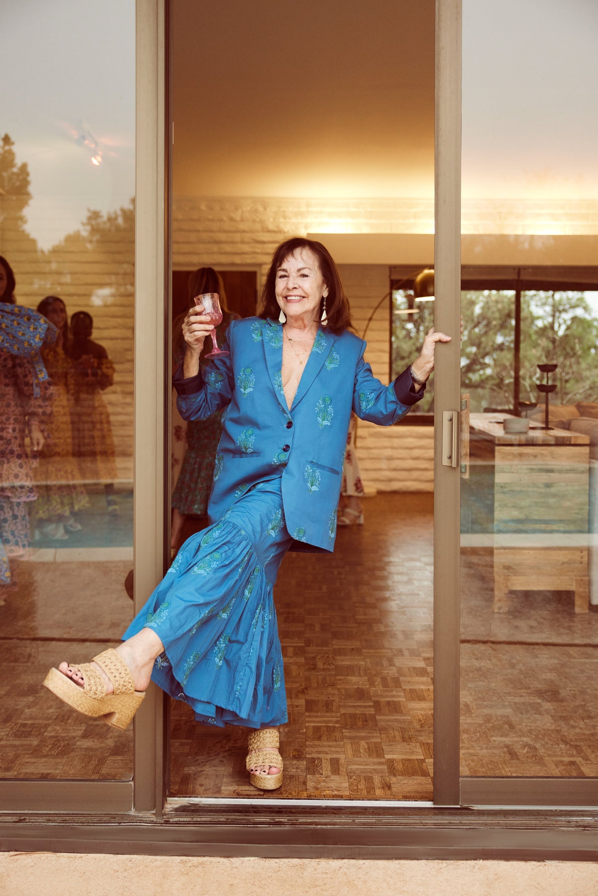 Pictured paired with the Brook Embroidered Fringe Tie Top and the Brook Embroidered Blazer