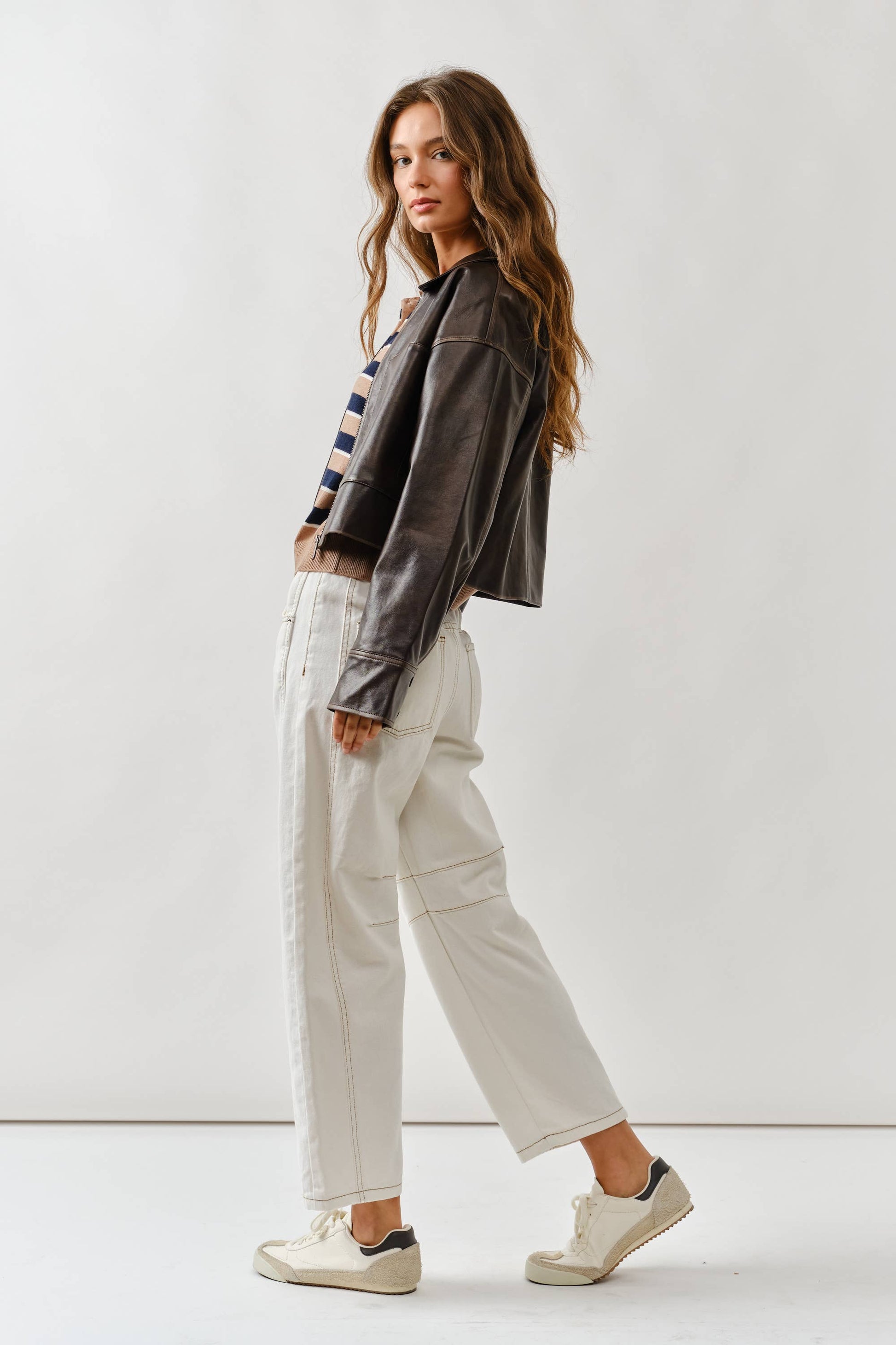 Crafted from faux leather with a vintage-washed finish, this timeless jacket brings a rugged yet refined edge to your collection. Designed with a relaxed silhouette, it features practical side pockets, a zip-front closure, and subtle distressing for that perfectly worn-in look. Effortlessly cool