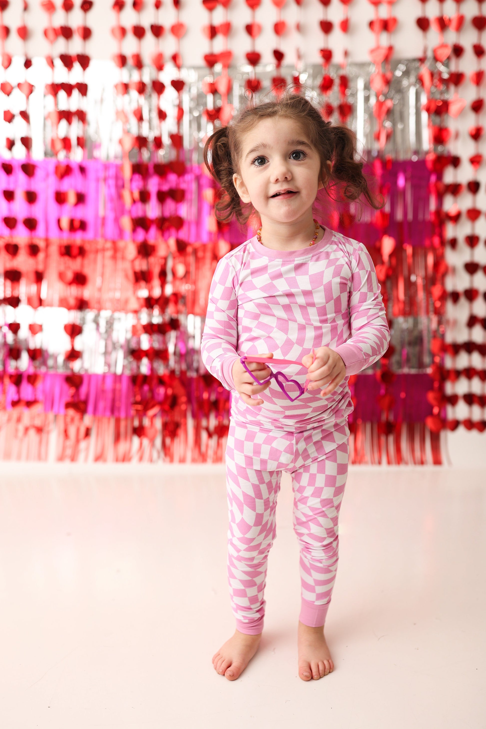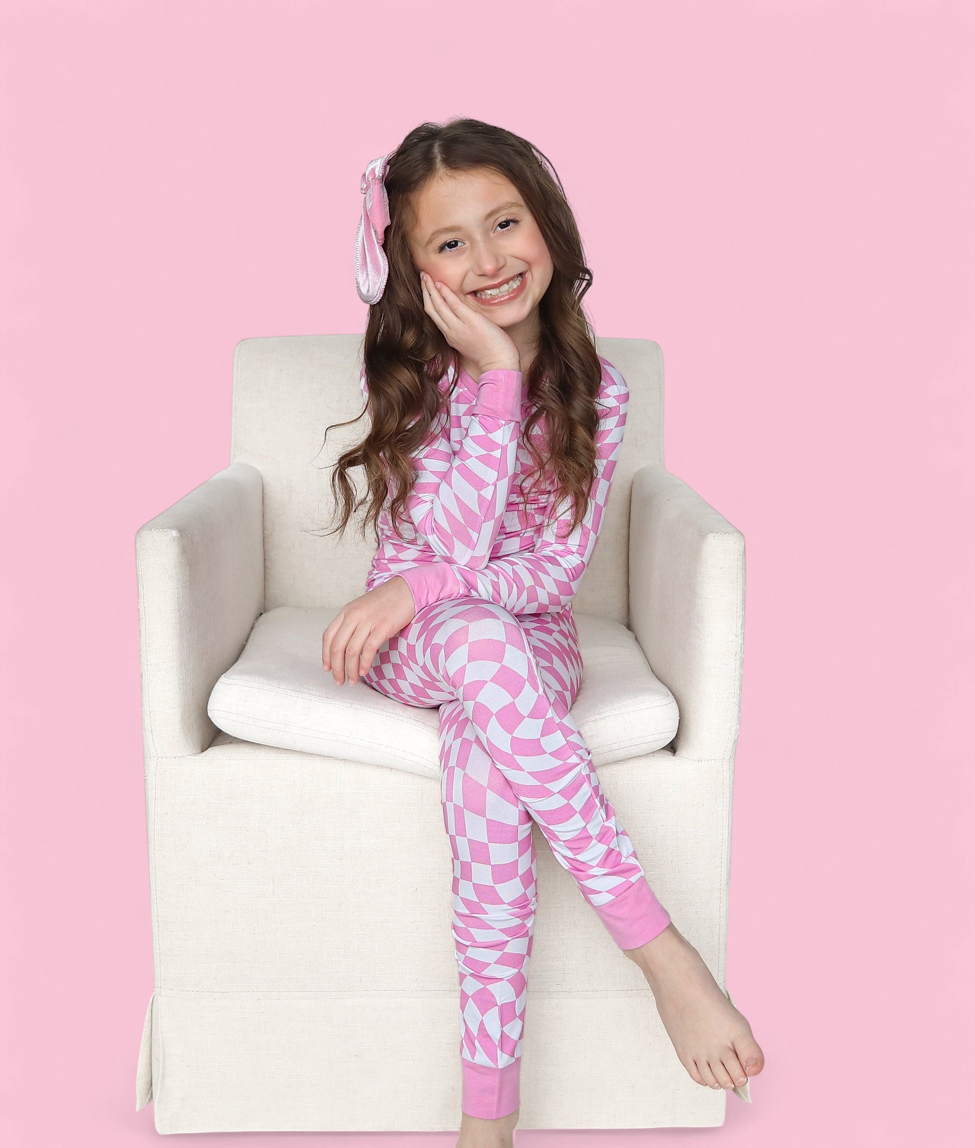 Get ready to ride the wave of comfort with our Bubblegum Wavy Checkers Dream Set. Made from ultra-soft bamboo material, this long sleeve dream set will have you feeling cozy and stylish all day long. Go ahead, treat yourself to a dreamy night's sleep (or lounge session) - you deserve it!