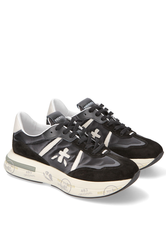 Drawing inspiration from 70s running shoes, the Cassie seamlessly blends the charm of a vintage silhouette with contemporary design elements. The upper is made from black nylon accompanied by black suede accents. This piece is completed by the complementing black laces.