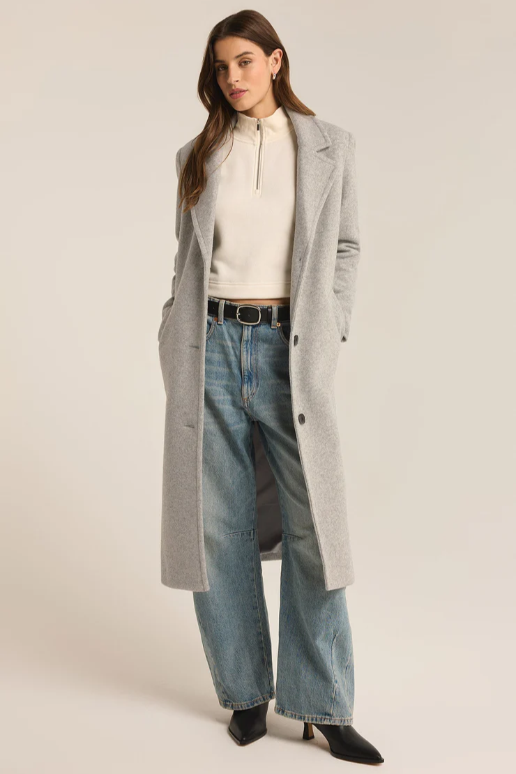 Discover the perfect layering piece with this heathered plush coat, featuring a classic collared, button up design for easy styling. Complete with side pockets, this lined coat adds a touch of relaxed sophistication to any outfit.