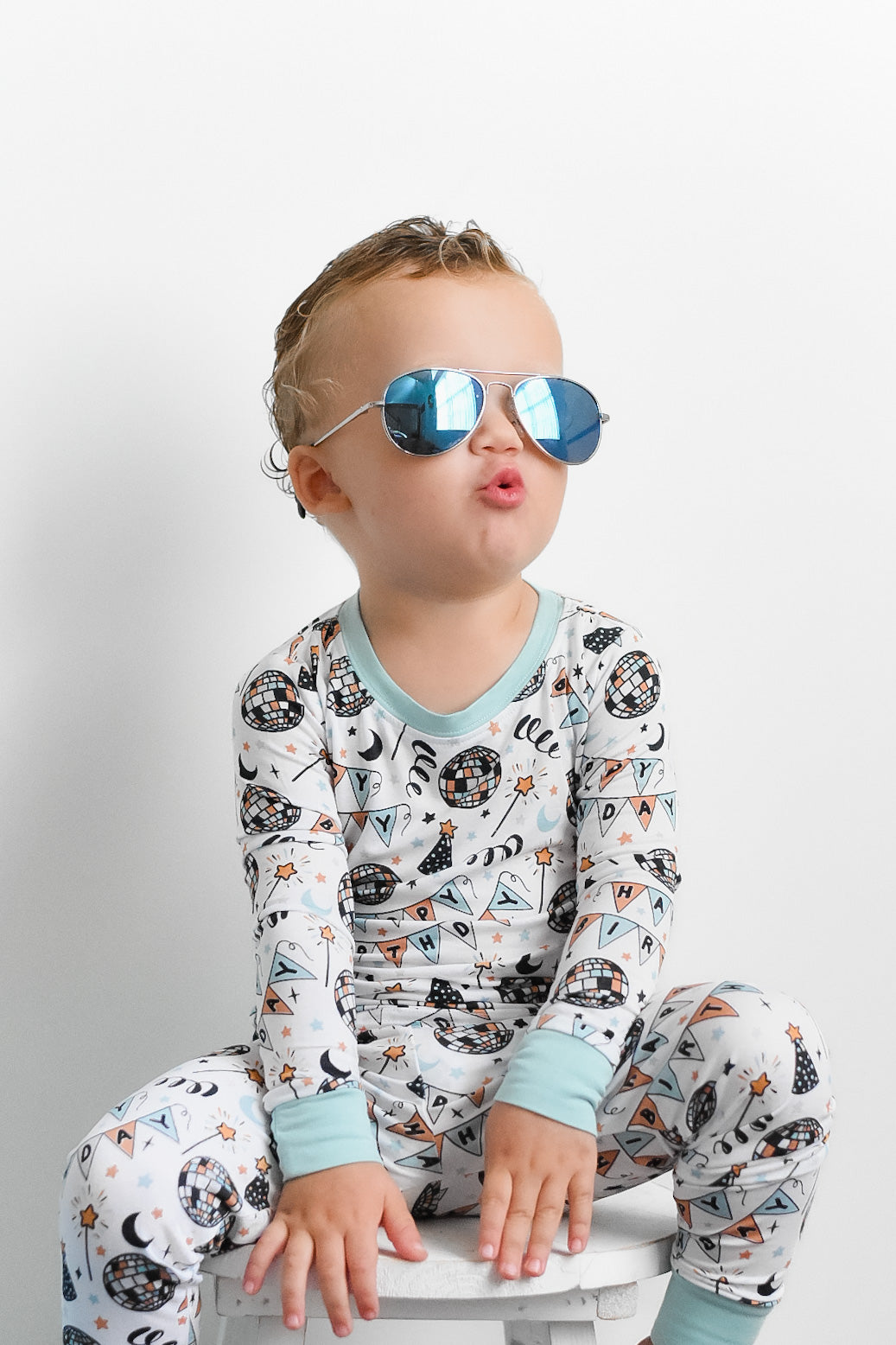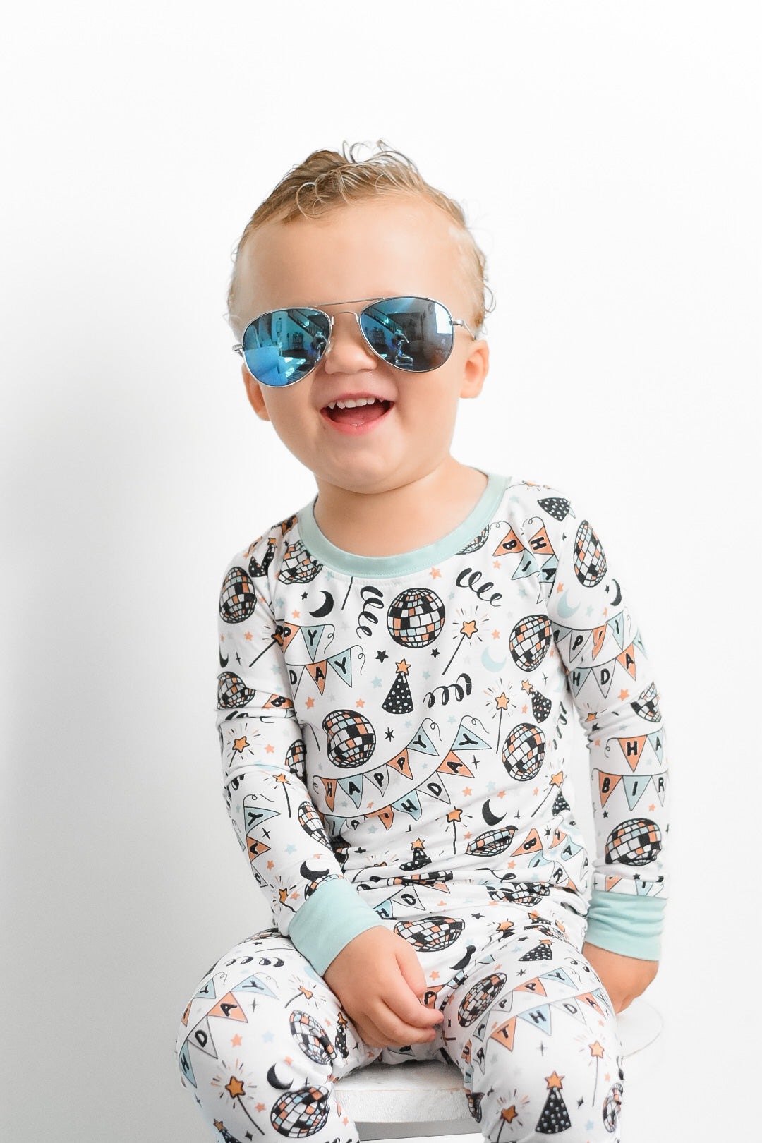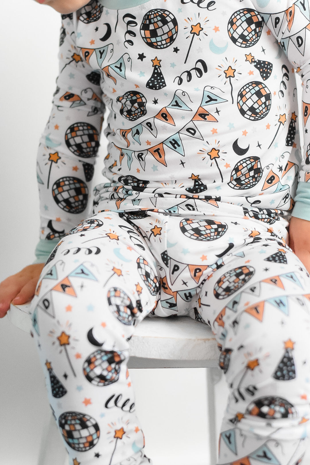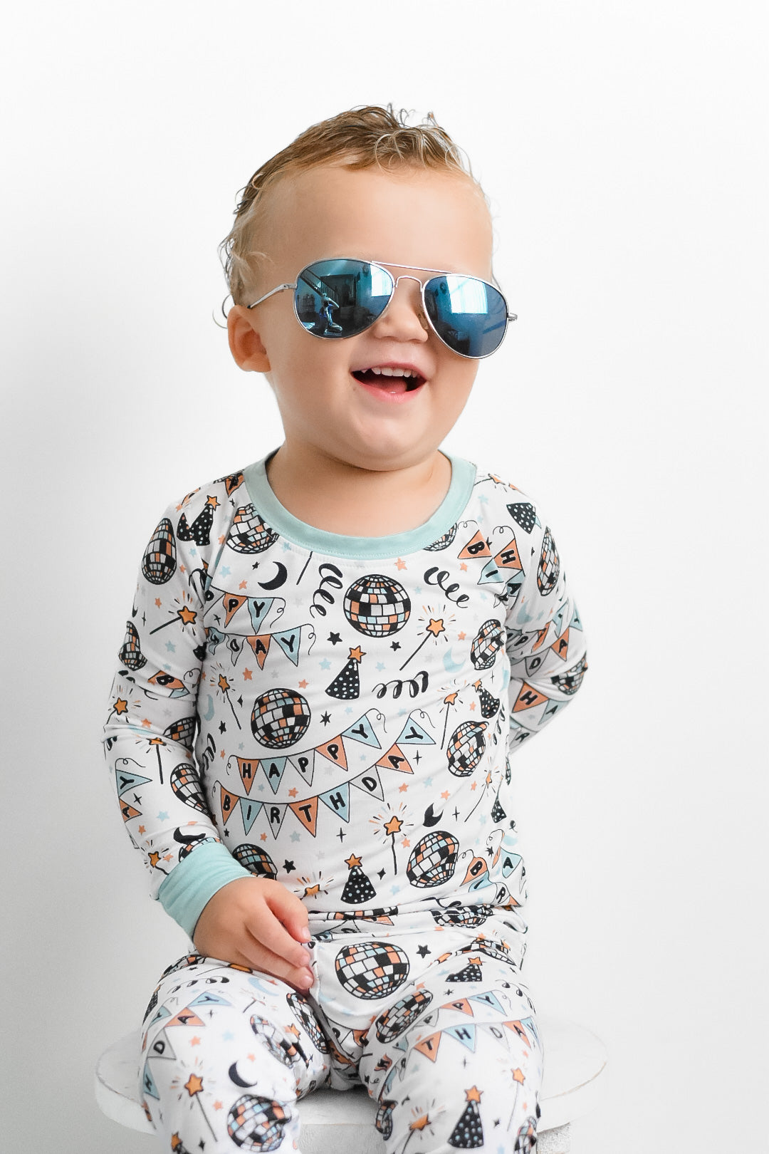 The Disco Birthday Boy Dream set is here to turn any ordinary night into a wild celebration! Decked out with classic long sleeve and pant pajama styling, your little one is ready to boogie the night away - wink wink!!