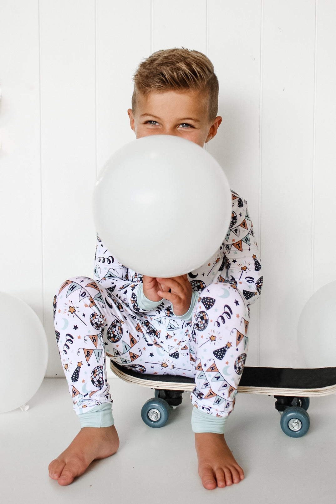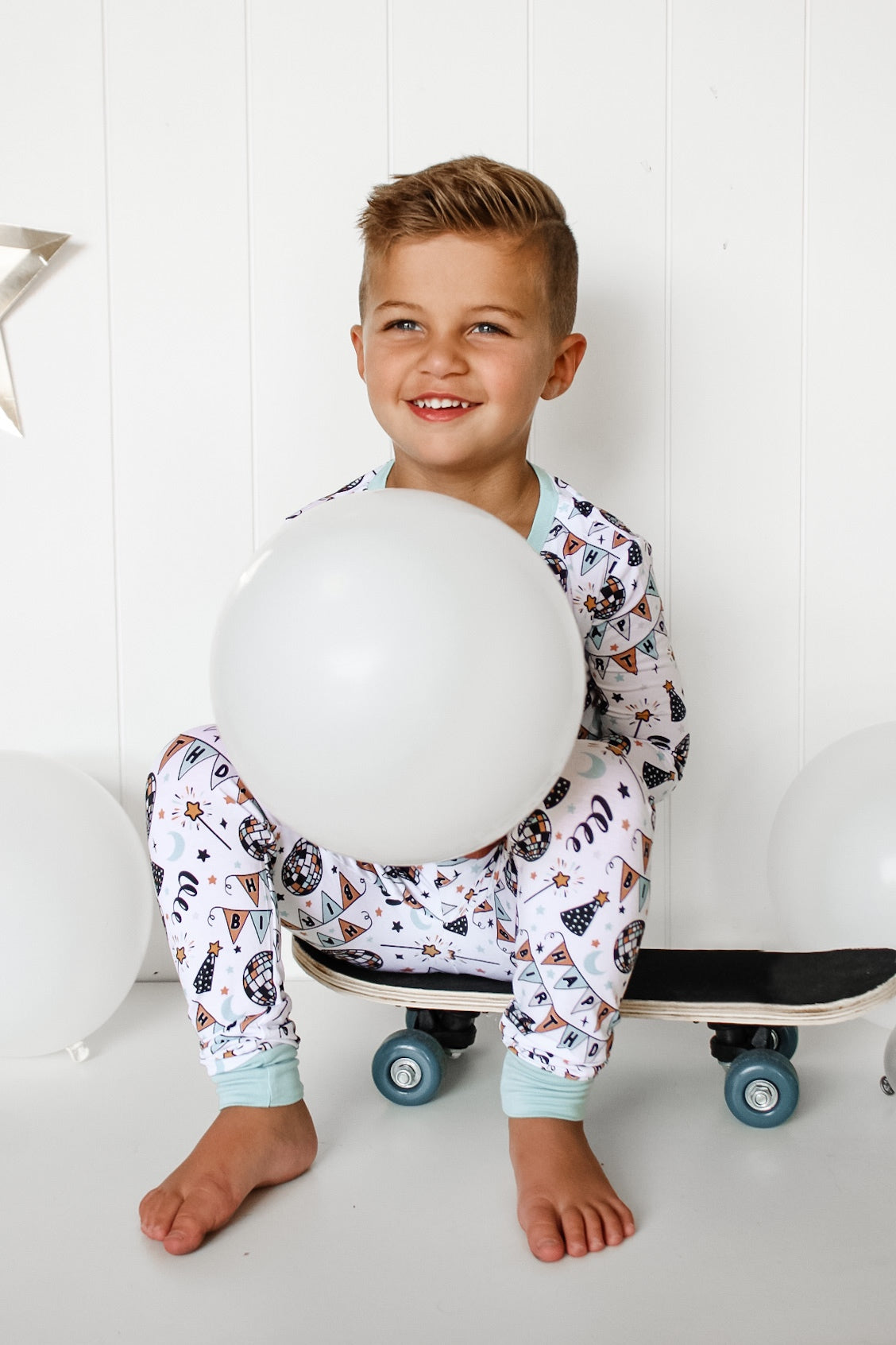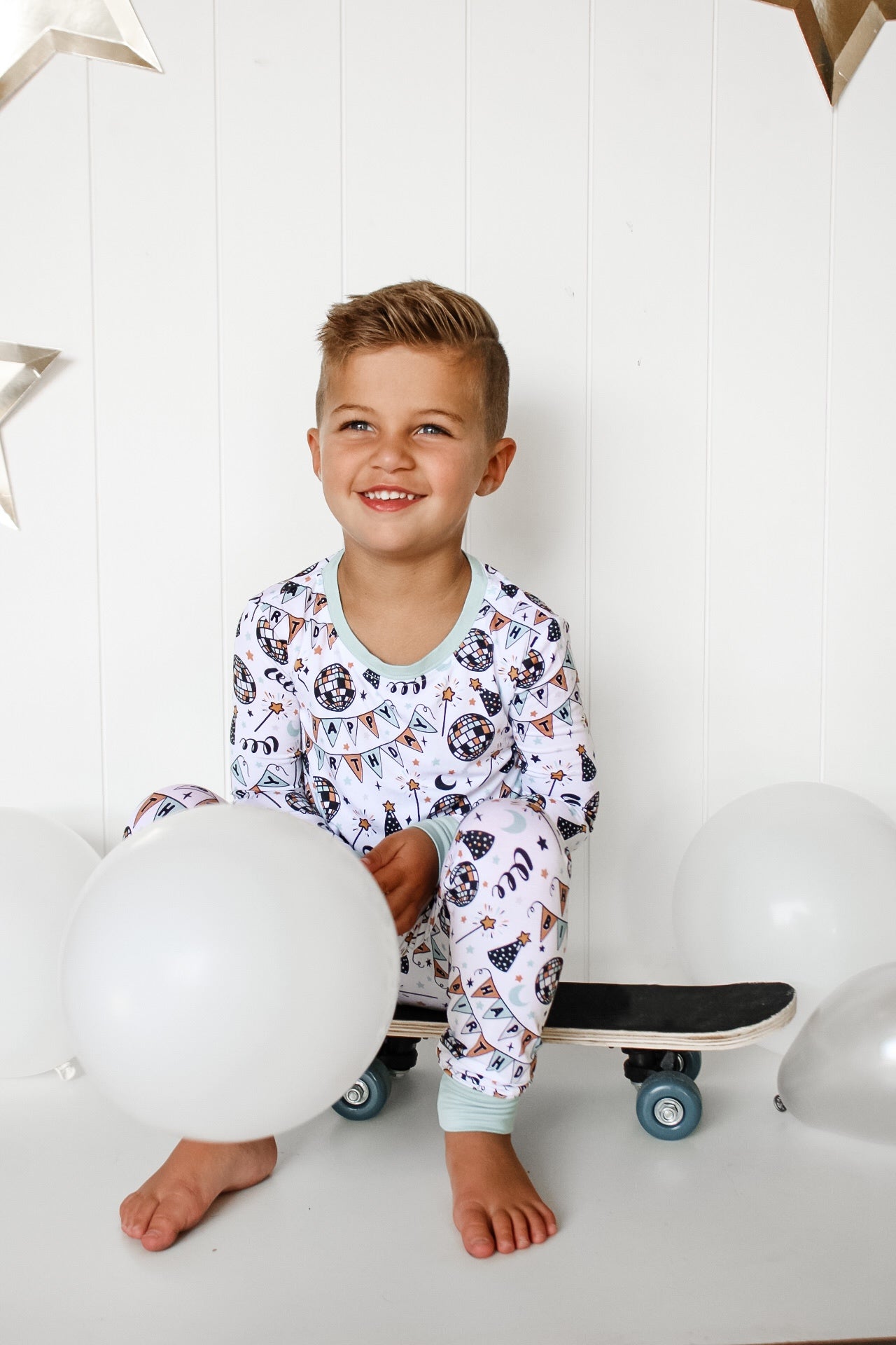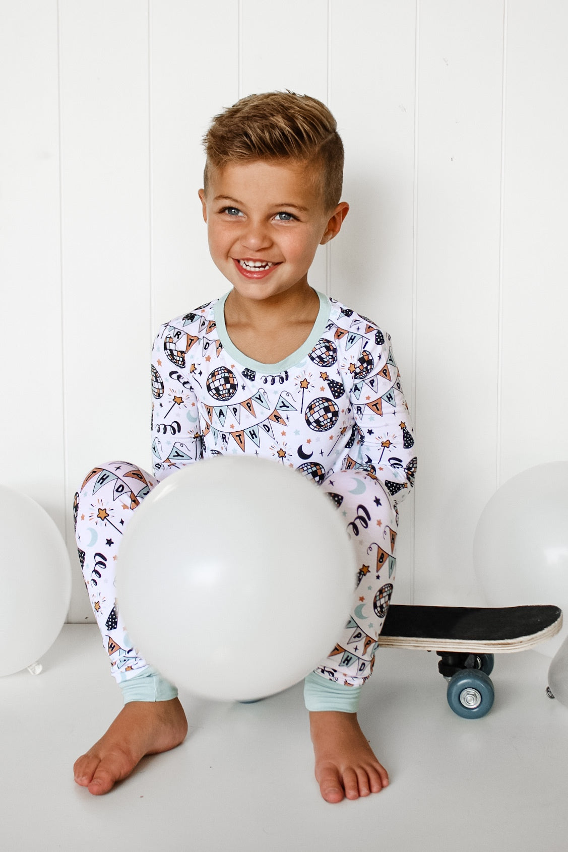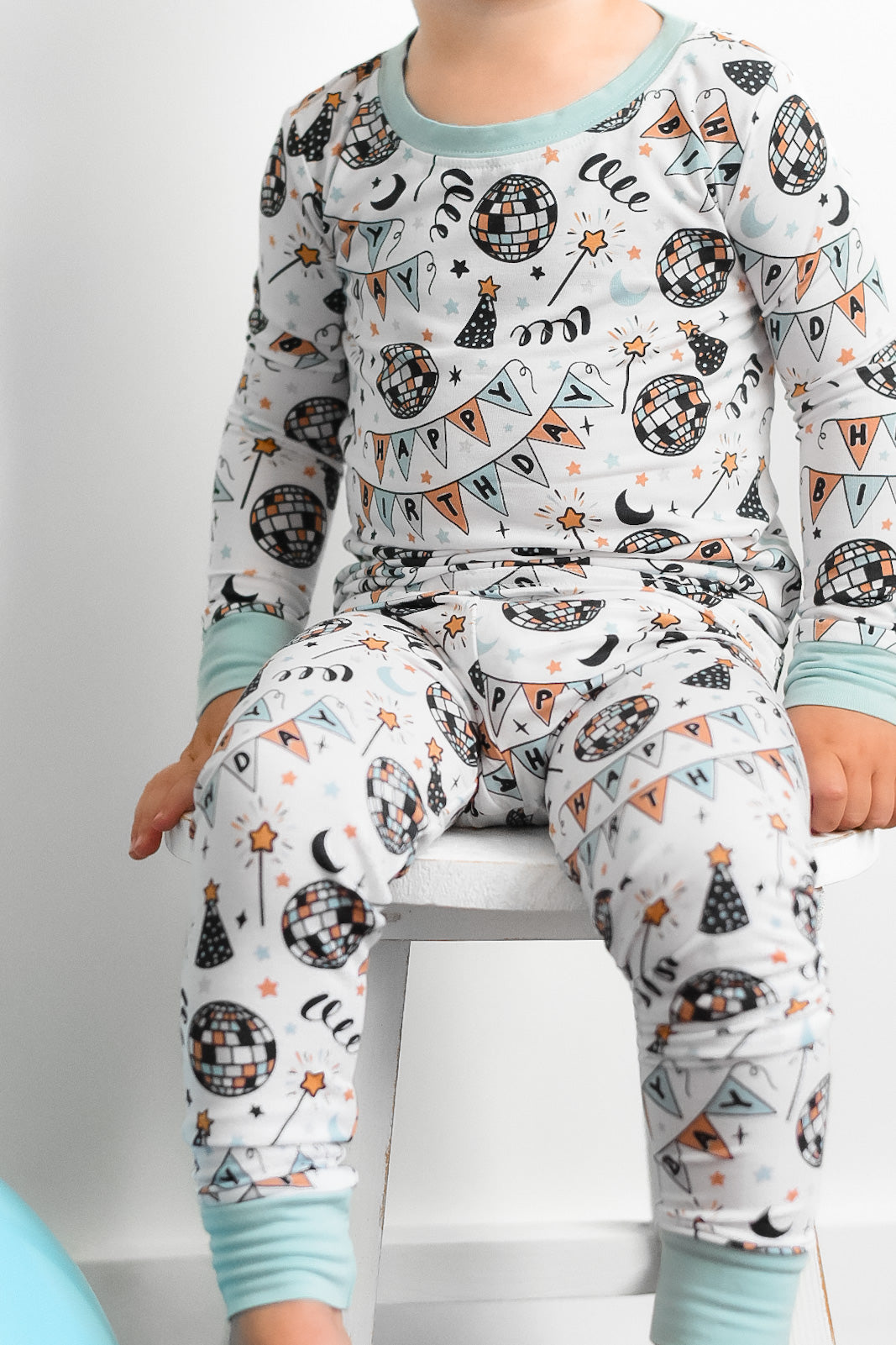 The Disco Birthday Boy Dream set is here to turn any ordinary night into a wild celebration! Decked out with classic long sleeve and pant pajama styling, your little one is ready to boogie the night away - wink wink!!