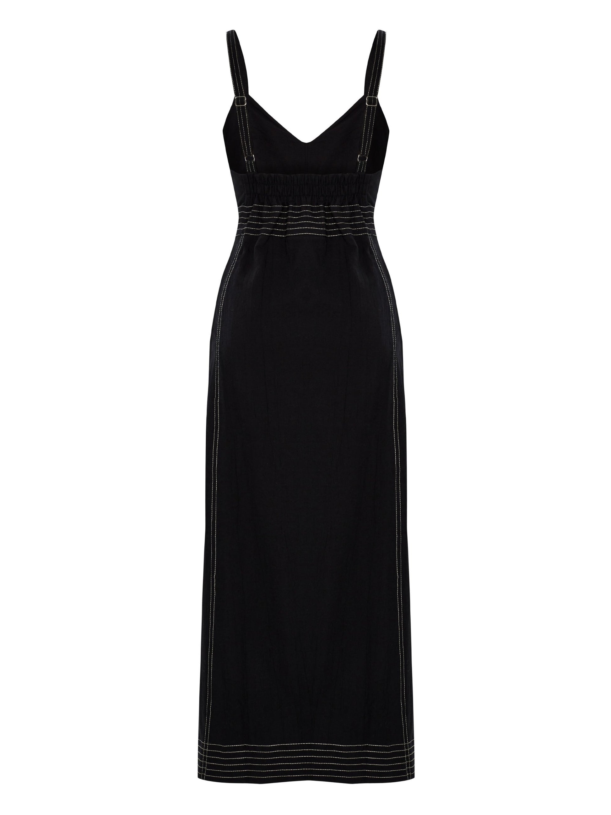 Designed to bring a statement to your summer, the Eva Maxi Dress Black features a slim fit style with a maxi hemline and V shaped neckline for a clean and streamlined silhouette. Crafted from 100% Turkish Cotton, the Eva Maxi Dress Black cascades along the body with stitch detail which accents movement on the fabric. Made for slipping on with ease, The Eva Maxi Dress Black is a minimalist elegant favorite piece.