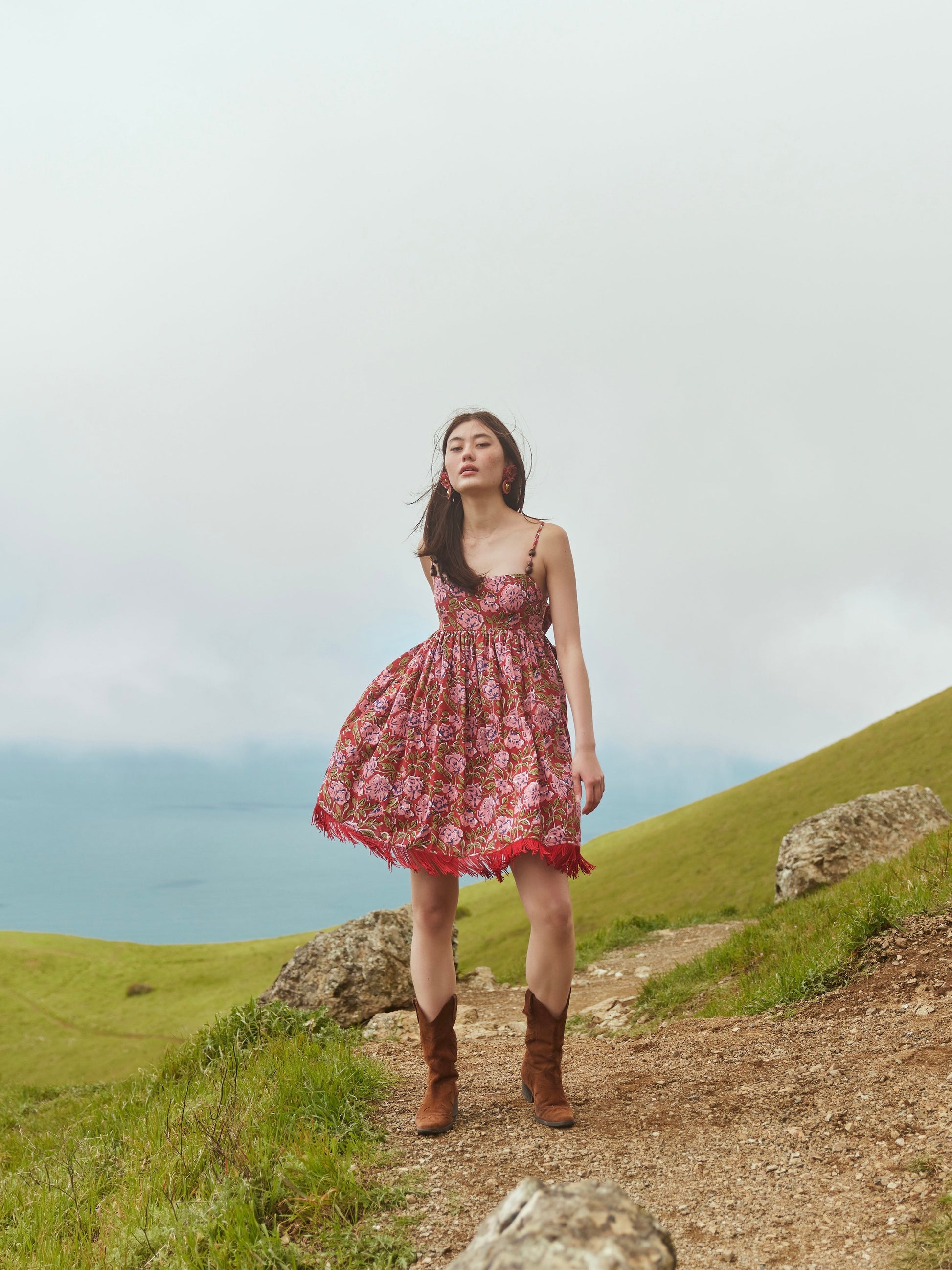 Gavin Fringe Mini Dress - Imperial Red/Blush Floral print