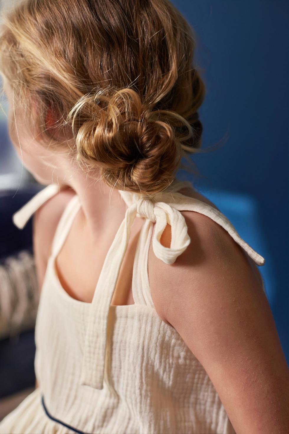 Fancy enough, but oh so comfy for everyday adventures, this peplum top with just enough cool details (cross tie at the back, contrast piping) is perfect with leggings or denim skirt.