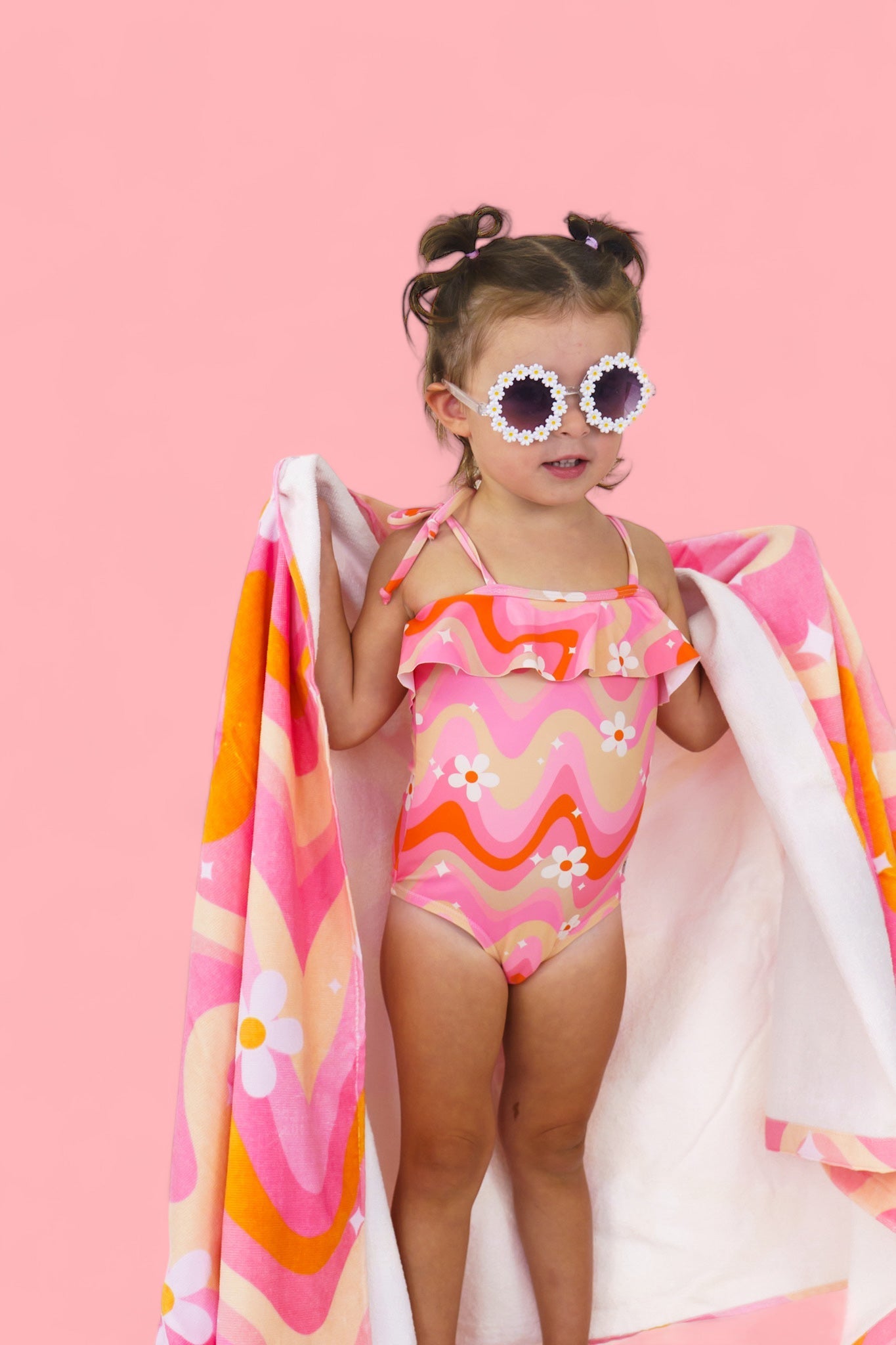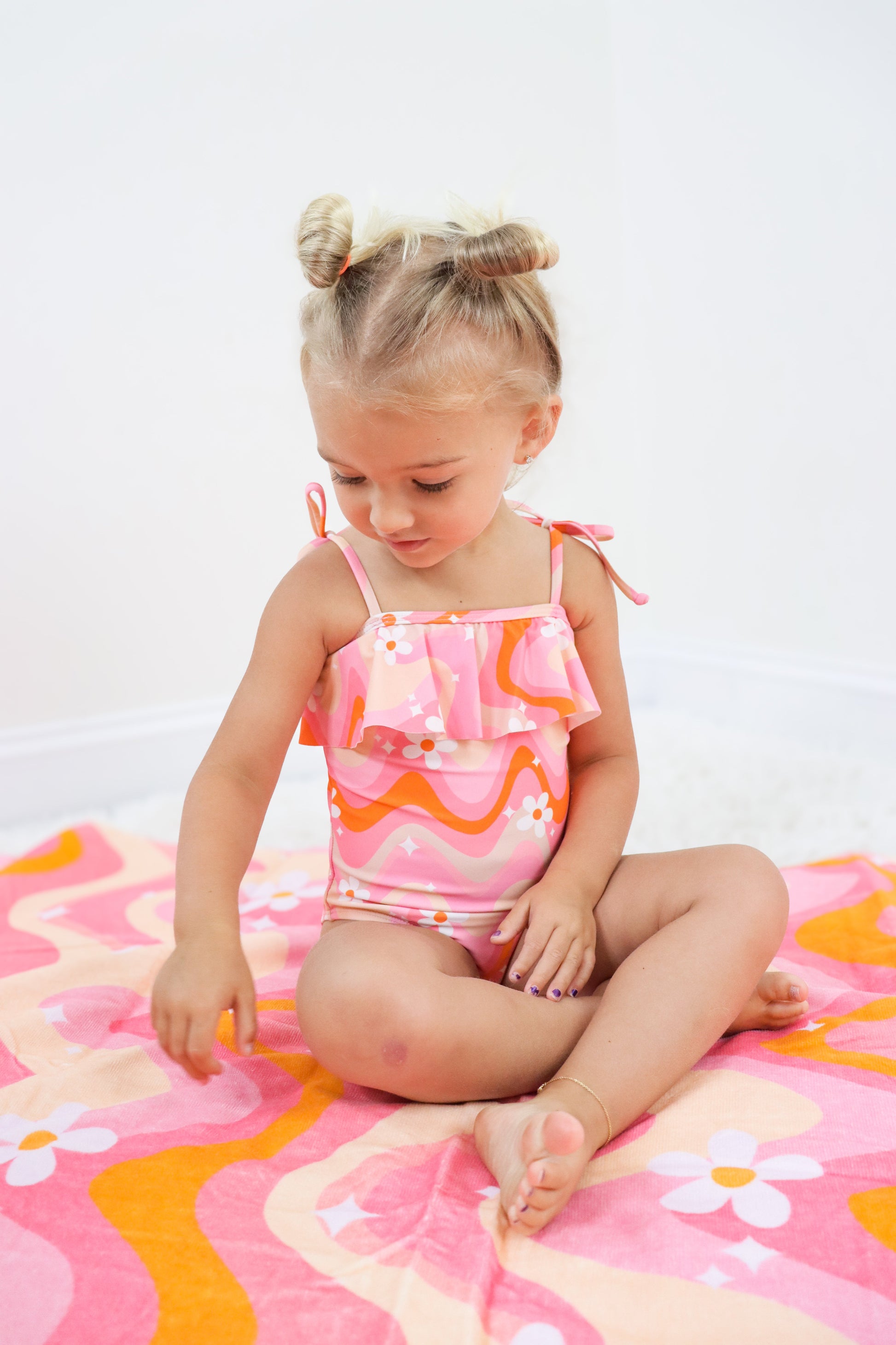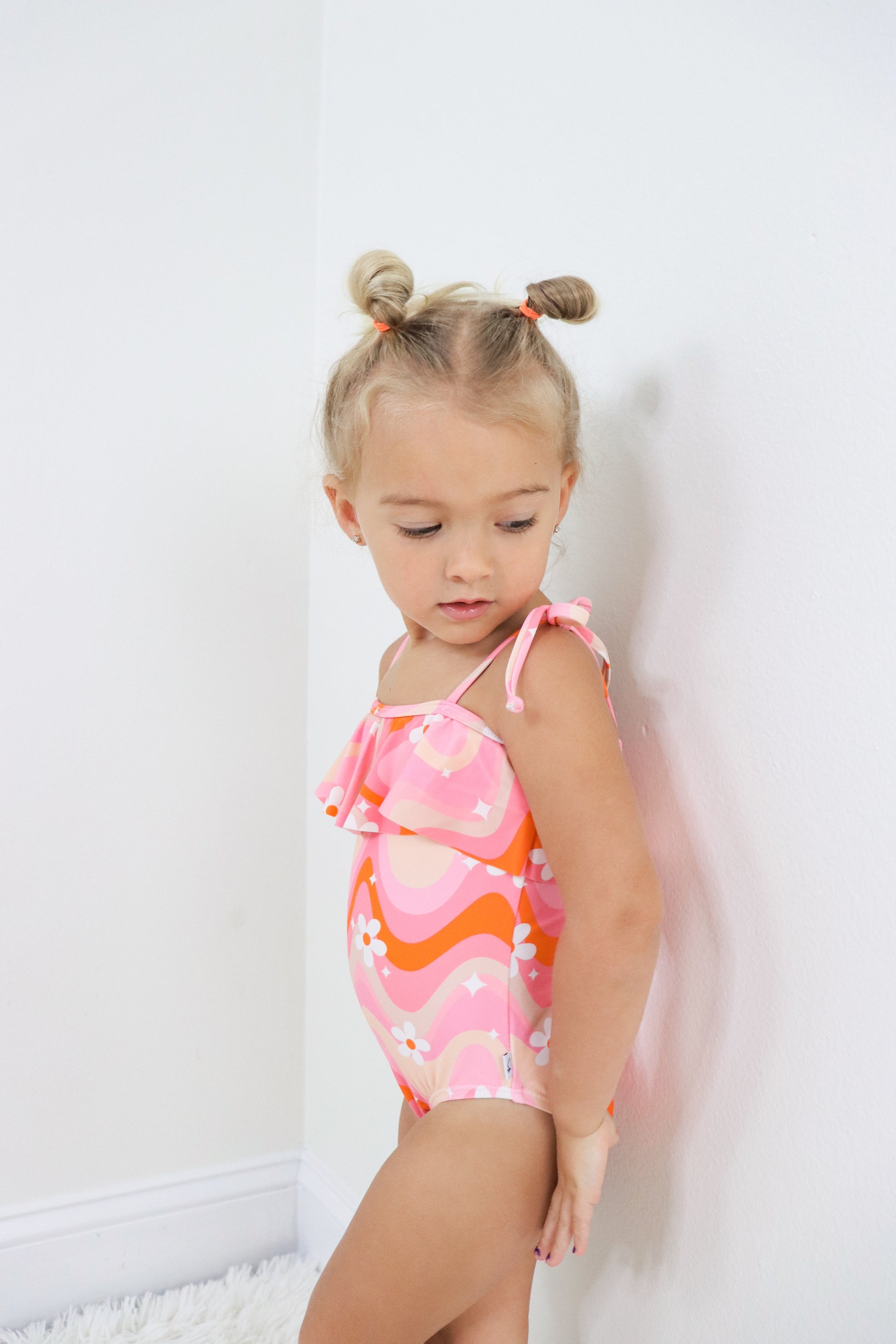 Unleash your groovy side with our GROOVY FLORAL DREAM SPAGHETTI ONE PIECE SWIM SUIT! This fun and stylish bathing suit will make you stand out at the beach or pool. Don't be afraid to make a statement with this one!