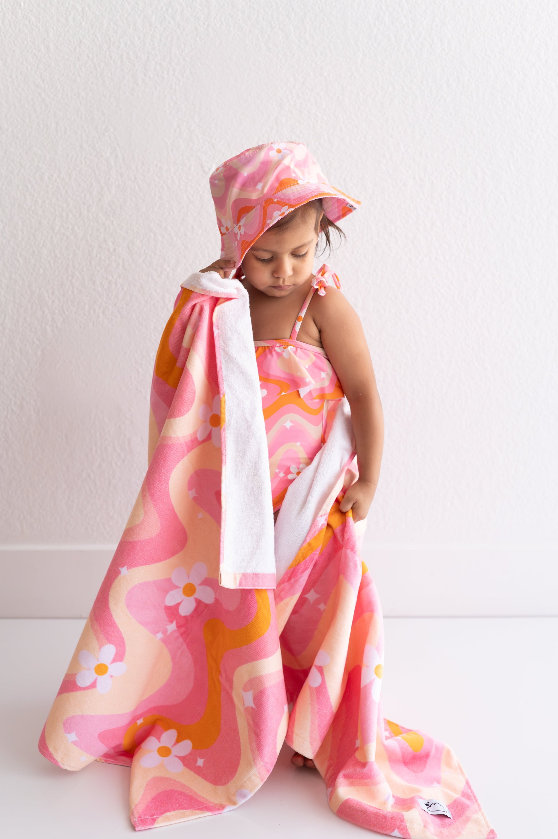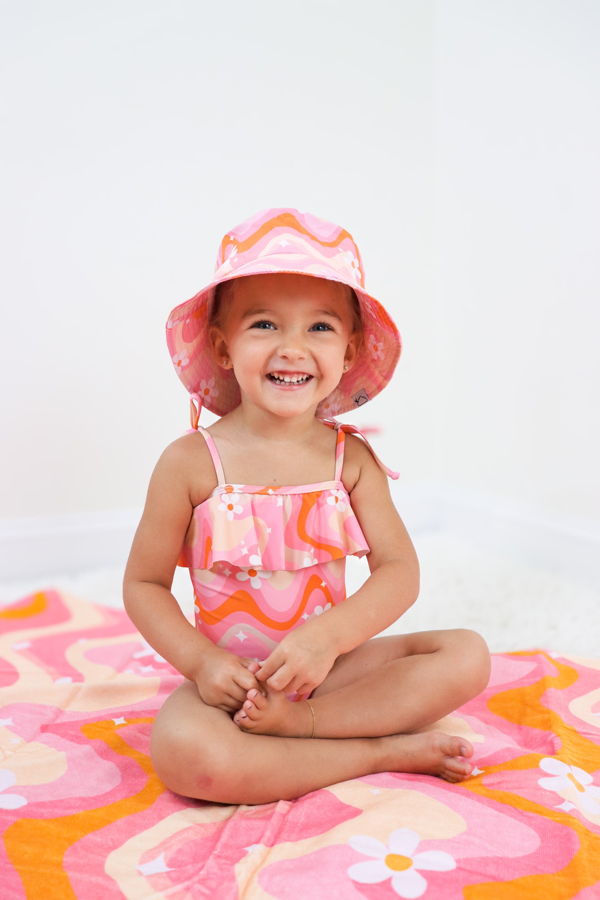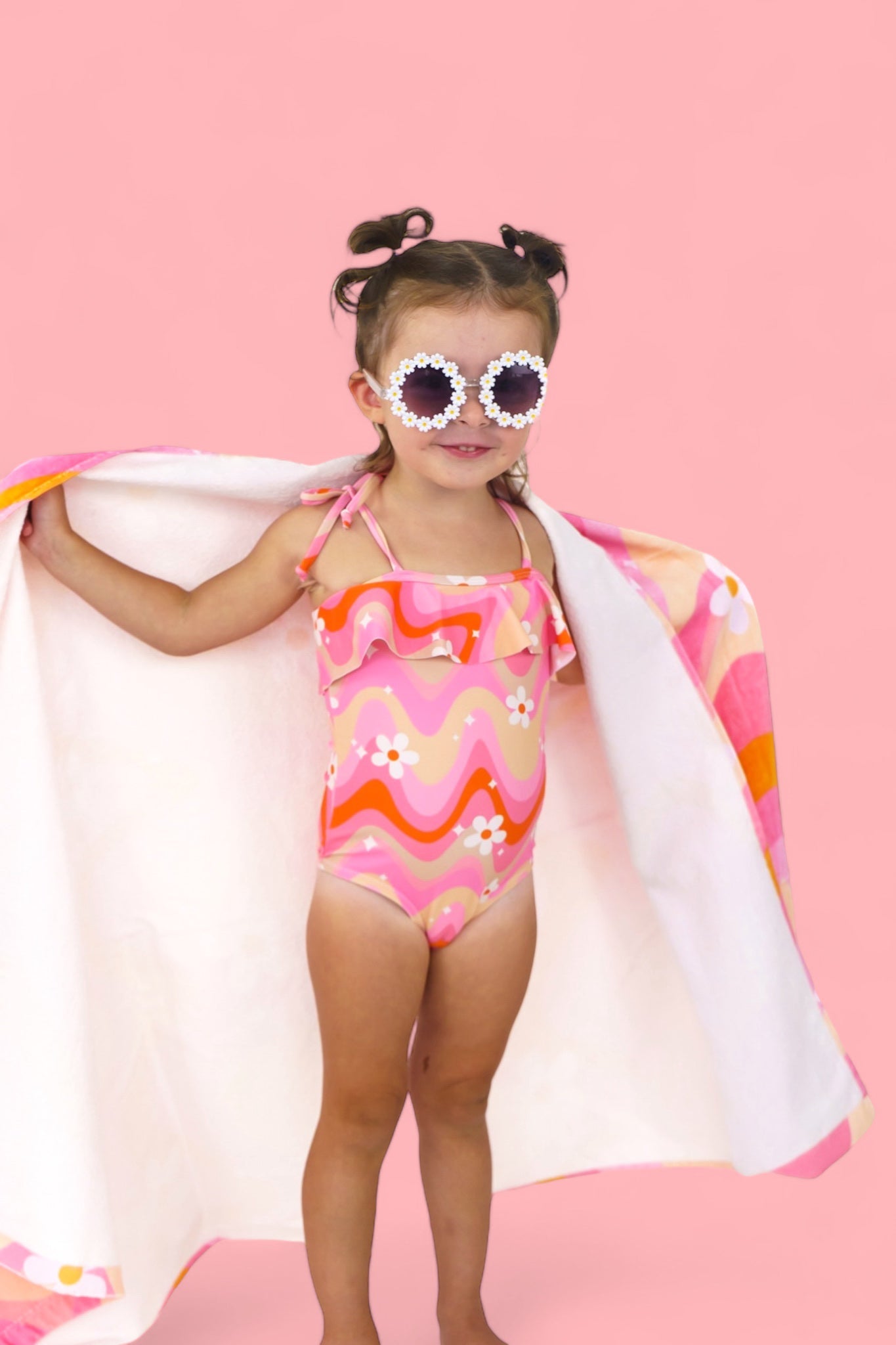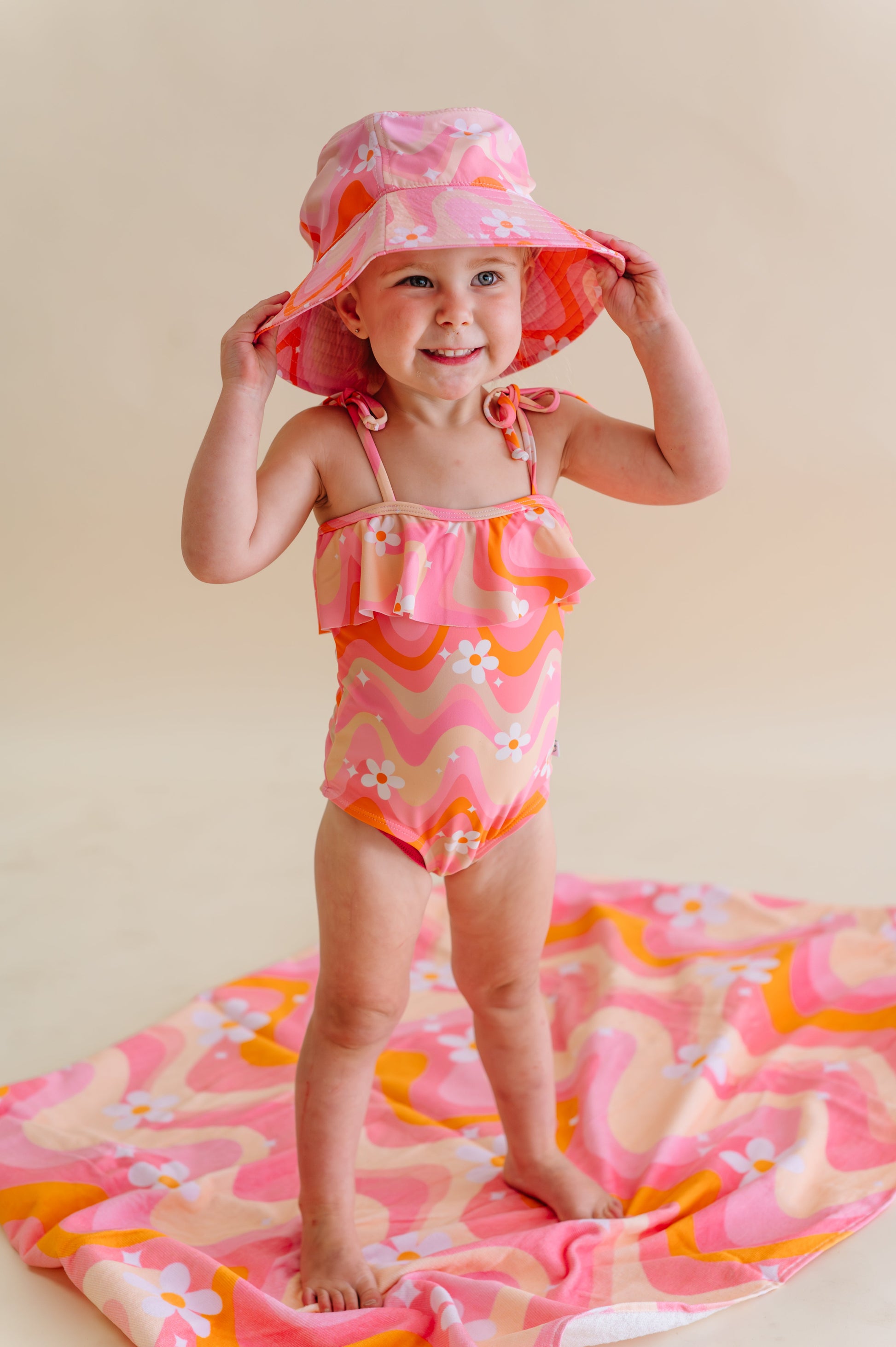 Ready for sunshine and waves? The Dream Swim Suit will make your little one feel like a real-life fashionista! A bow on each side gives it a fun finish, while the long sleeves will keep your explorer protected. The ruffled bottom completes the look and will have them making a splash all summer long!