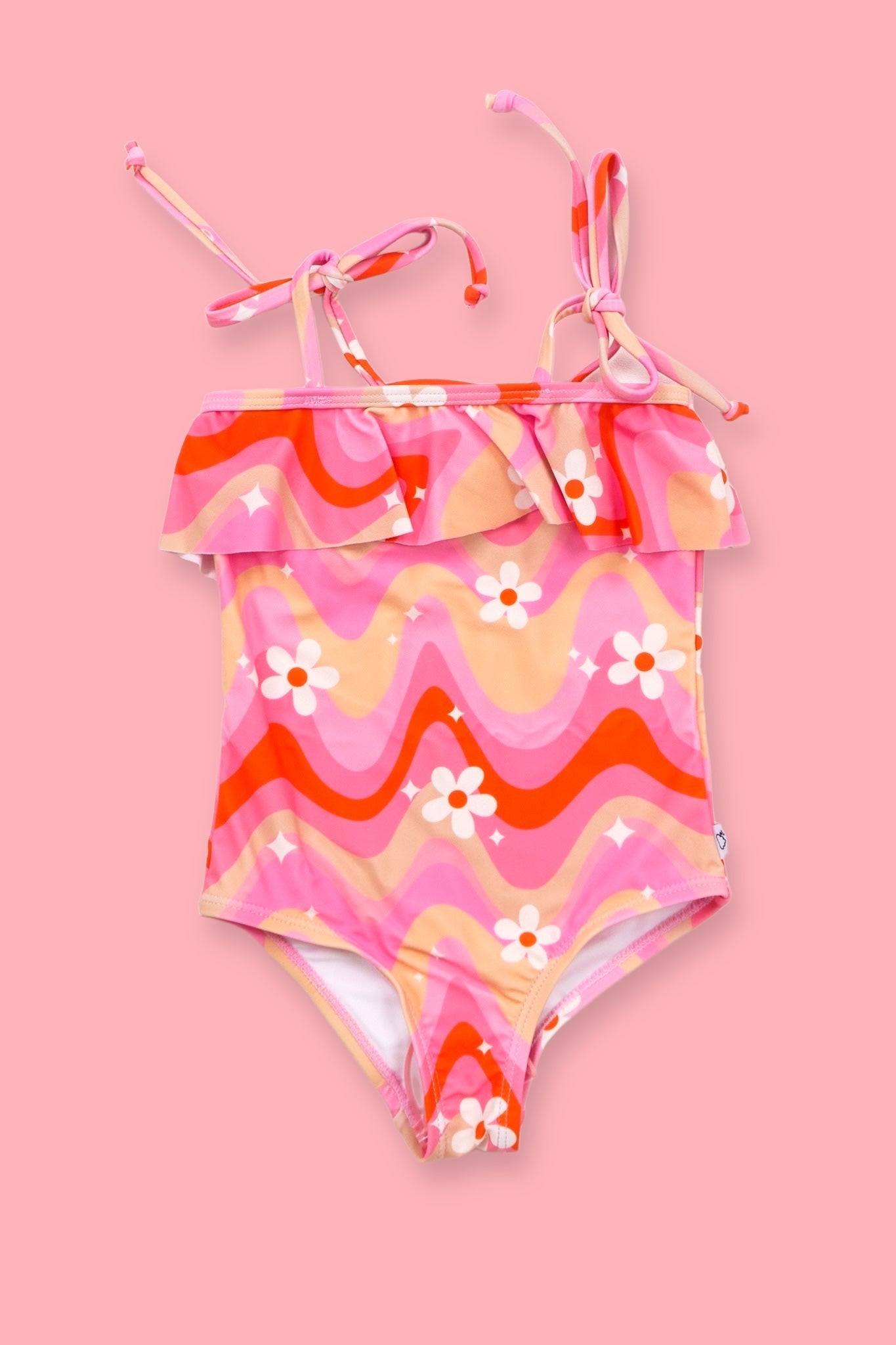 GROOVY FLORAL DREAM SPAGHETTI ONE PIECE SWIM SUIT