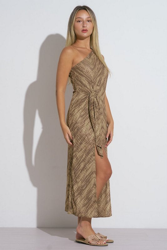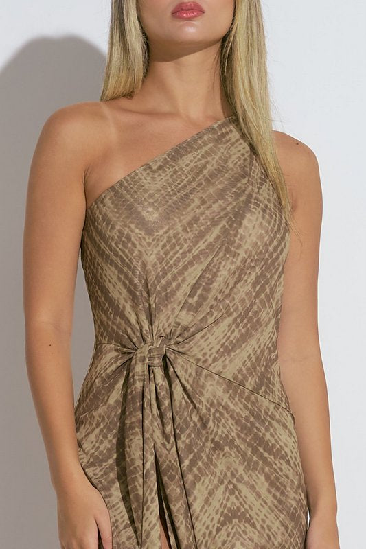 The Havana Dress is a chic midi featuring a one-shoulder design and a flattering side tie. Effortless and elegant, it’s perfect for any occasion, from beach days to nights out.
