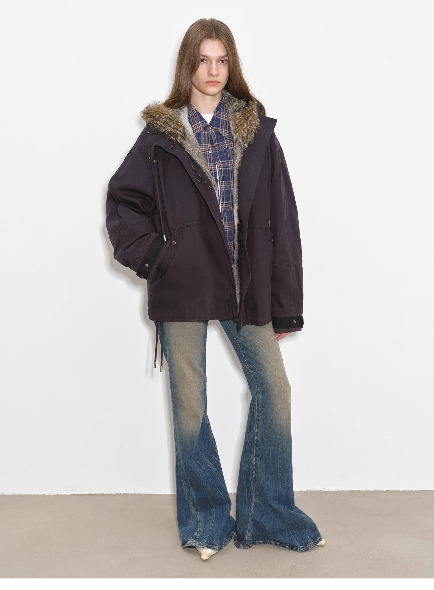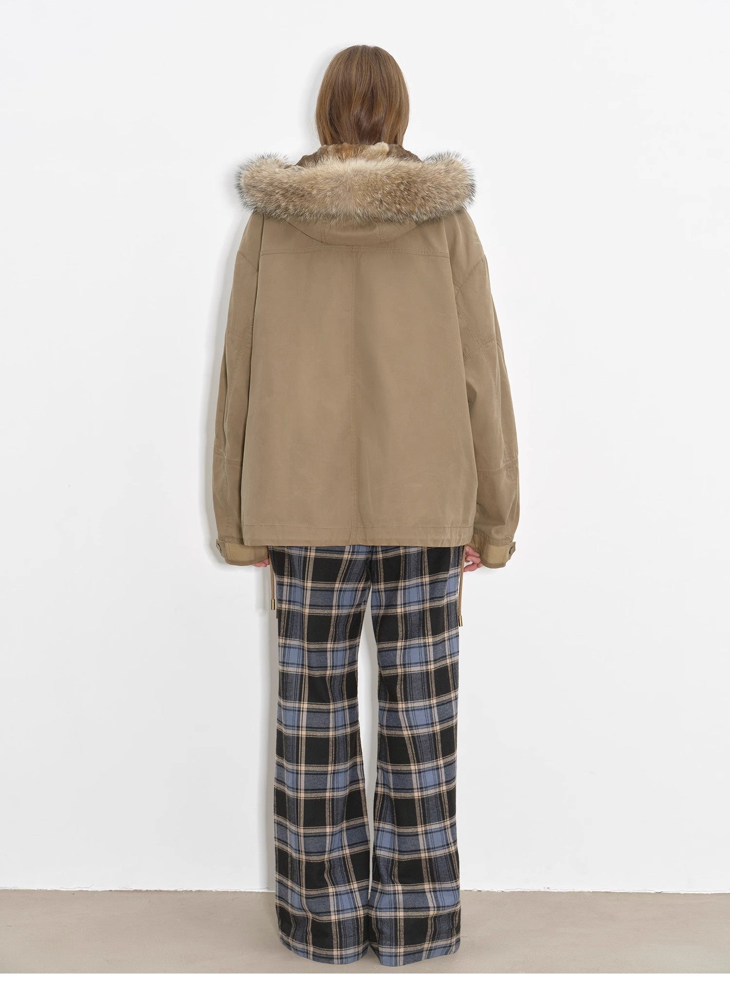 This parka features a collar adorned with the fur of the North American coyote, a fleece-lined inner lining, and a hood. It has a high-density utility outer shell. The sleeves are filled with down, allowing for multiple ways of wearing. It provides highly efficient cold protection, enabling you to deeply feel the warmth.