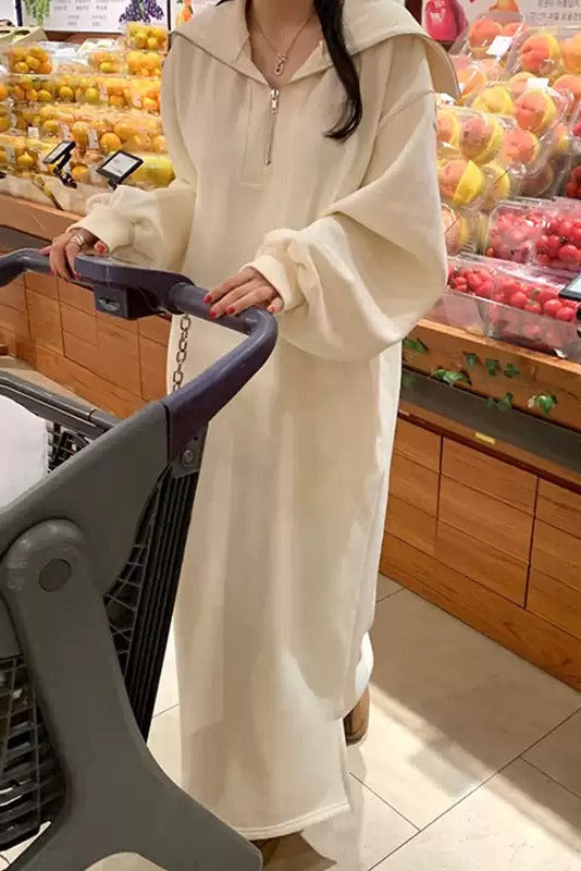 Embrace effortless comfort with this loose sweatshirt dress featuring a chic navy collar. Perfect for laid-back days, its relaxed fit ensures all-day ease while maintaining a stylish edge. Ideal for casual outings or cozy indoor wear.