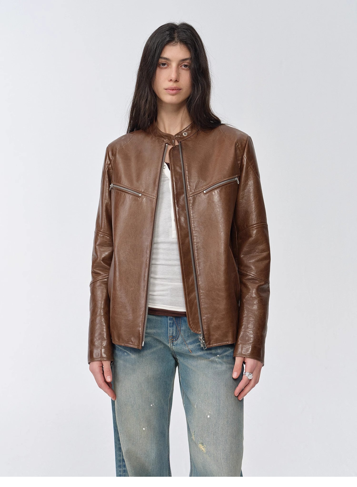 The soft sheepskin has been treated with a "waxy" finishing process, and the surface presents a natural depth of oily patent leather with a natural and soft luster, retro and atmospheric. The leather surface is soft and glutinous, retaining the natural rib texture, and the strong texture attracts the eye at a glance.