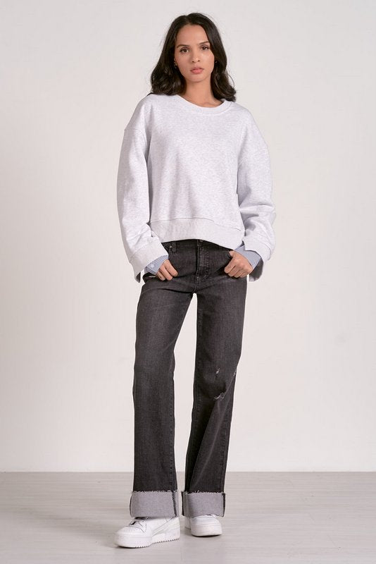 The Margot Top is a mixed media everyday essential. With long sleeves, subtle stripe accents, and a mix of knit and woven textures, this piece delivers structure and softness in equal measure. It’s the ultimate layering hero — wear it under coats or solo for an effortless, polished look.