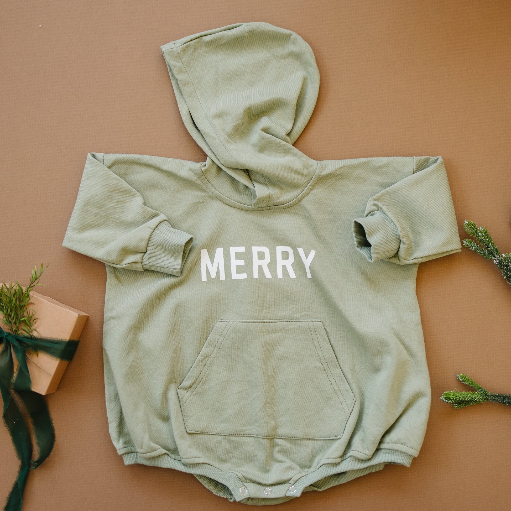 Spread holiday cheer with our Merry Hooded Sweatshirt Romper! This festive and cozy romper features a cheerful “Merry” design, making it the perfect outfit for celebrating the Christmas season. Crafted from a soft and warm fabric, it ensures your little one stays snug and comfortable during chilly winter days. The hood adds an extra layer of warmth, while the easy pull-on style allows for quick dressing, perfect for busy mornings or holiday gatherings. With its playful design and cozy fit, this sweatshirt romper is ideal for festive family photos, lounging at home, or holiday adventures!