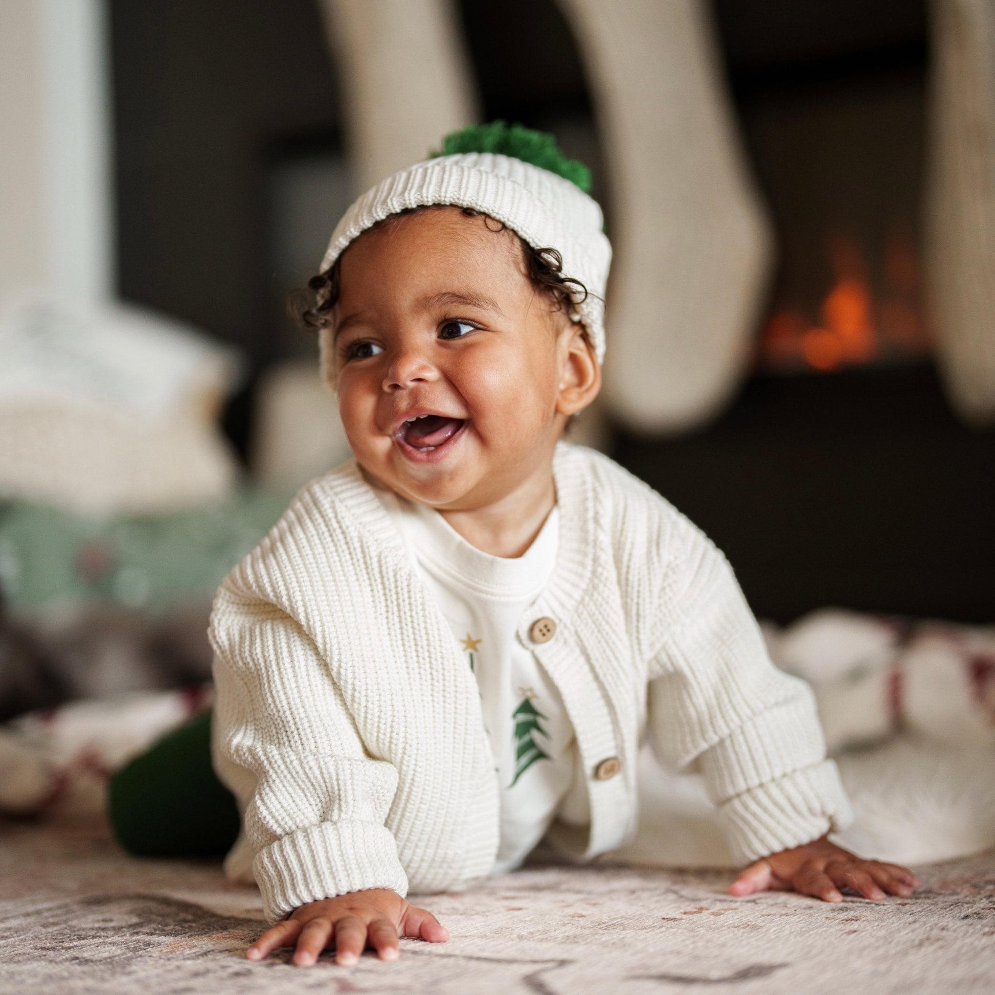 Introducing our new organic super oversized knit cardigan! Made from 100% organic cotton, this cardigan is both soft and breathable, ensuring that your little one stays comfortable all day and night.