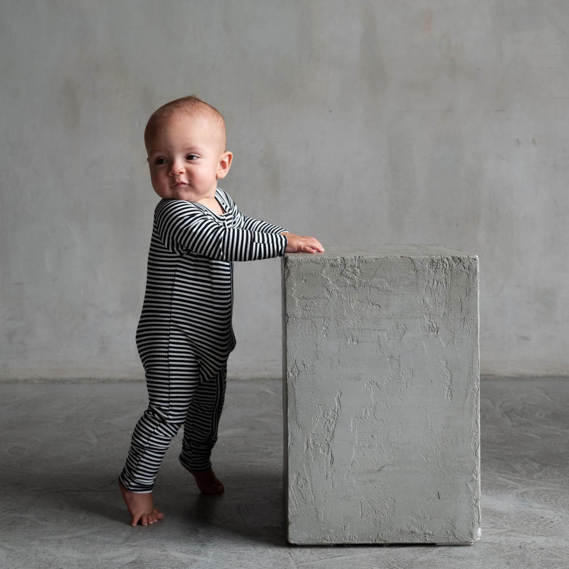 *PRE-ORDER 9/29* Midnight Stripe | Ribbed Bamboo Zip Romper
