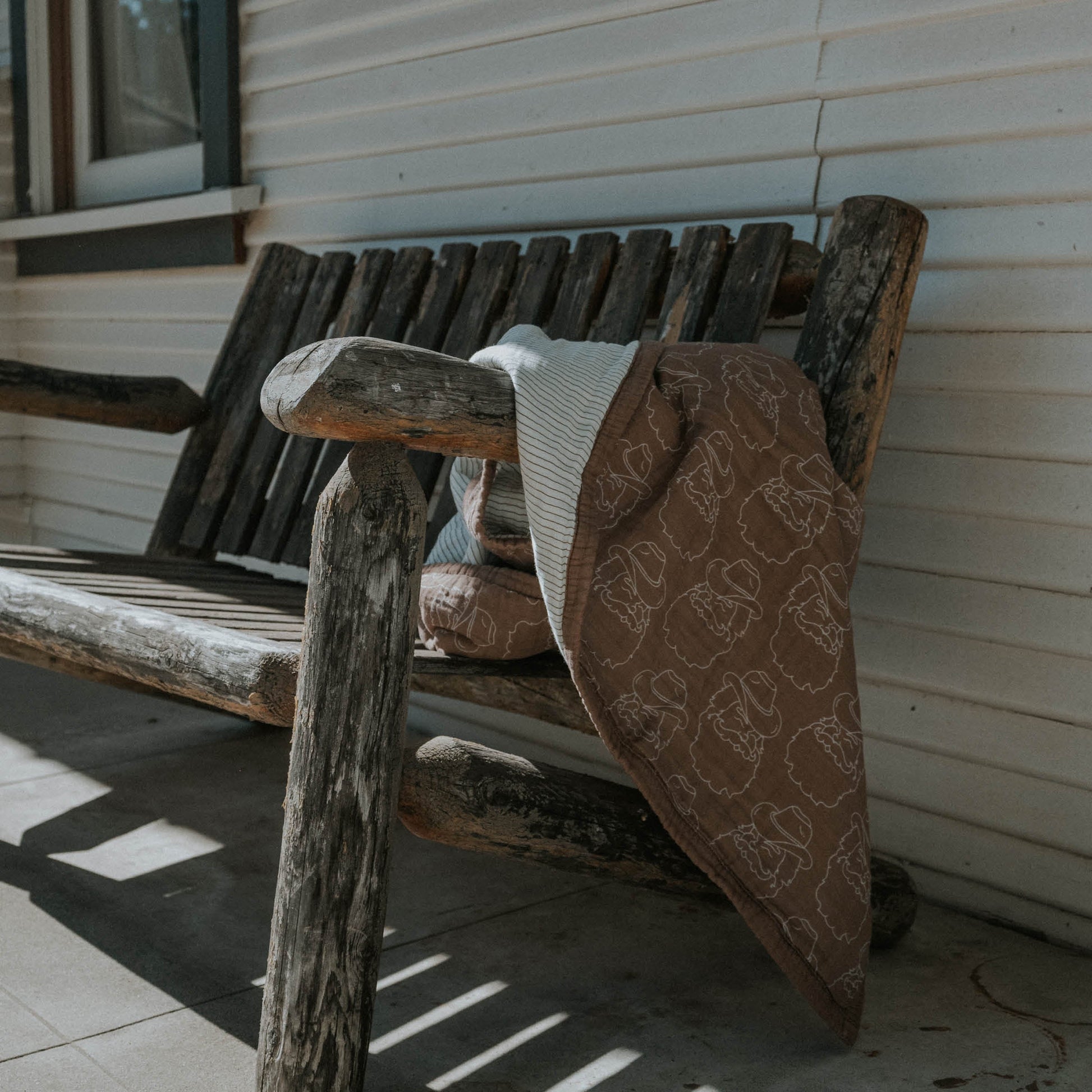Now 6 layers thick! Part of our exclusive line of swaddles, sheets and quilts. Our muslin quilt is made from 100% muslin cotton and gets softer with every wash. All of our muslin swaddles and quilts are light weight, breathable, and versatile. We love using the quilts to lay down at the beach, use as a stroller blanket or your toddlers first nighttime blanket.