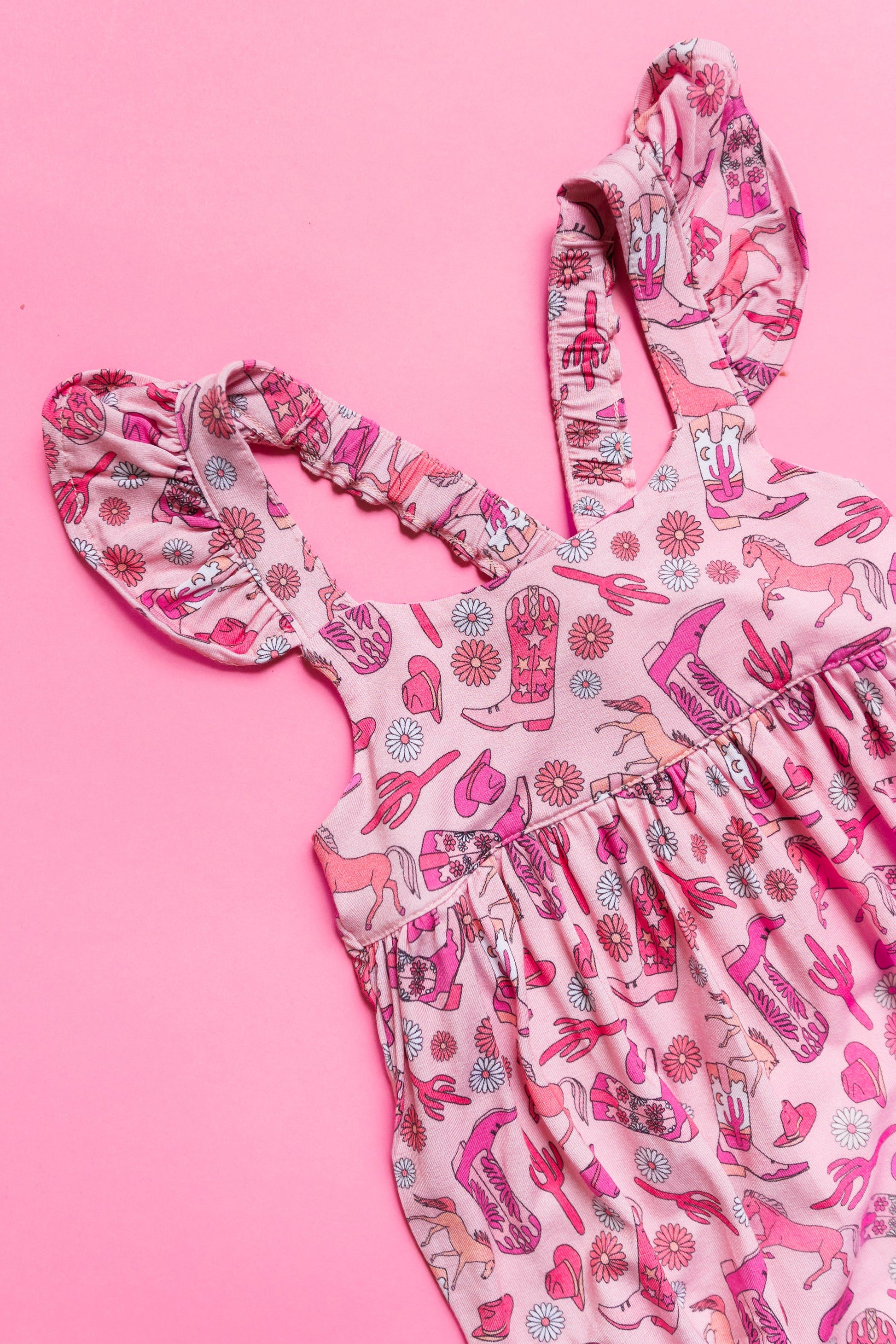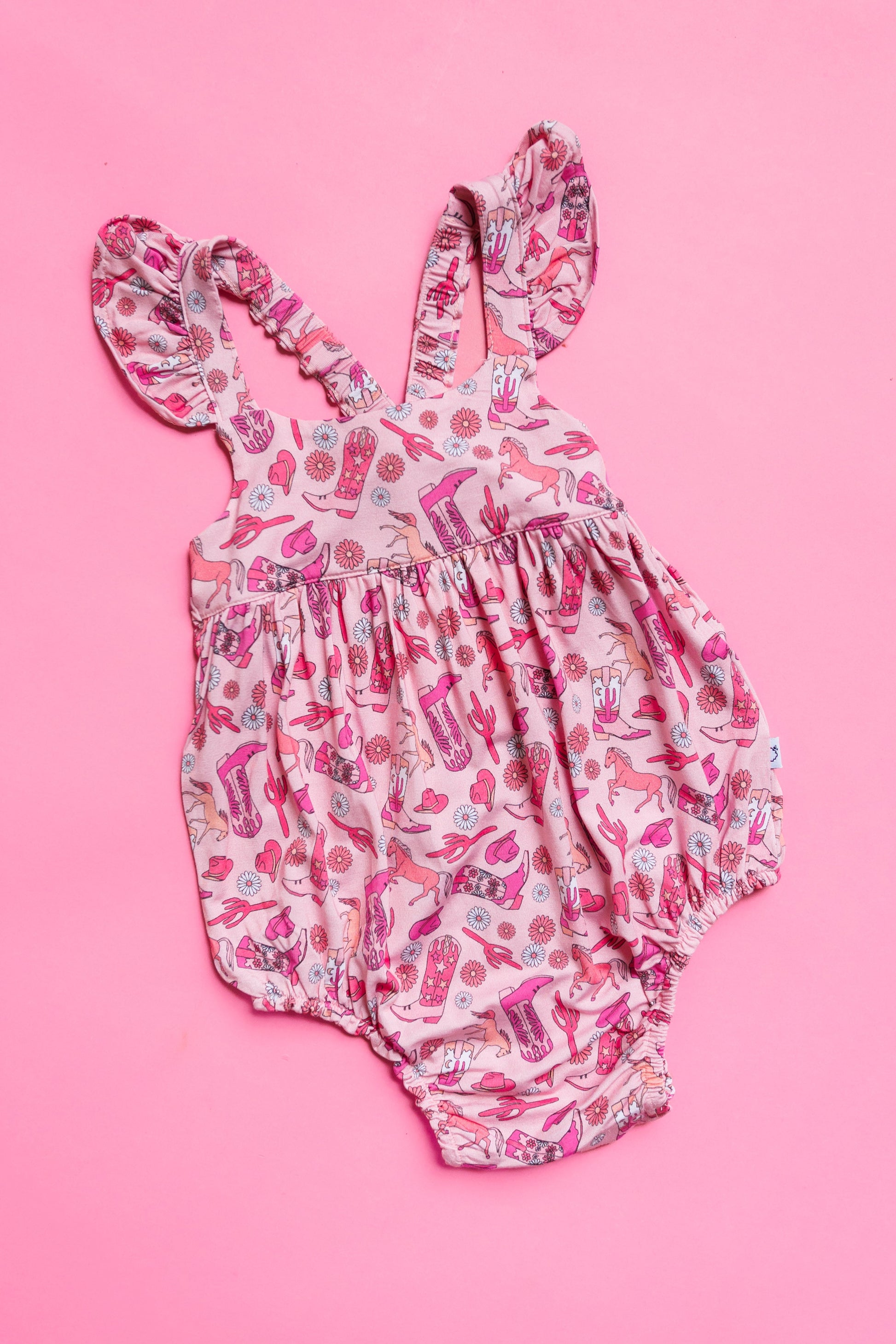 Channel your inner cowgirl and stay wild in our bubble romper! Made from soft bamboo material, this sleeveless romper features a fun Wild West theme. Perfect for those who want to stand out in a crowd. Yeehaw!