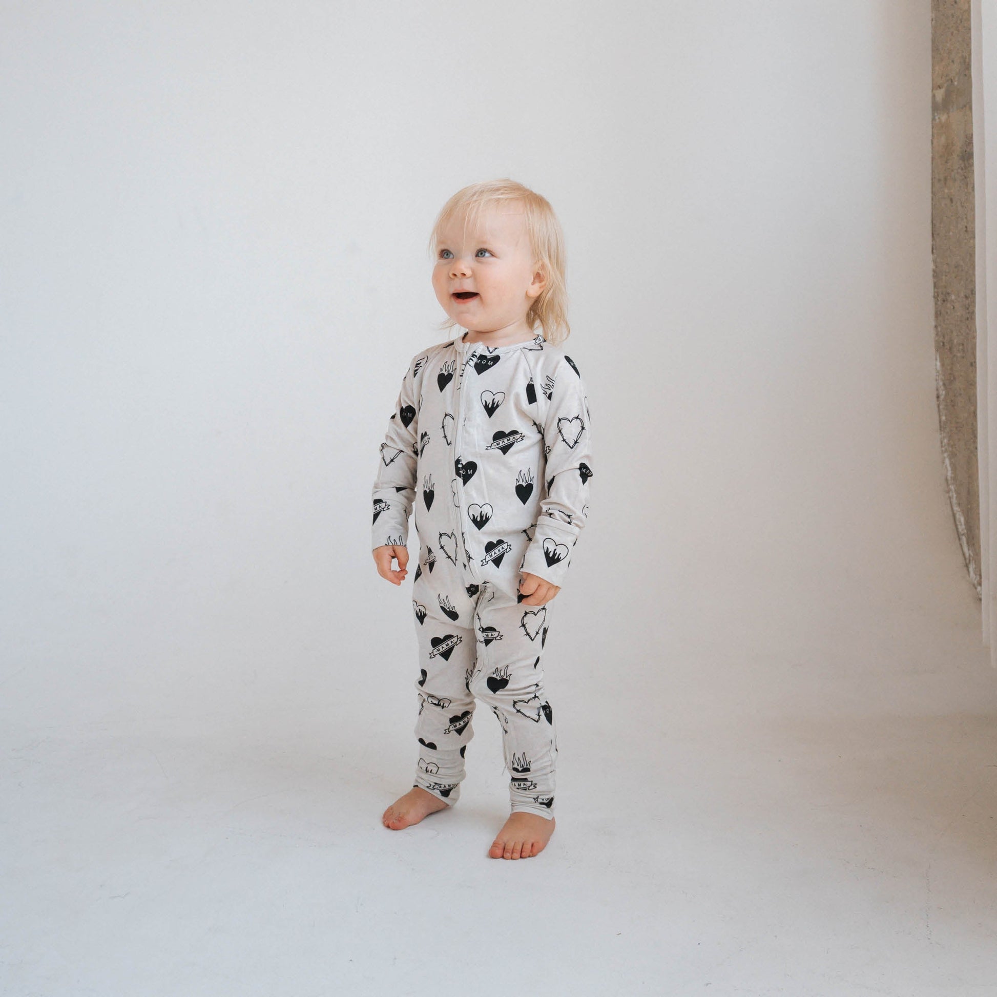 Tattoo Heart Heather Grey | Bamboo Viscose Zip Romper