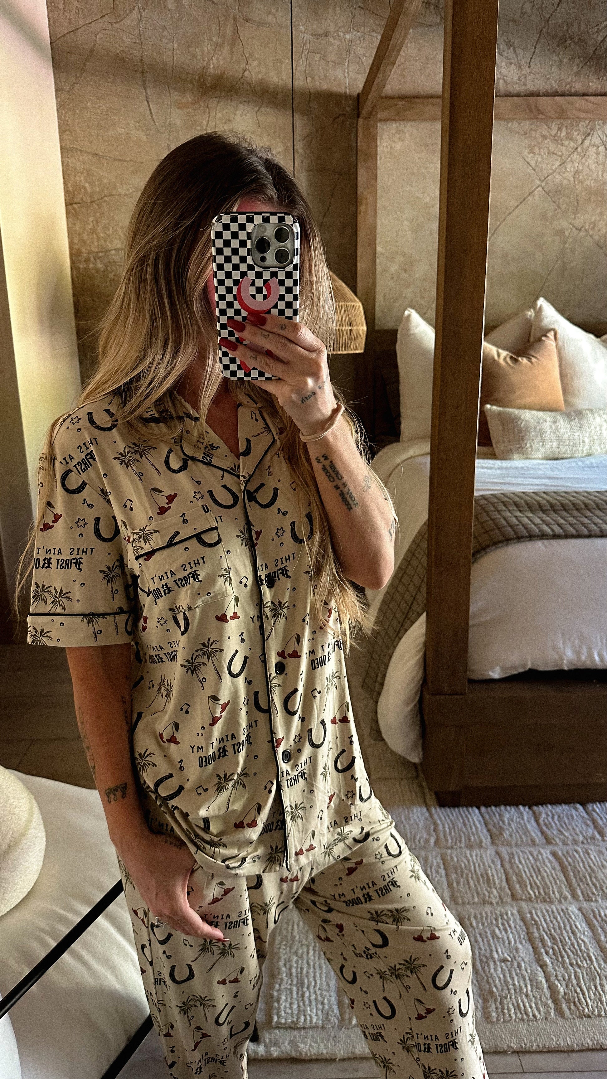 Cozy just got cowboy. Our bamboo adult two-piece features 'This Ain’t My First Rodeo' across a playful western-inspired print. Sustainable bamboo fabric keeps it soft + breathable, while the fit keeps it cool + classic. For the rookies + the pros — match your minis in the 'This Is My First Rodeo' set or zippy, made for every wild heart.
