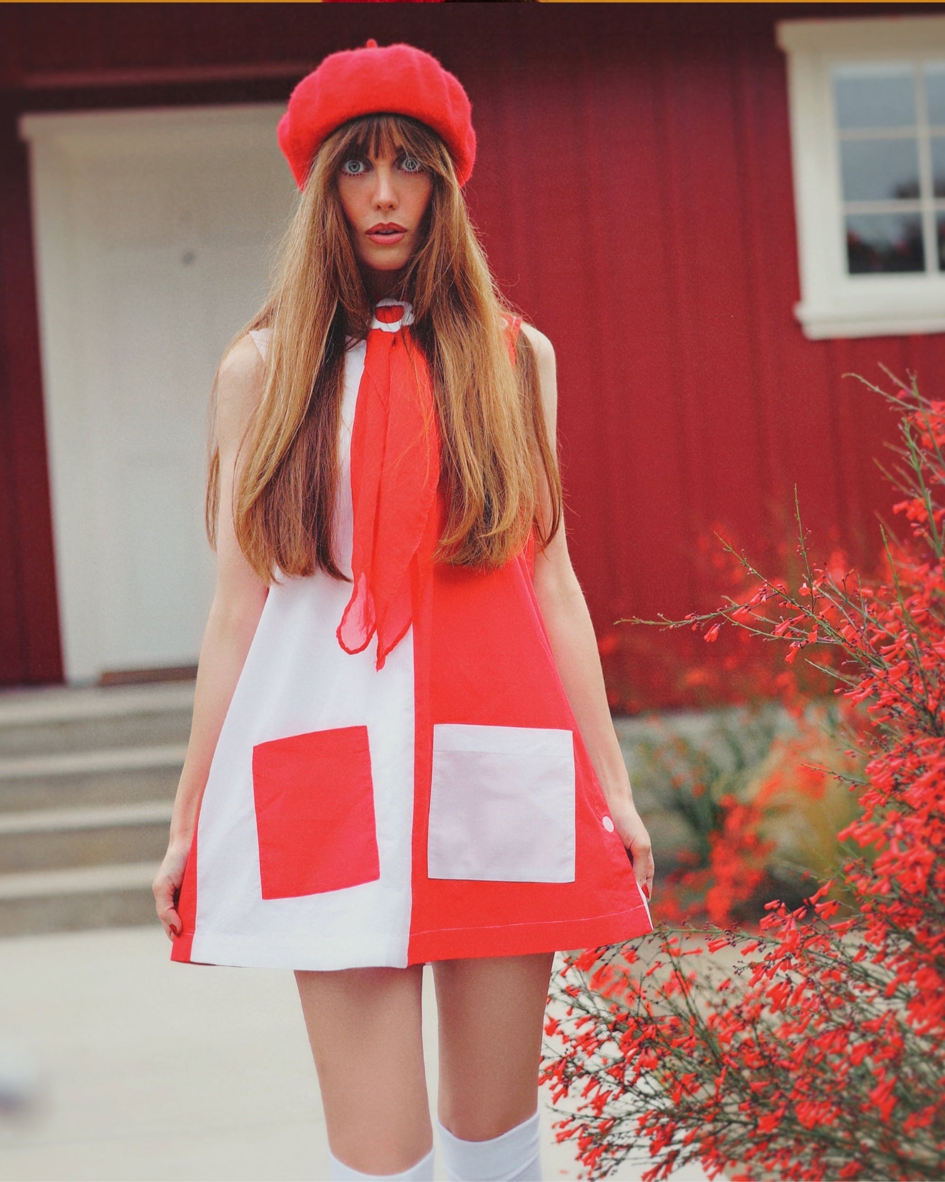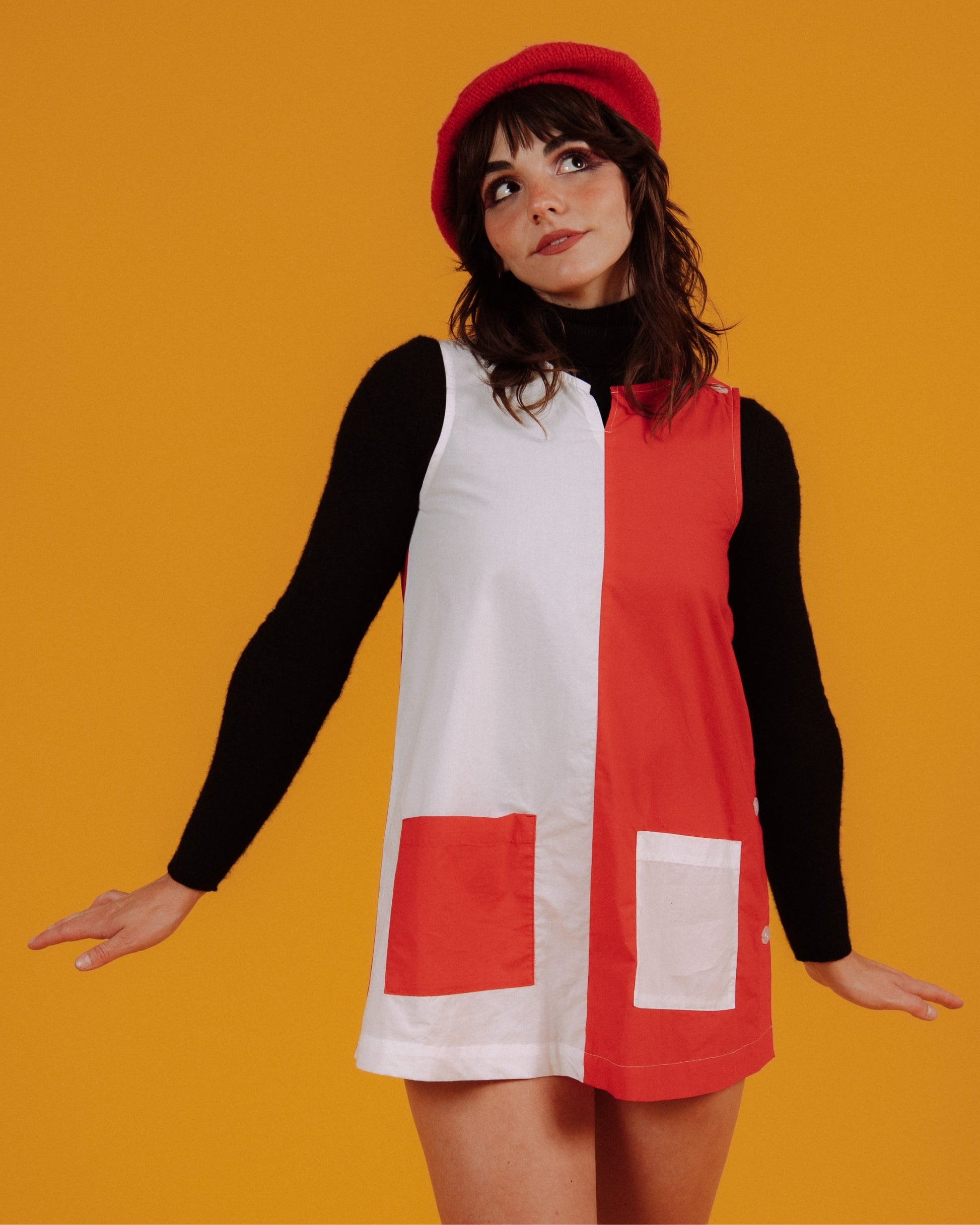 The Smock is a classic style from the 1950-60s that was worn by beachgoers, waitresses, and artists alike. The smock is to the Bikini as the Cabana Shirt is to the Cabana Trunk. It's the perfect coverup for long summer days but it can also be dressed up with a turtleneck and leggings for long winter nights. The Two-Tone Smock is the sequel to our very first Echinacea-print Smock and is designed to match our Gingham Bikini and Gingham Headband.