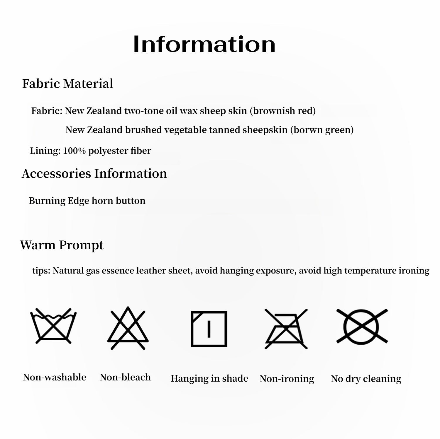 Grade A sheepskin uses vegetable tanning technology, which has a fine and shiny feel, thick and textured. Pure hand-rubbed color technology, the base color changes naturally in depth and color and has a retro and layered feel. As it ages naturally with wear, it becomes more and more vintage.
