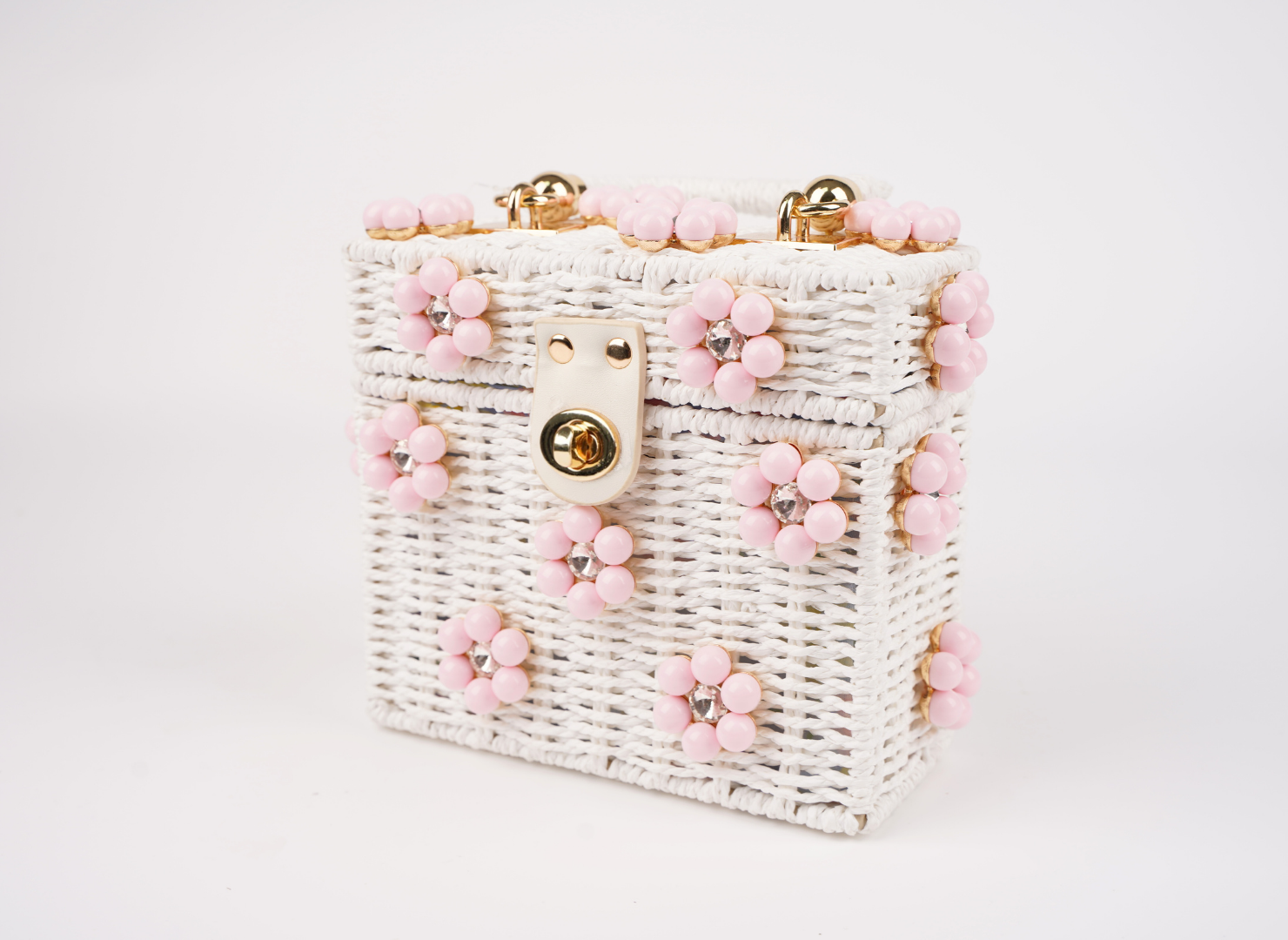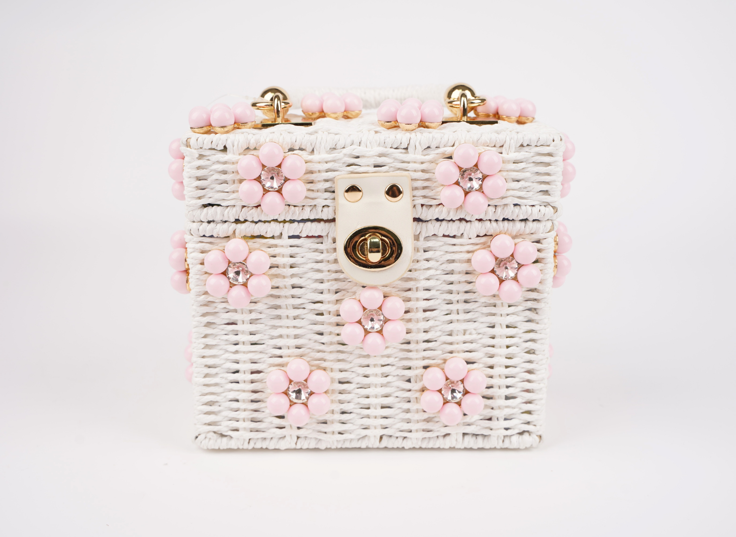 White Purse + Light Pink Daisy with Clear Rhinestone Center
