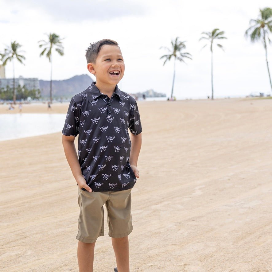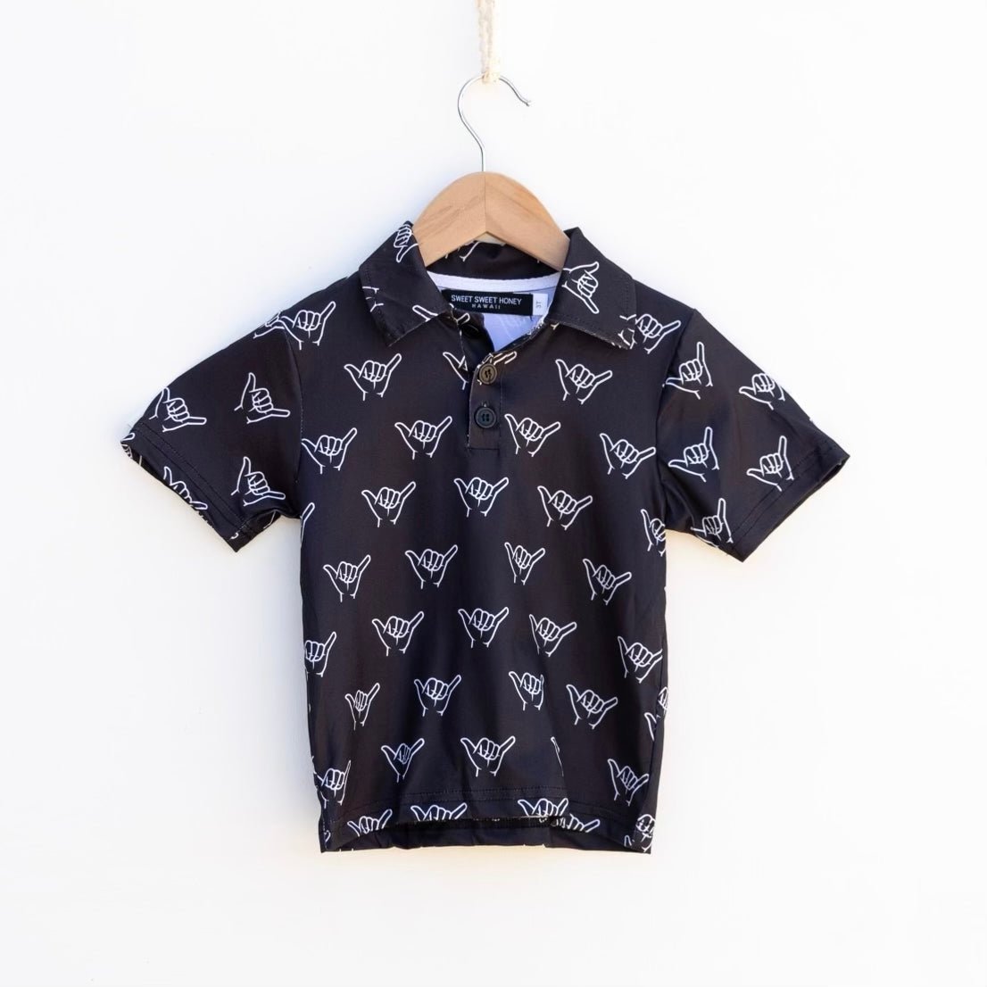 This Black Shaka Collared Shirt is perfect for little boys. It's lightweight and stretchy, making it comfortable to wear for any occasion, whether it's casual or dressed up. It's a must-have for any wardrobe!Made with Cotton Jersey Fabric, Extra buttery Soft & Stretchy