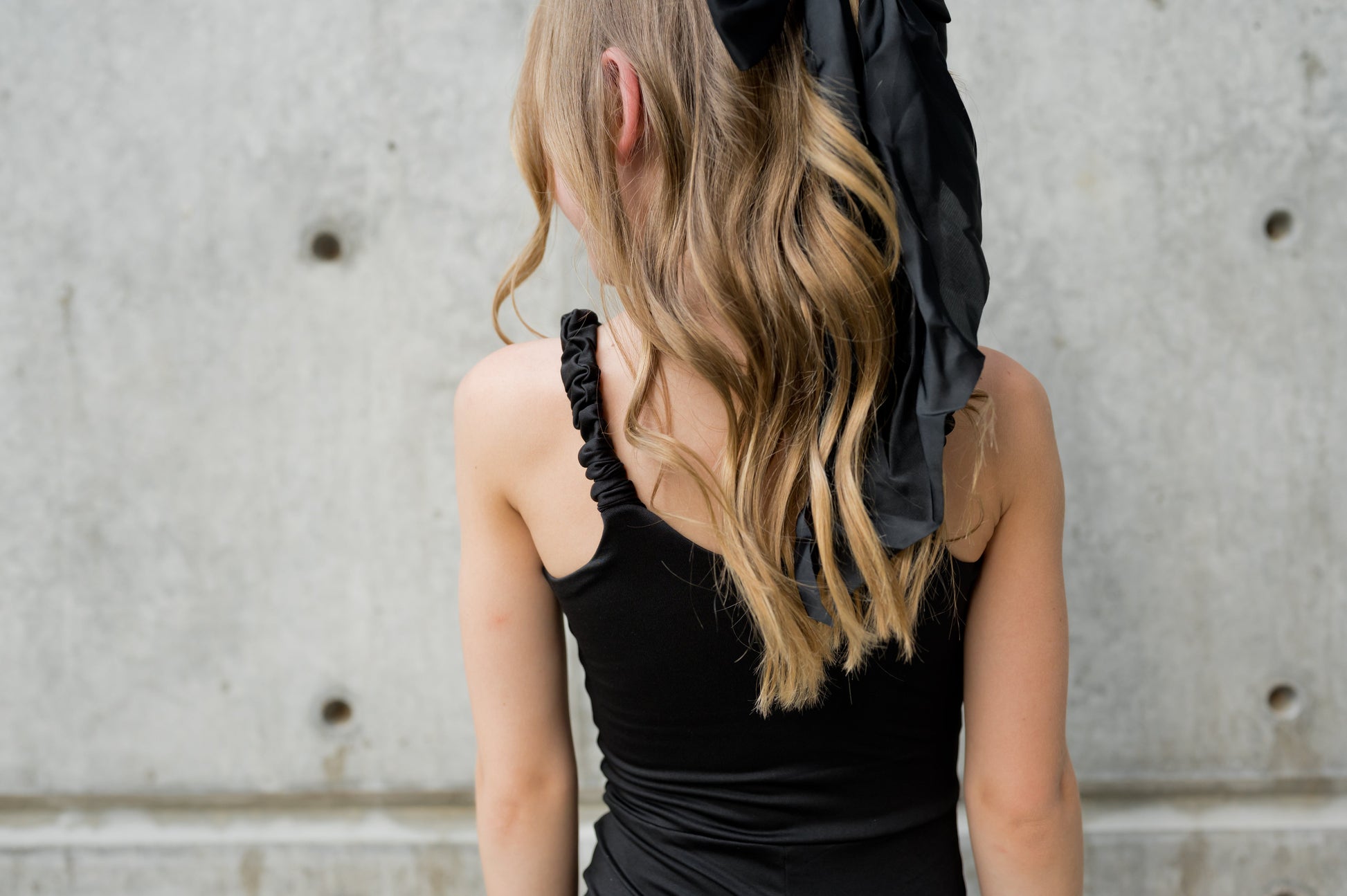 Introducing our new and improved Black Shortie! Perfect for dancing or lounging, this comfy shortie features a stylish bubble sleeve. Step up your dance wear game with this must-have piece.