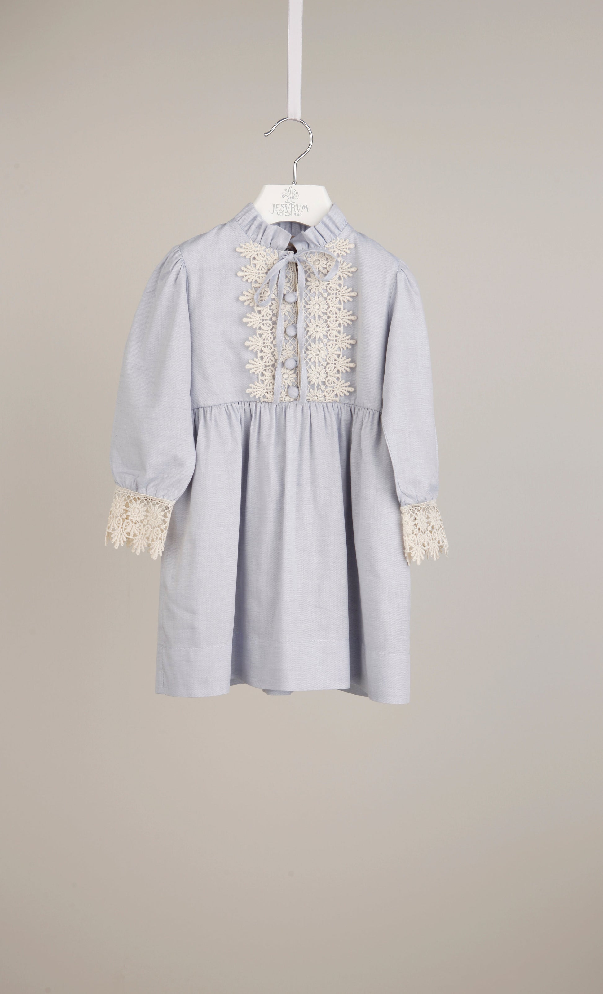 Warm cotton fabric for this dress with details of lace. 100% made in Italy