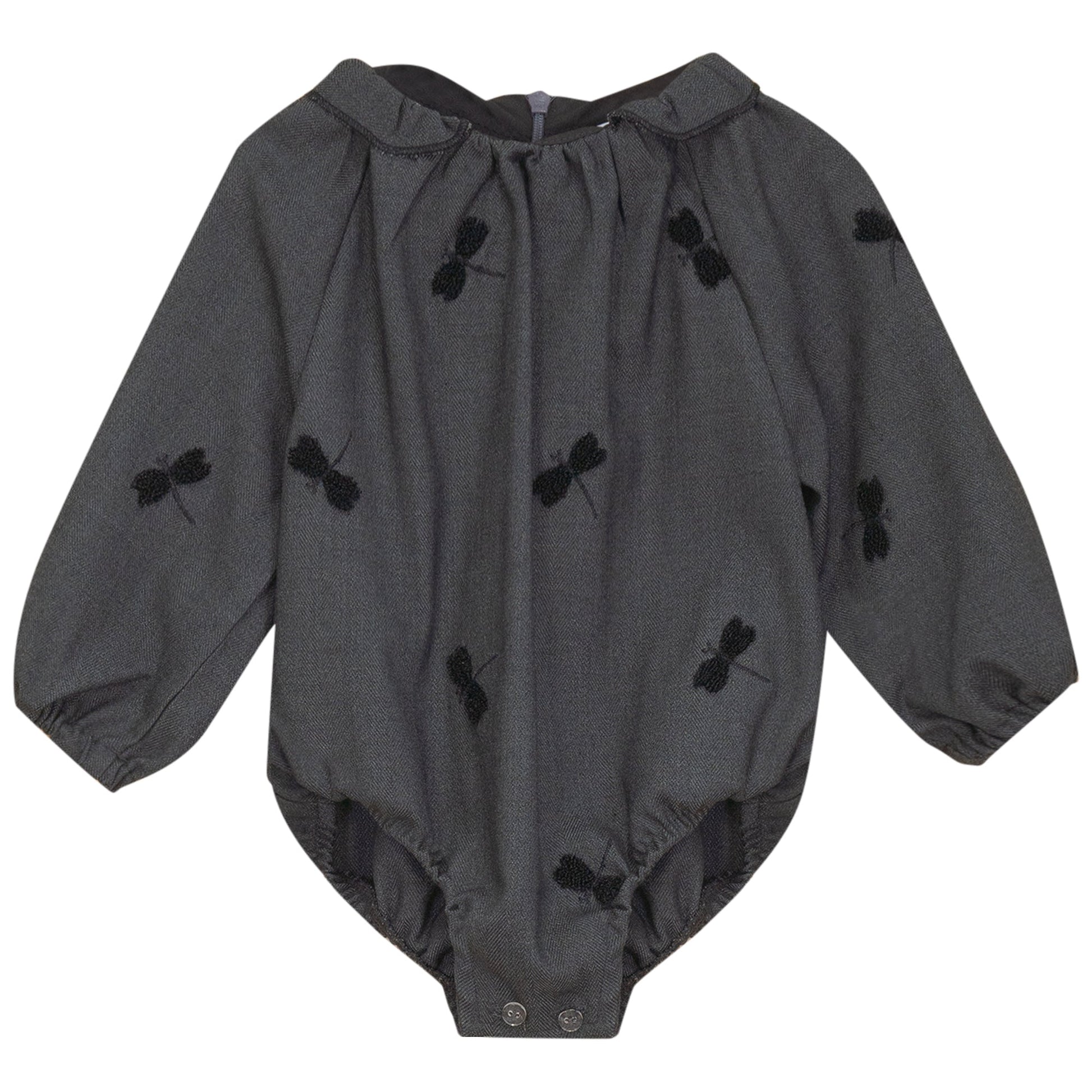 Dress your baby girl in this adorable cherry applique bubble, featuring a smocked neckline, center back invisible zipper, and elastic at the cuffs and leg openings for a comfortable fit. The charming cherry design adds a playful touch to this stylish outfit.