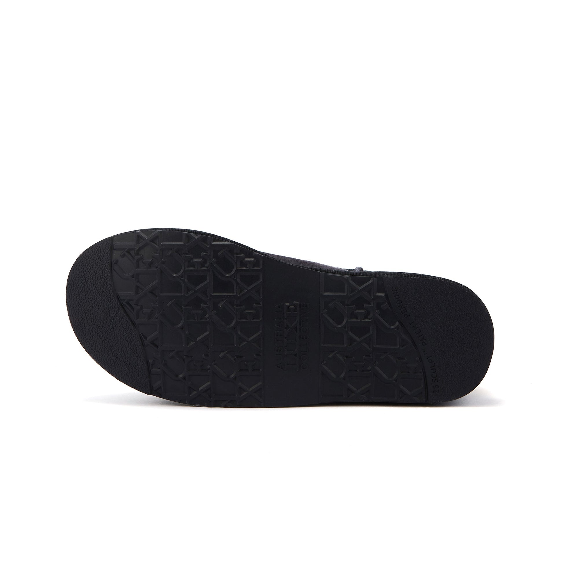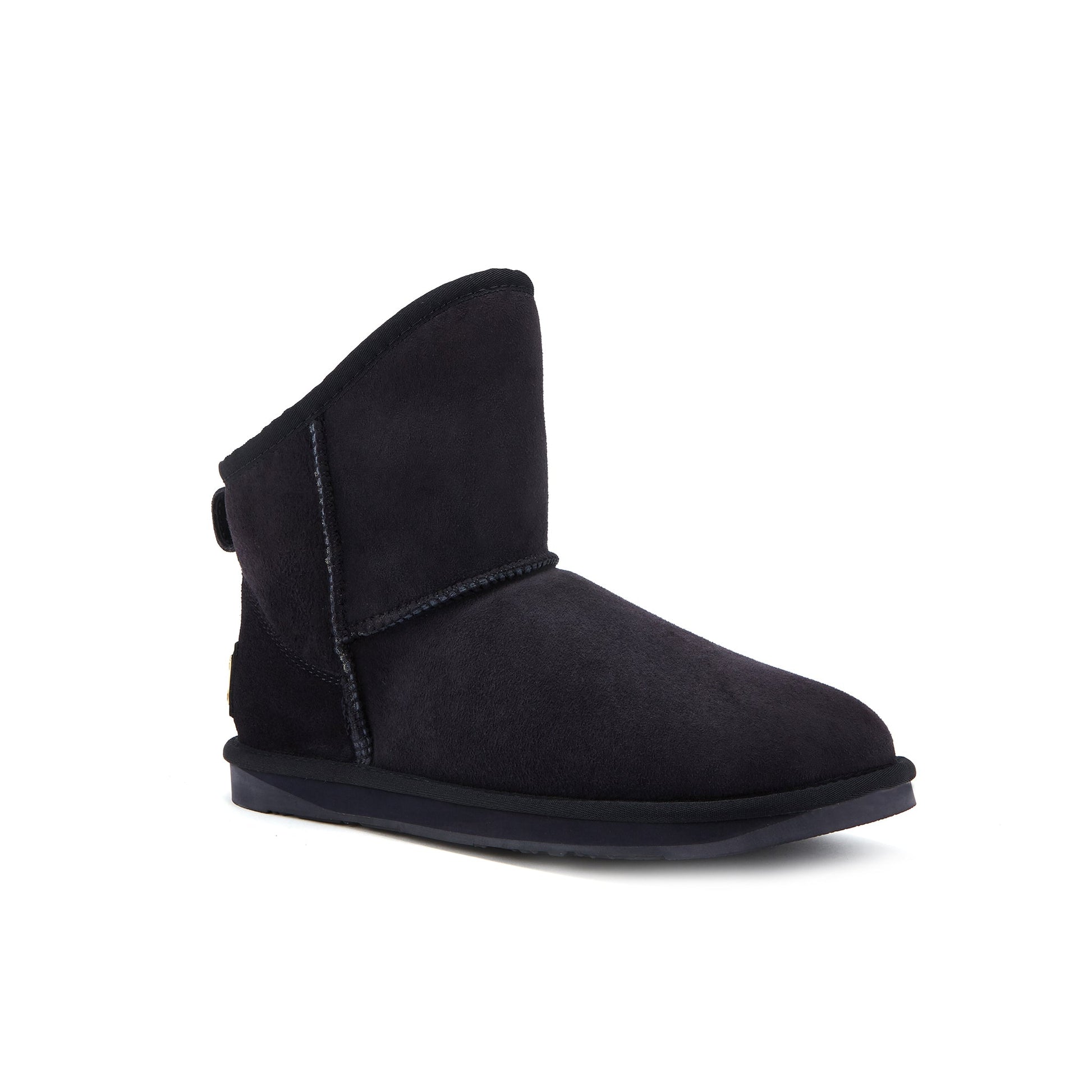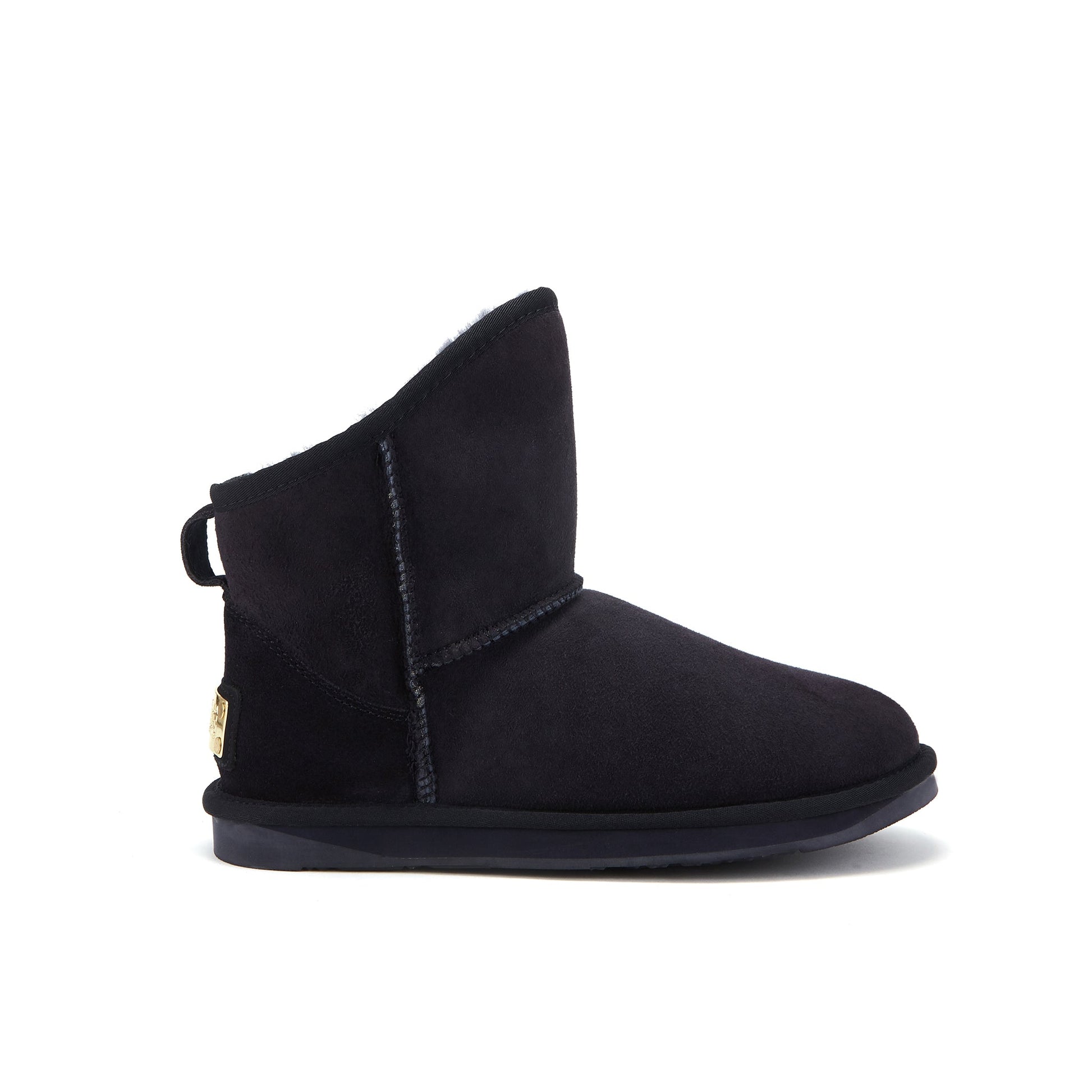 Luxe take on the classic style, pull on sheepskin boot in extra short height with our trademark scoop front silhouette. Suede finish.