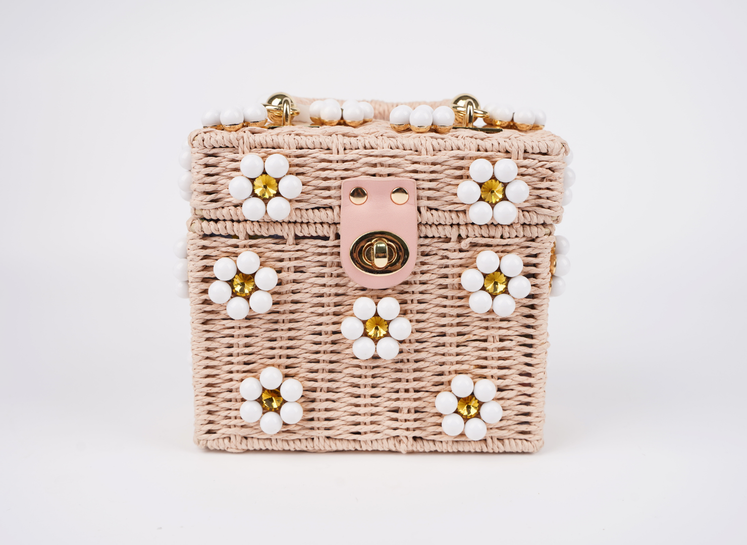 Dusty Pink Purse + White Daisy with Yellow Rhinestone Center