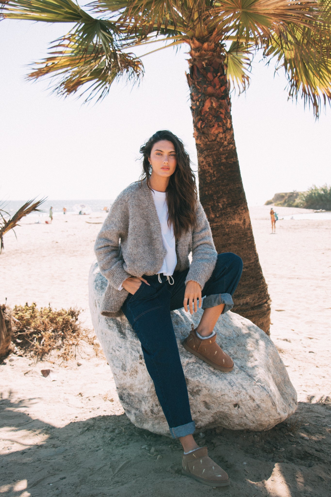 Electric & Rose x Luxe collaboration. Our classic Cosy pull on style boot with an ultra short scoop cut and gold embroidered lightning bolt detail. Double face sheepskin with suede finish.