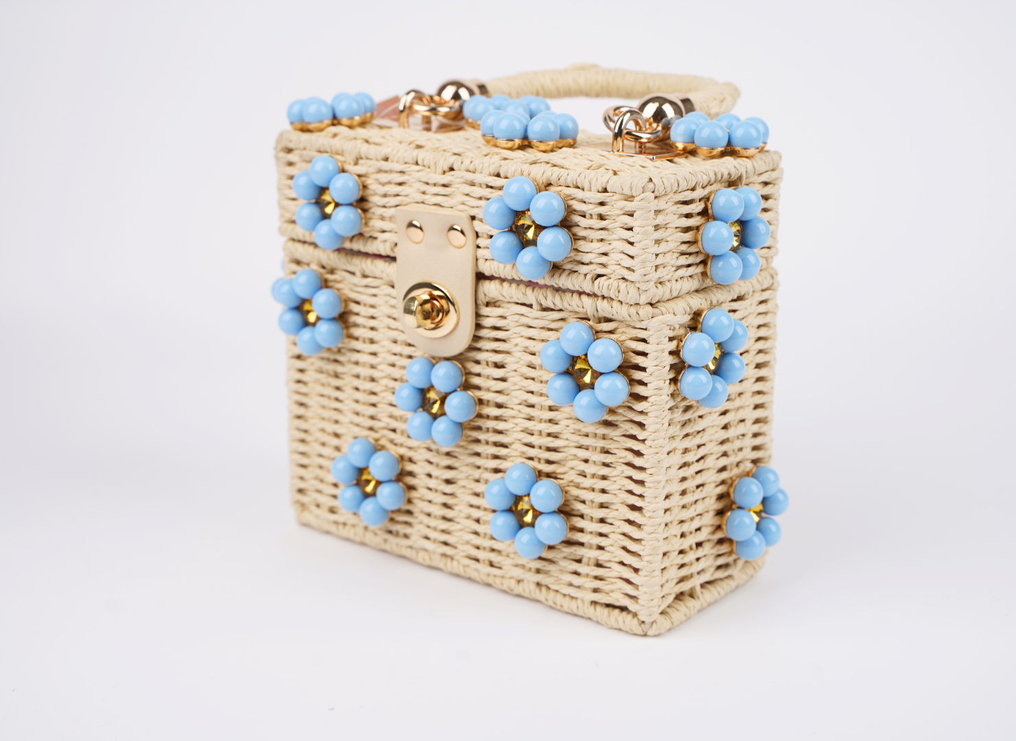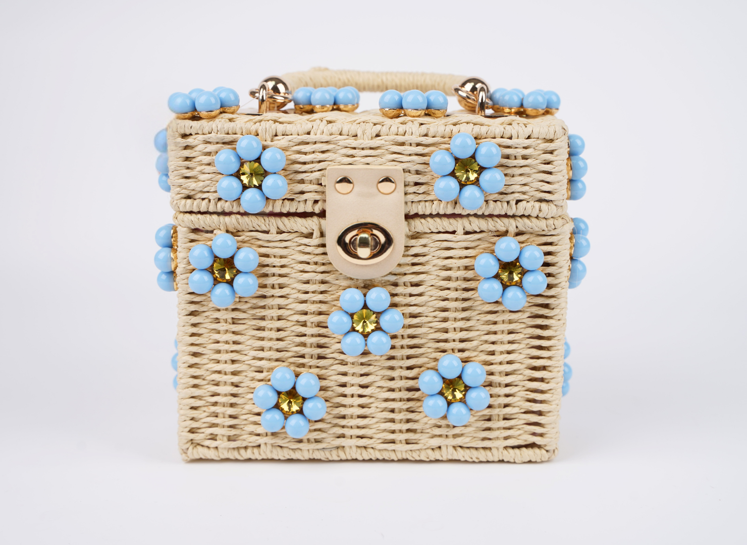 Cream Purse + Baby Blue Daisy with Yellow Rhinestone Center
