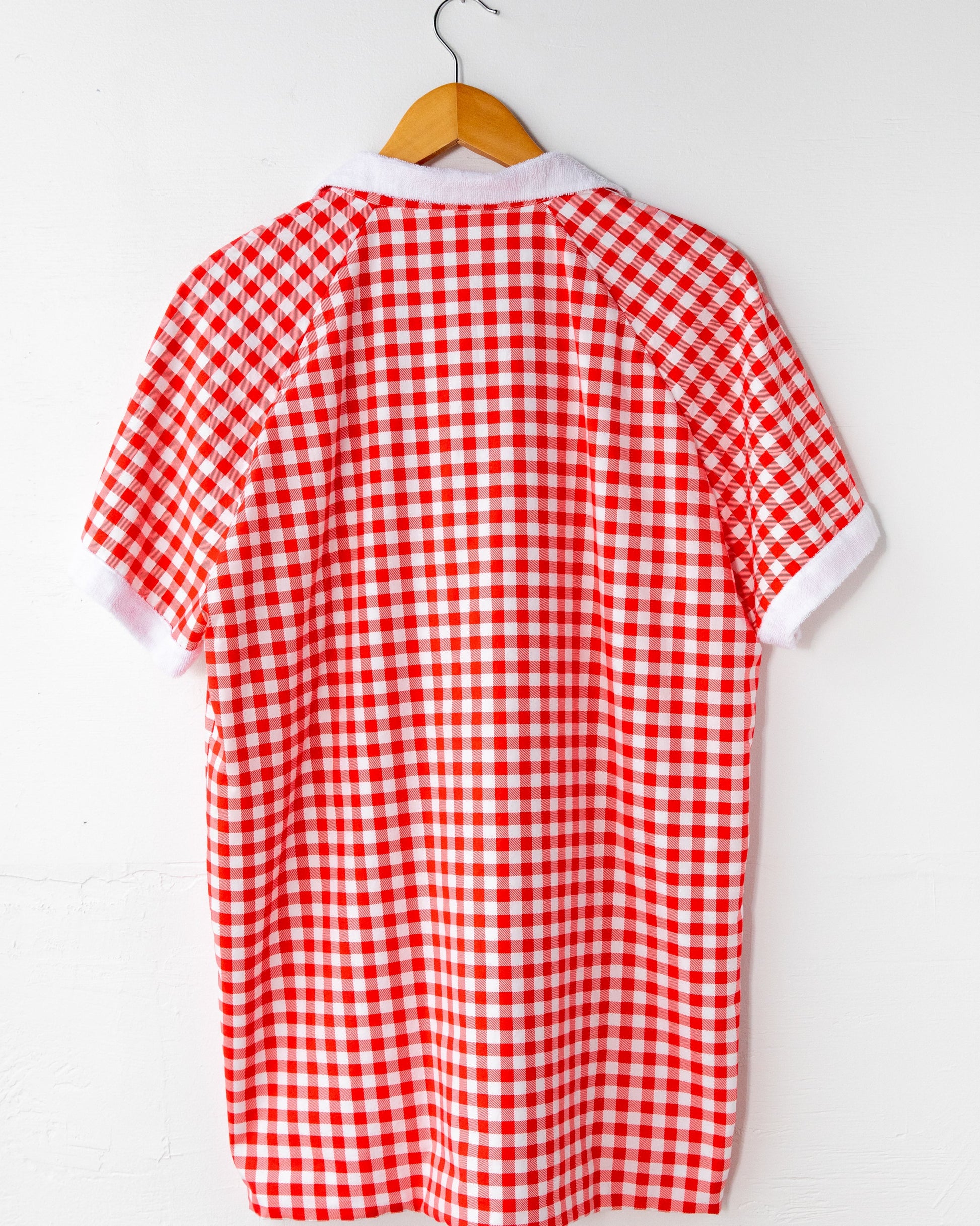 The shirt design is 100% true to its origins. The most iconic feature of the cabana shirt is the two cabana pockets on the front with white terry cloth contrasting trim and the shirt's white terry cloth liner. Like the original, it has a roomy fit and oversized collar. It comes in three gingham-print colors (Green, Red, and Yellow). It's made with 100% cotton shell and terry cloth liner. The fit of the Gingham Cabana Shirt is longer than our original Cabana Shirt to accommodate taller people.