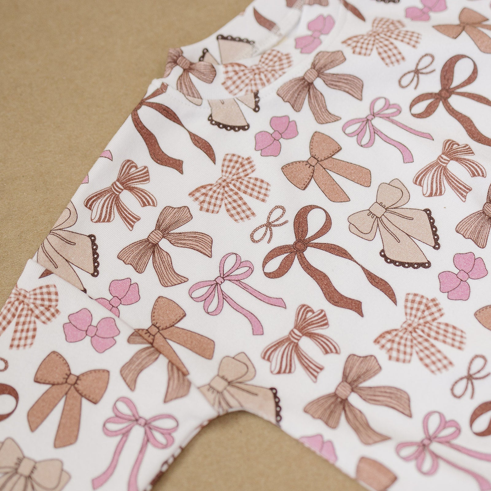 The Mocha Bows | Jogger Set is crafted from soft, breathable cotton, combining everyday comfort with effortless style. Featuring a relaxed fit, this set is perfect for playdates, lounging, and casual outings. The warm mocha tone reflects the cozy feel of fall, while the bow detail adds a sweet and stylish touch. A versatile staple that feels as good as it looks, ideal for autumn days and seasonal memories.