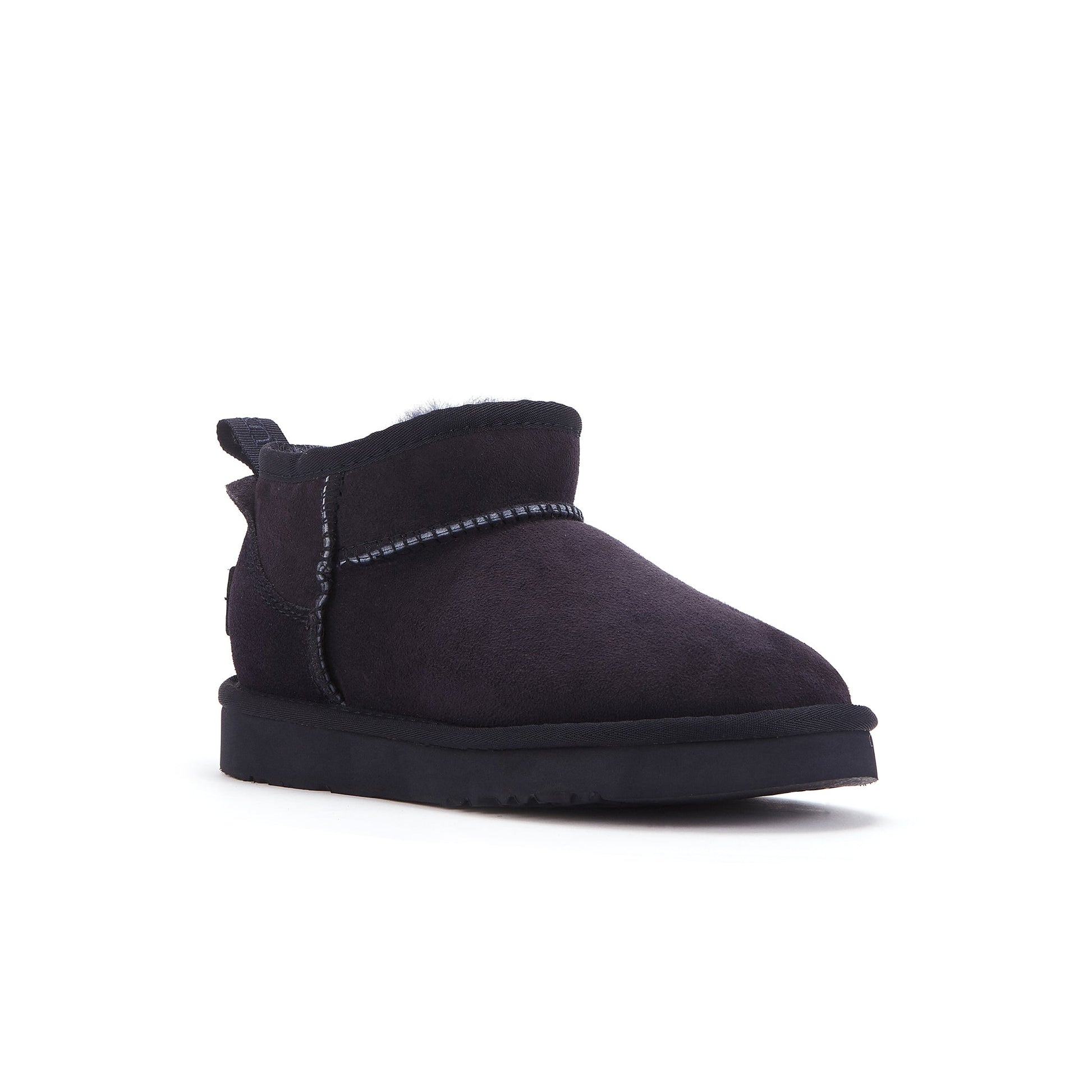Luxe's mini me version of our ultra short cut slip on boot. Scoop cut front and lined in pure super soft natural sheepskin. Suede outer finish.