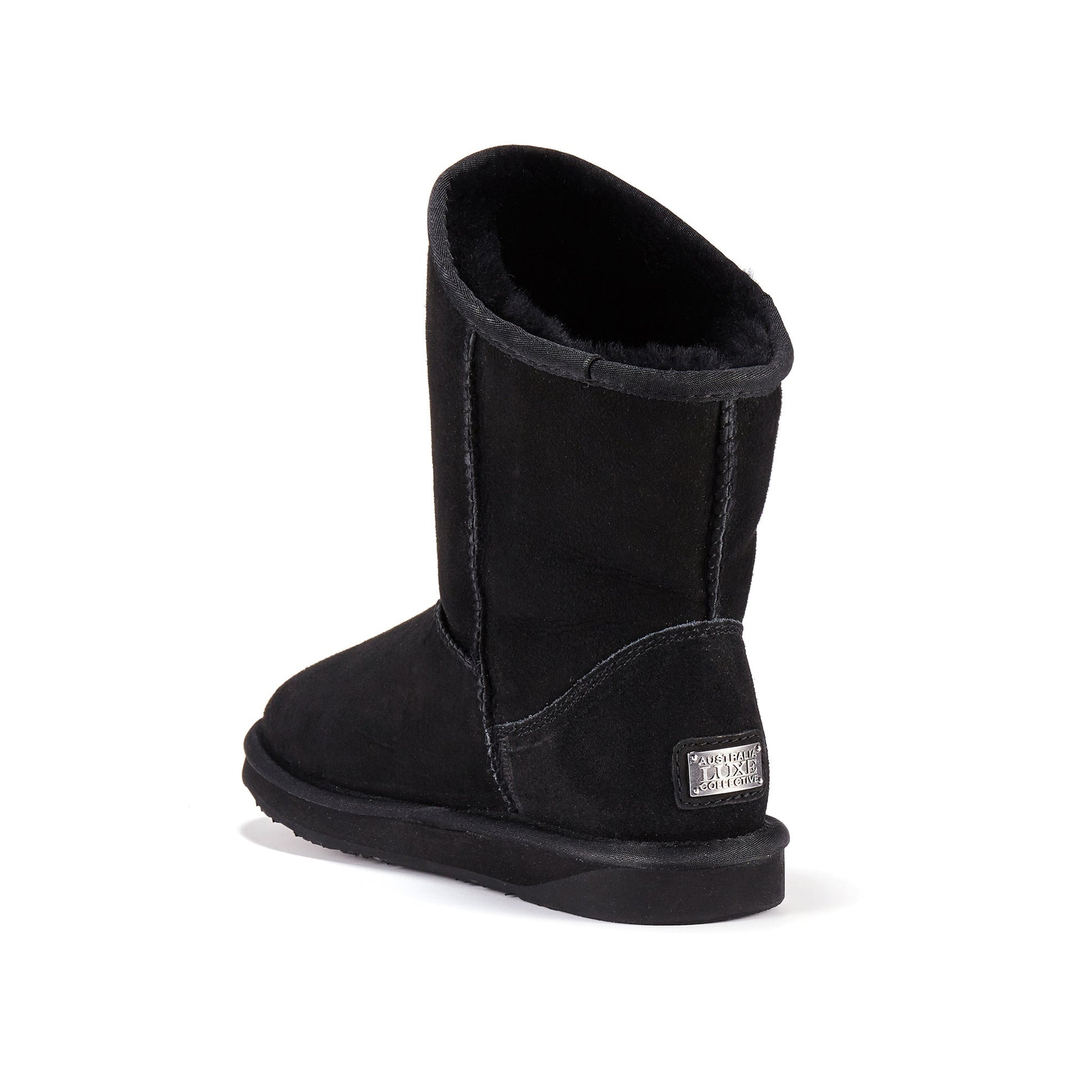 Luxe's mini me version of our extra short cut slip on boot. Scoop cut front and lined in pure super soft natural sheepskin. Suede outer finish.