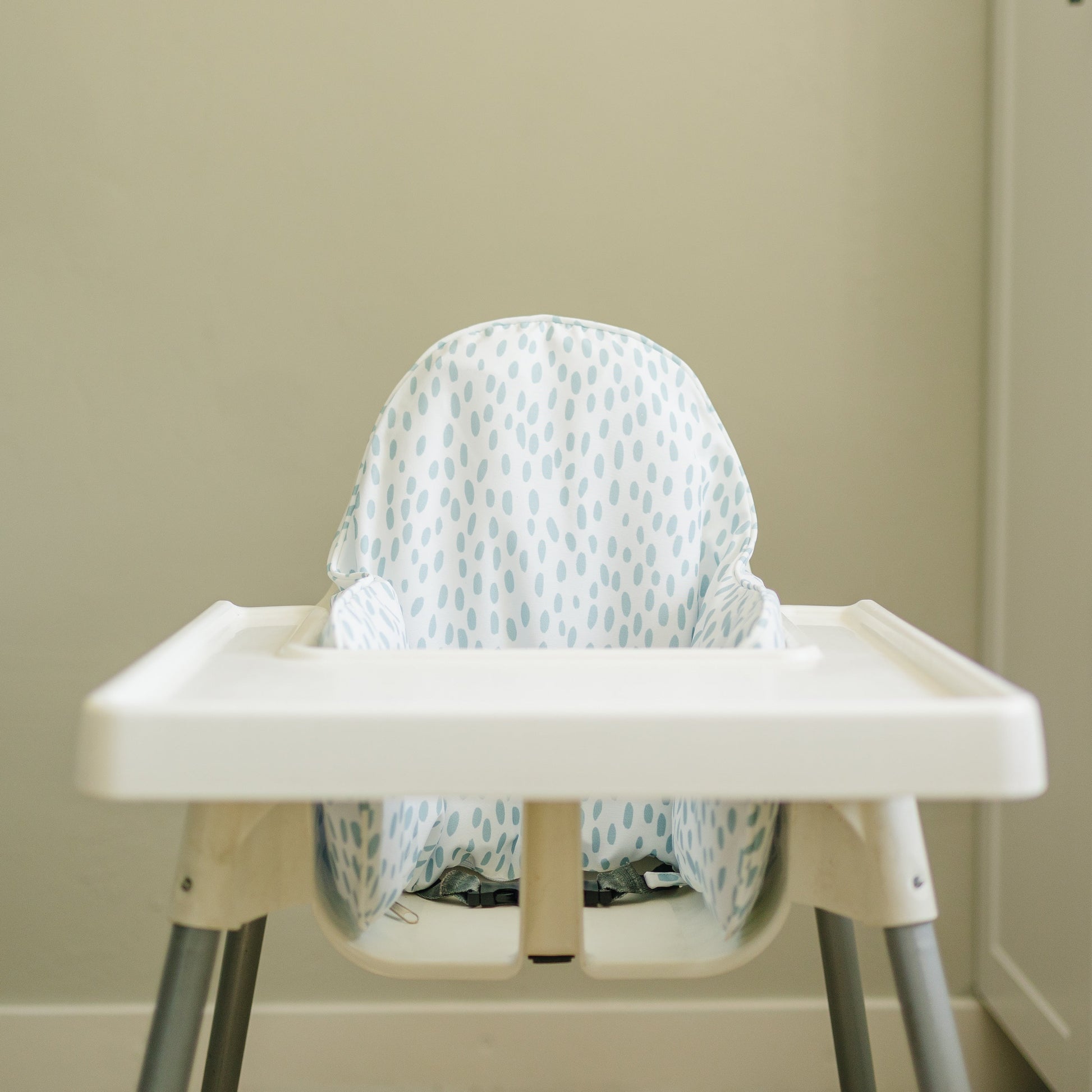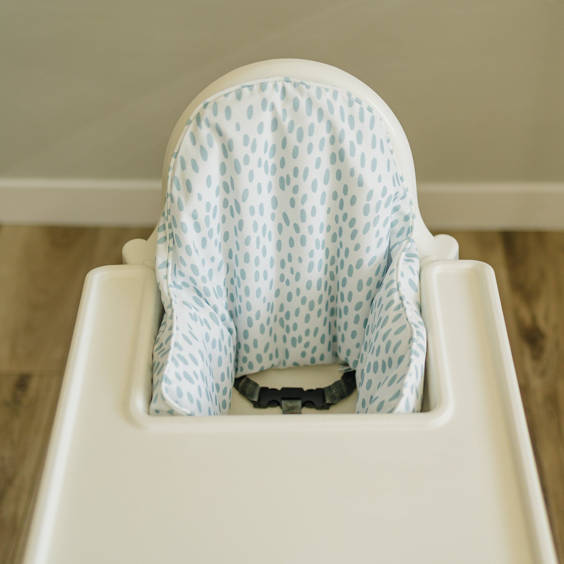 Light blue dots on a white background! Wipeable cushion cover for the IKEA Antilop Highchair