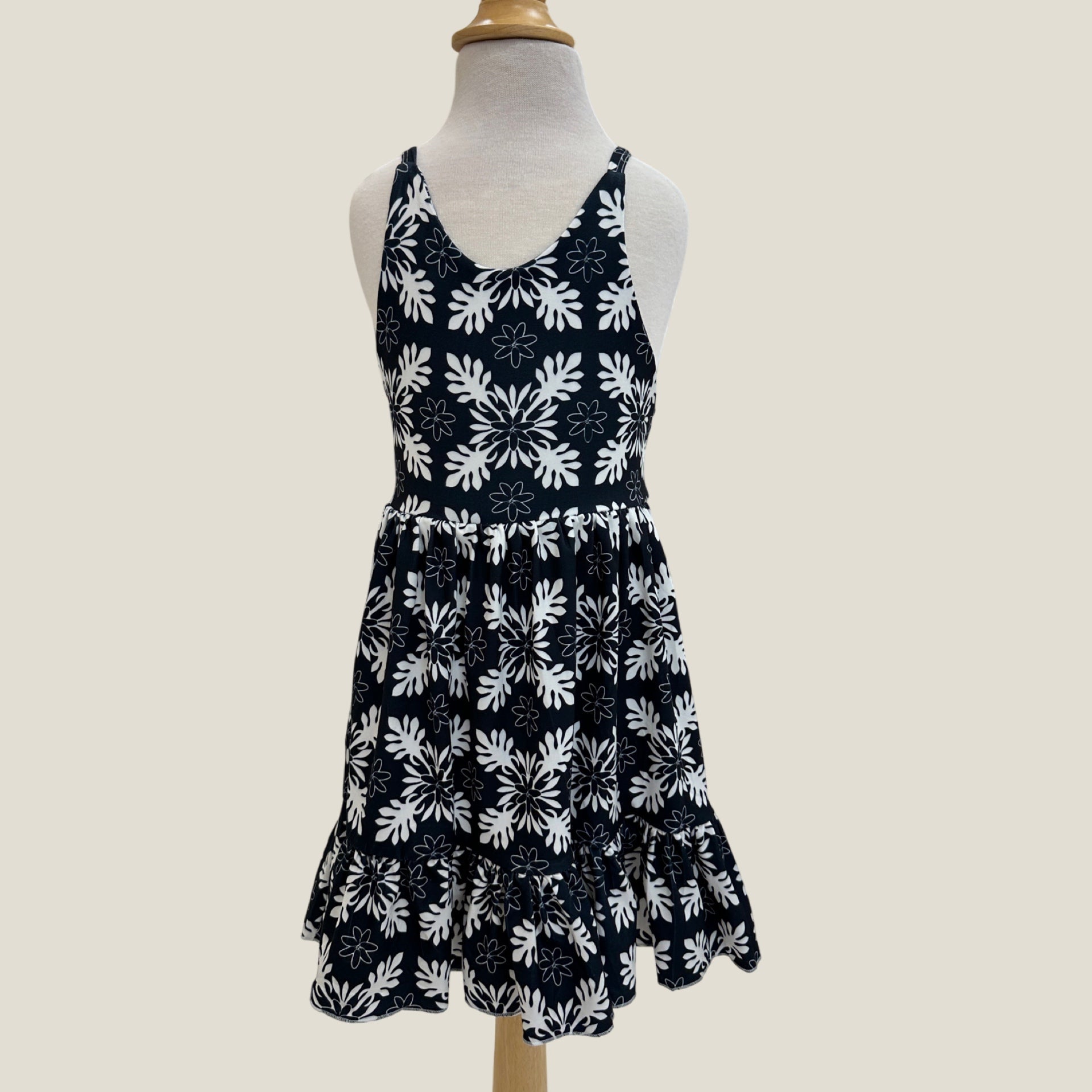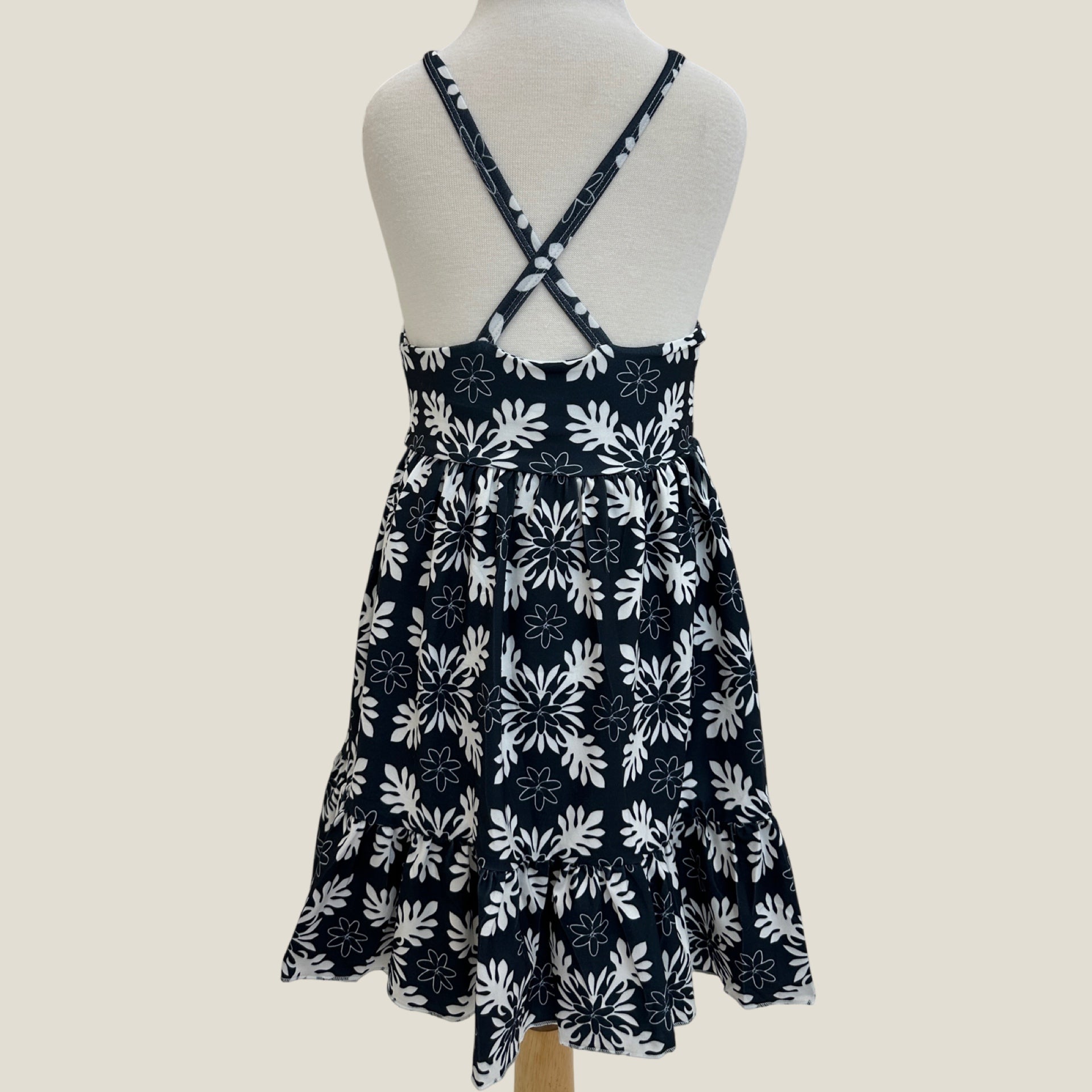 A charming and breezy dress designed for twirling! Made from soft, lightweight bamboo-cotton, this dress features adjustable crisscross back straps and a flowy silhouette. Perfect for sunny days, special occasions, or island adventures.