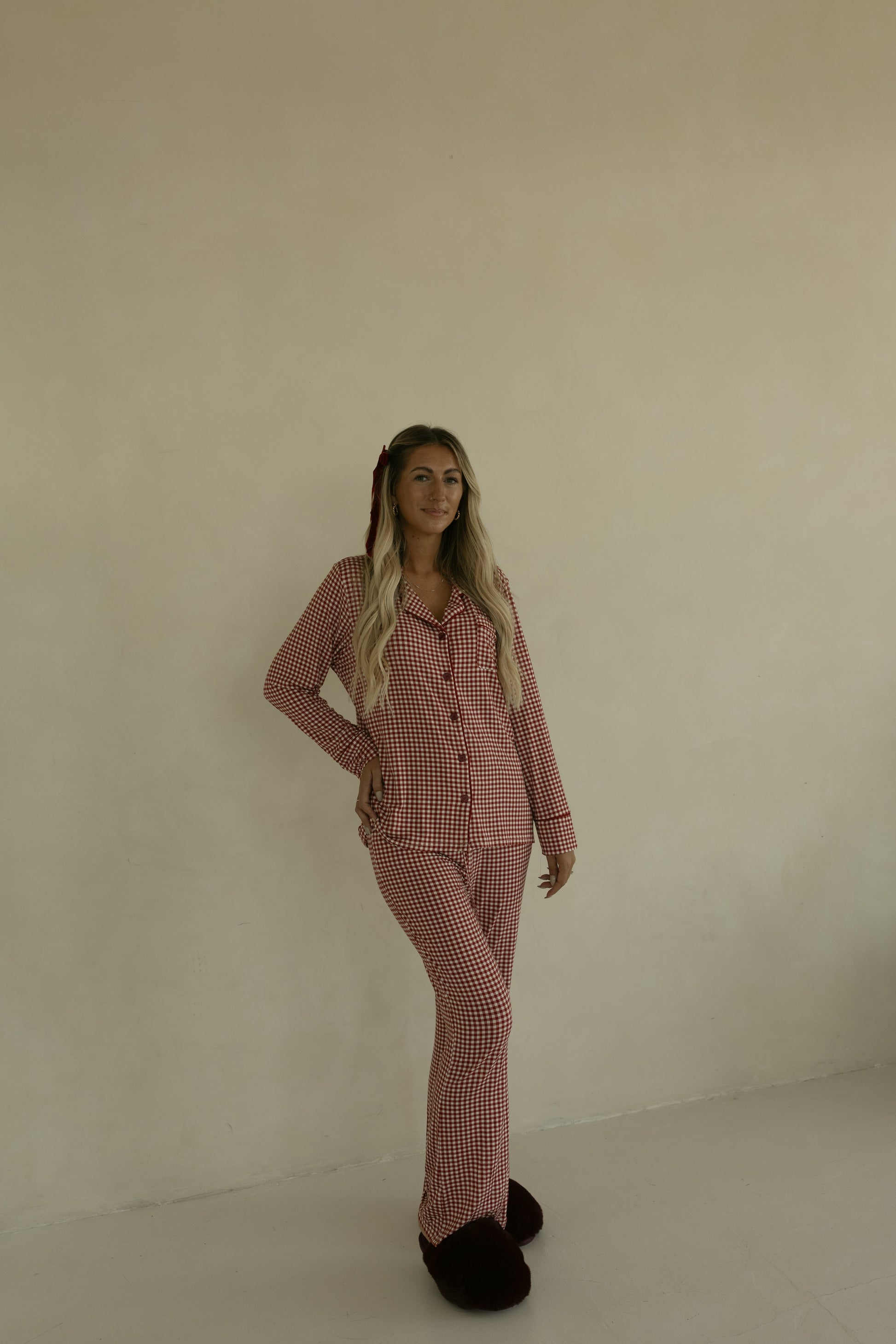 Long Sleeve Women's Bamboo Pajamas | Red Gingham