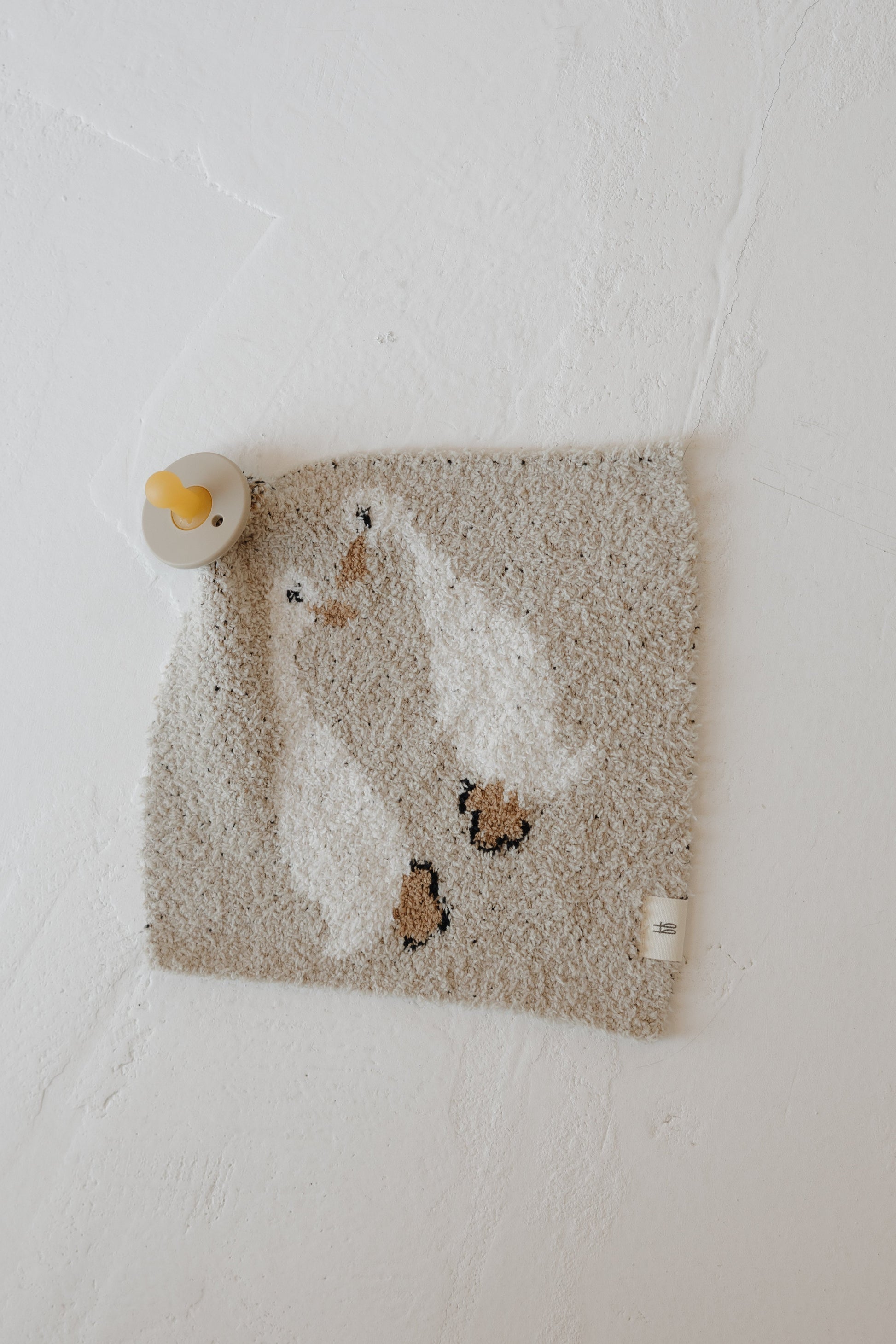 The softest lovey your little one will cherish, made from plush microfiber feather yarn in our Silly Goose print.