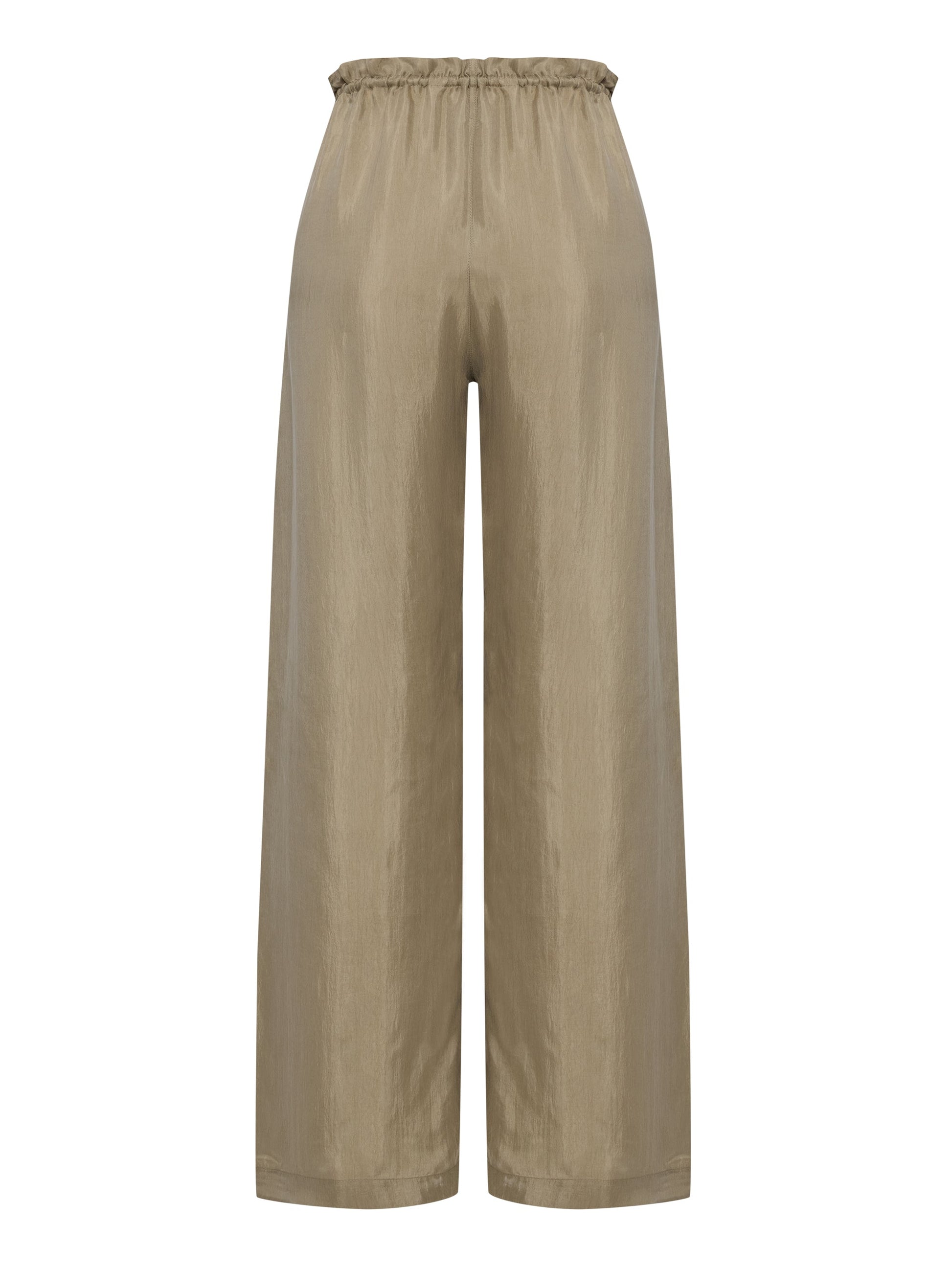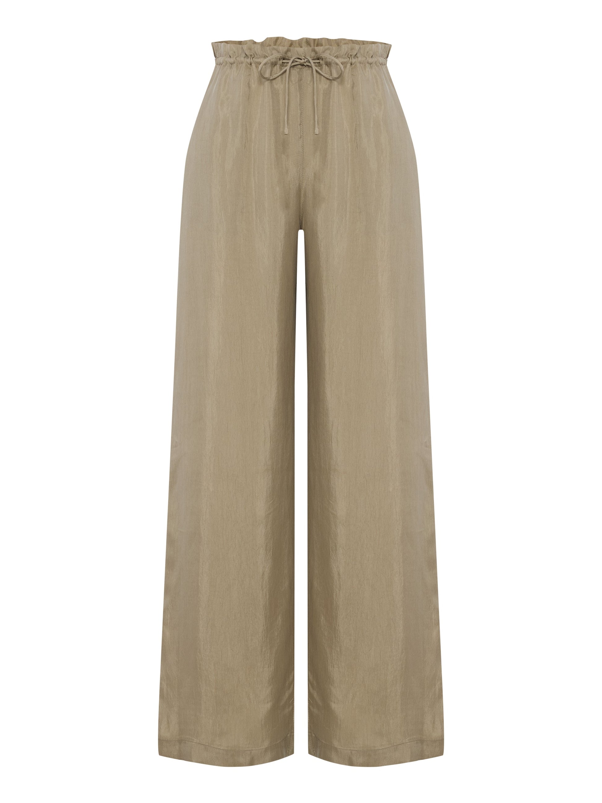 Flowing mid-rise pants designed for effortless elegance, featuring an elasticated waistband with adjustable drawstrings and practical side pockets. With their relaxed wide-leg silhouette, these pants offer a timeless yet modern style. The lightweight fabric offers a subtle sheen and soft drape. A longer version of the matching shorts, these pants pair seamlessly with the Lucid Tie Shirt or Lucid Knot Top for a coordinated look, perfect for relaxed days or elevated occasions.