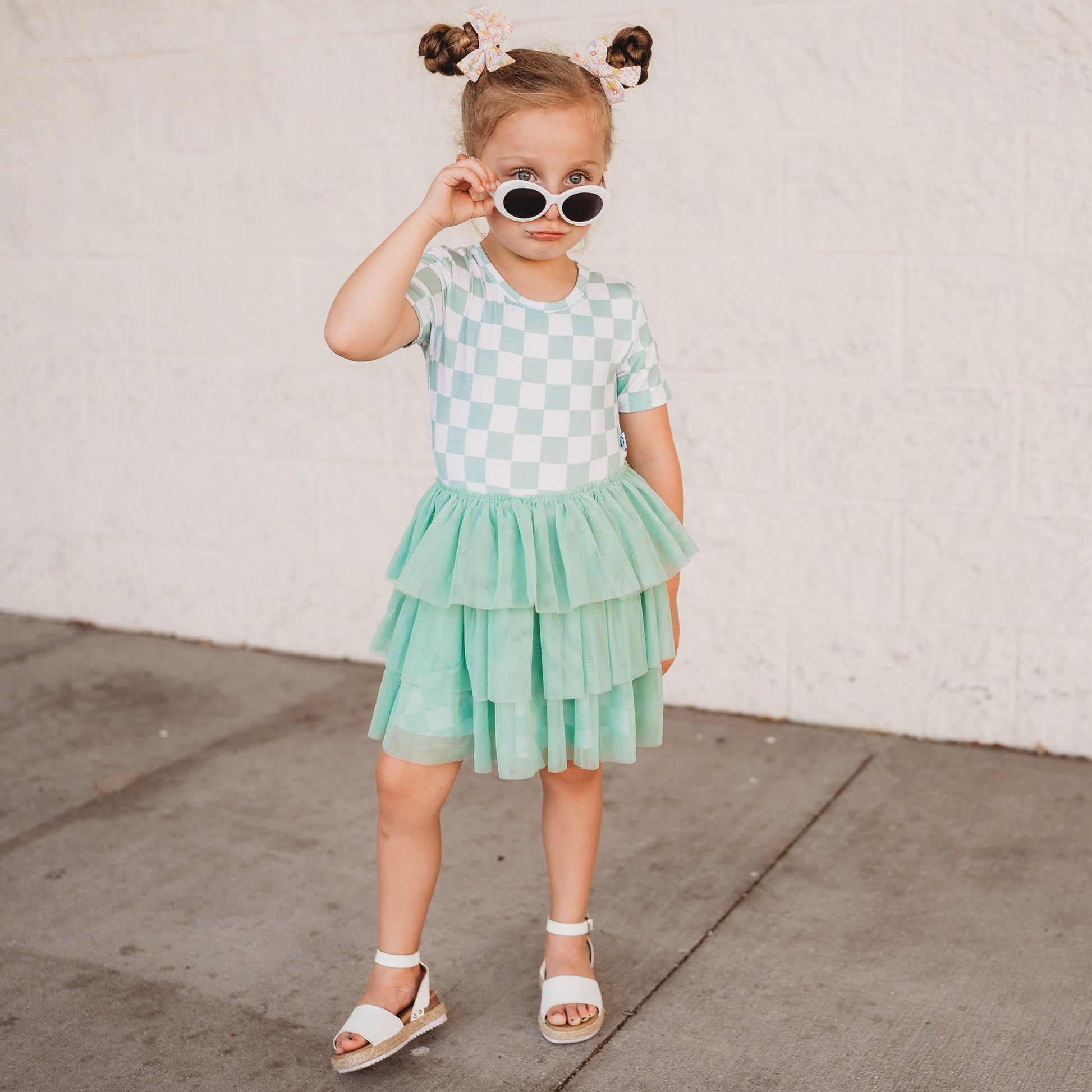 She'll be ready to prance and dance in this dreamy Mint Checkers Tutu Dress! Made with comfy fabric and an adorable checker pattern, it's the perfect pick for her next big twirl. Plus, it's the must-have choice for any mini fashionista! Take checkers to the next level with this dreamy tutu dress!