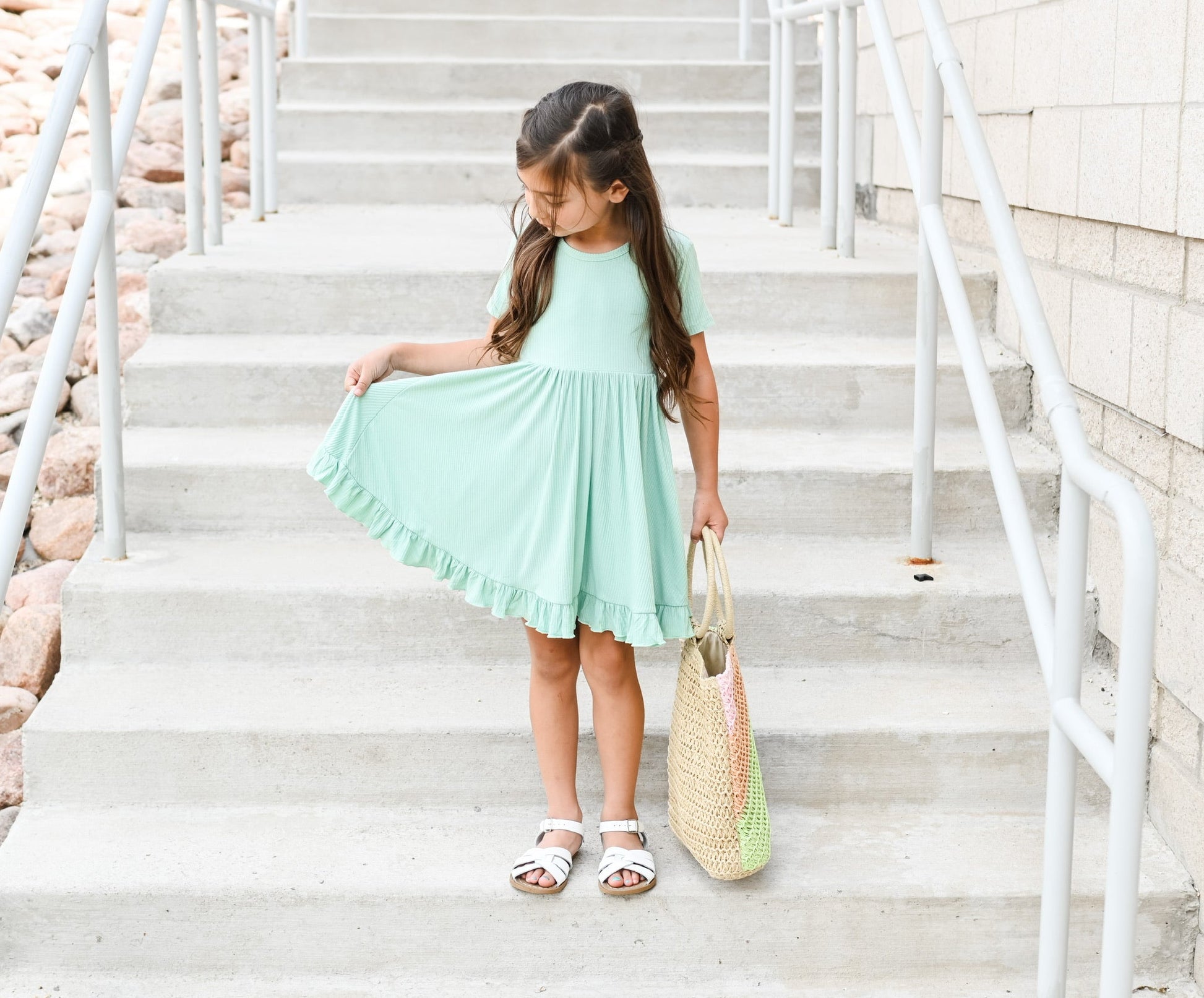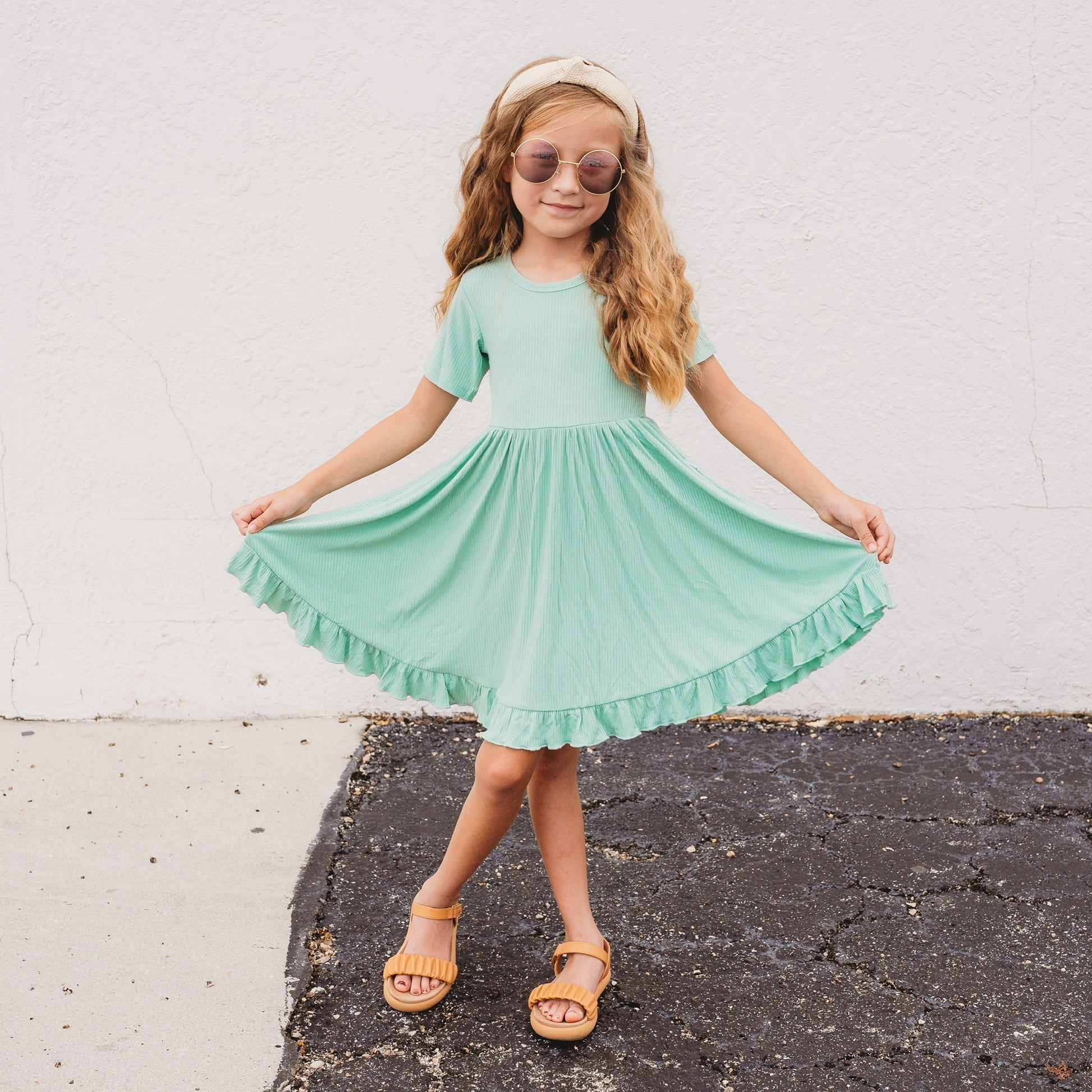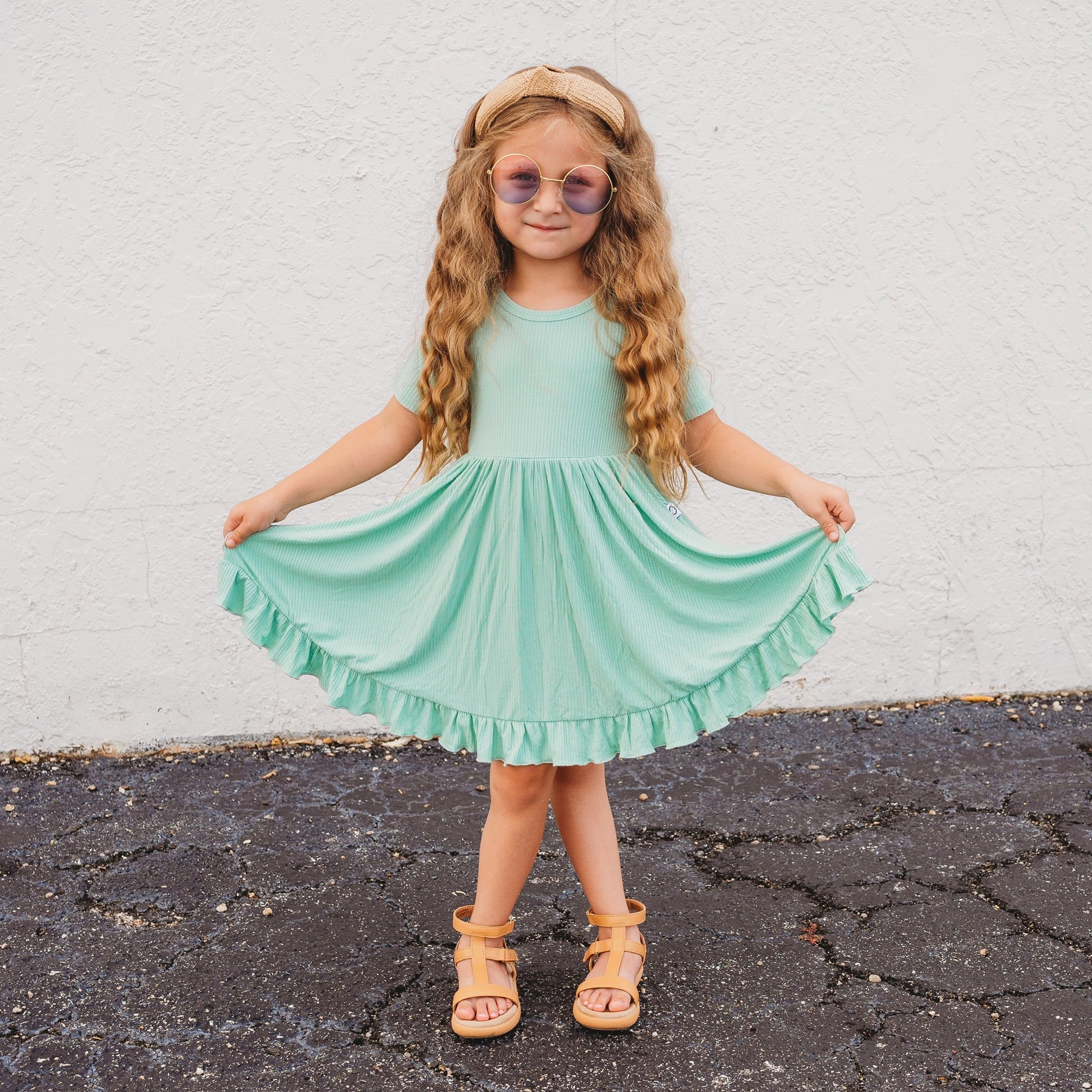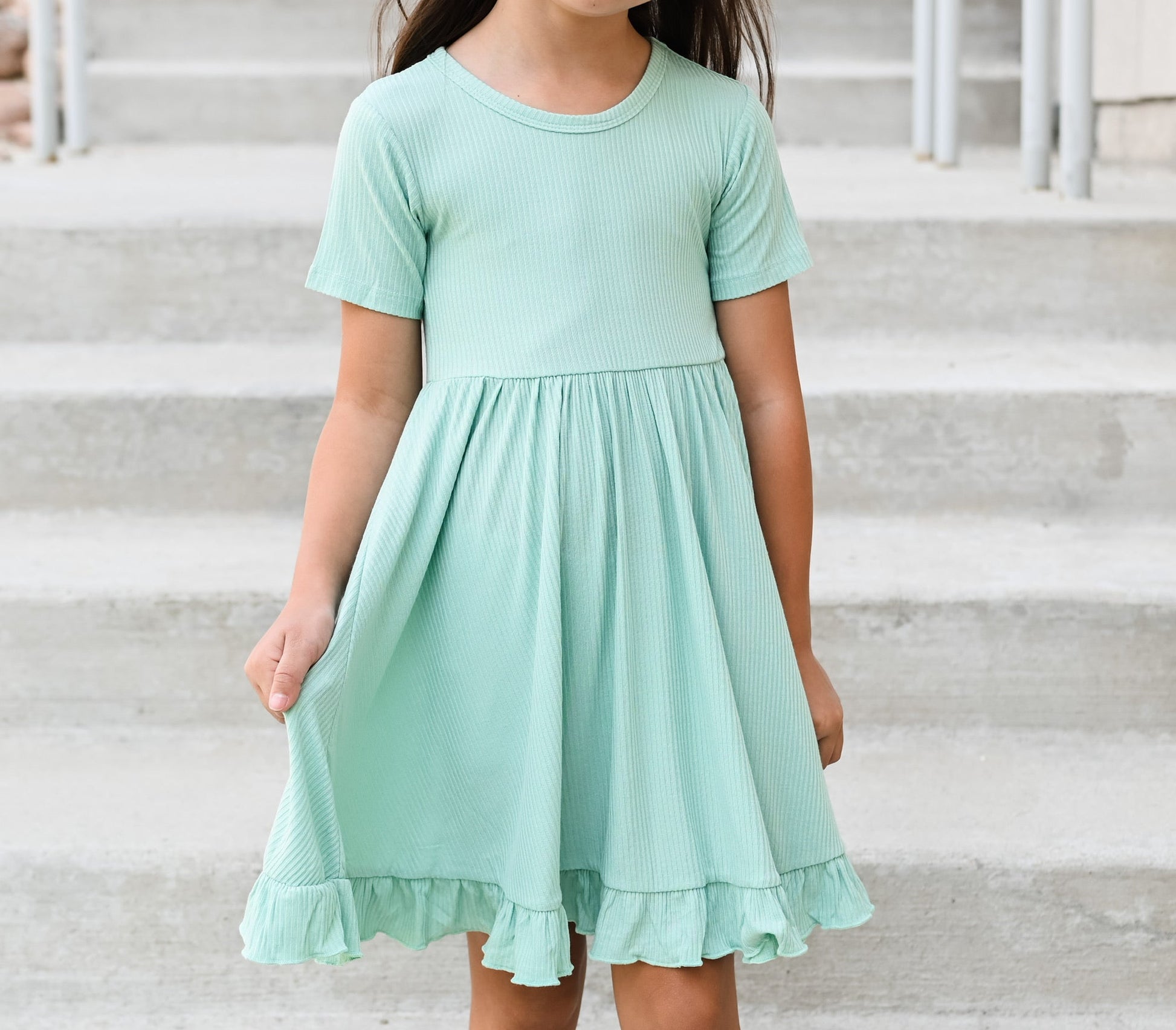 Your little girl will be the twirling queen in this little gem! Our Mint Rib Dream Ruffle Dress is the perfect way to compliment her one-of-a-kind style. With this short sleeve dress, ribbed detail and darling ruffles, she's sure to feel like she's living the dream. She'll take all the compliments in stride!