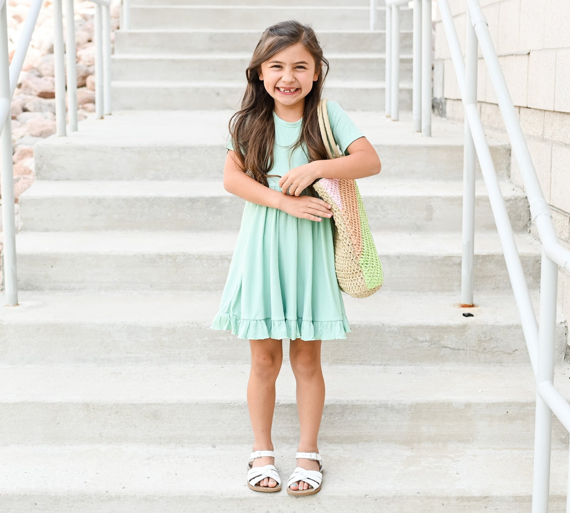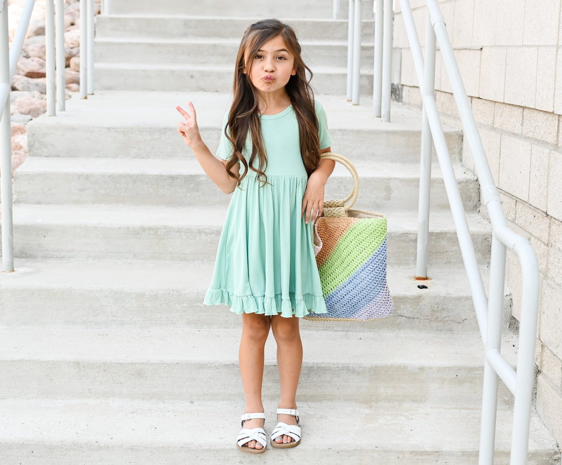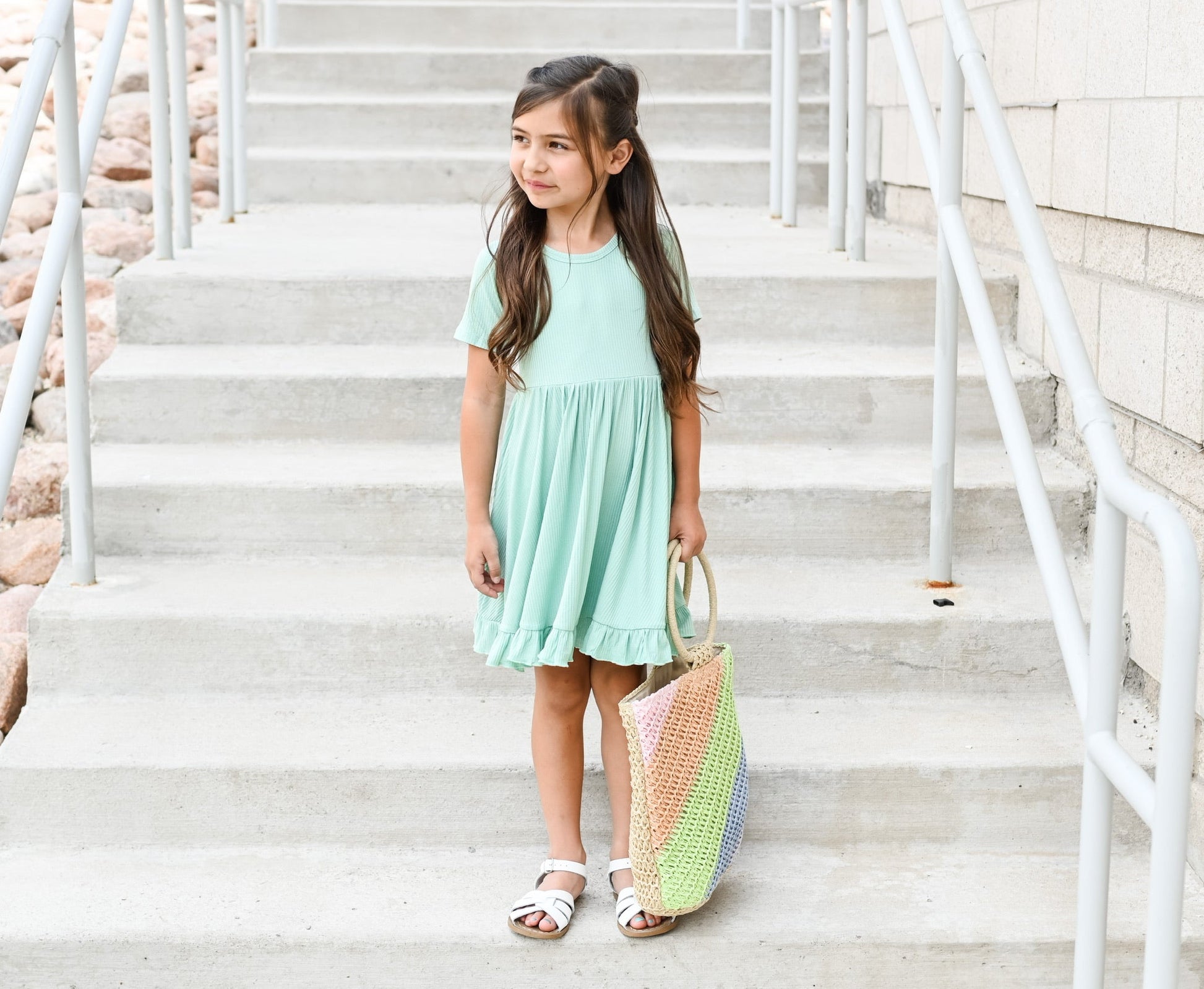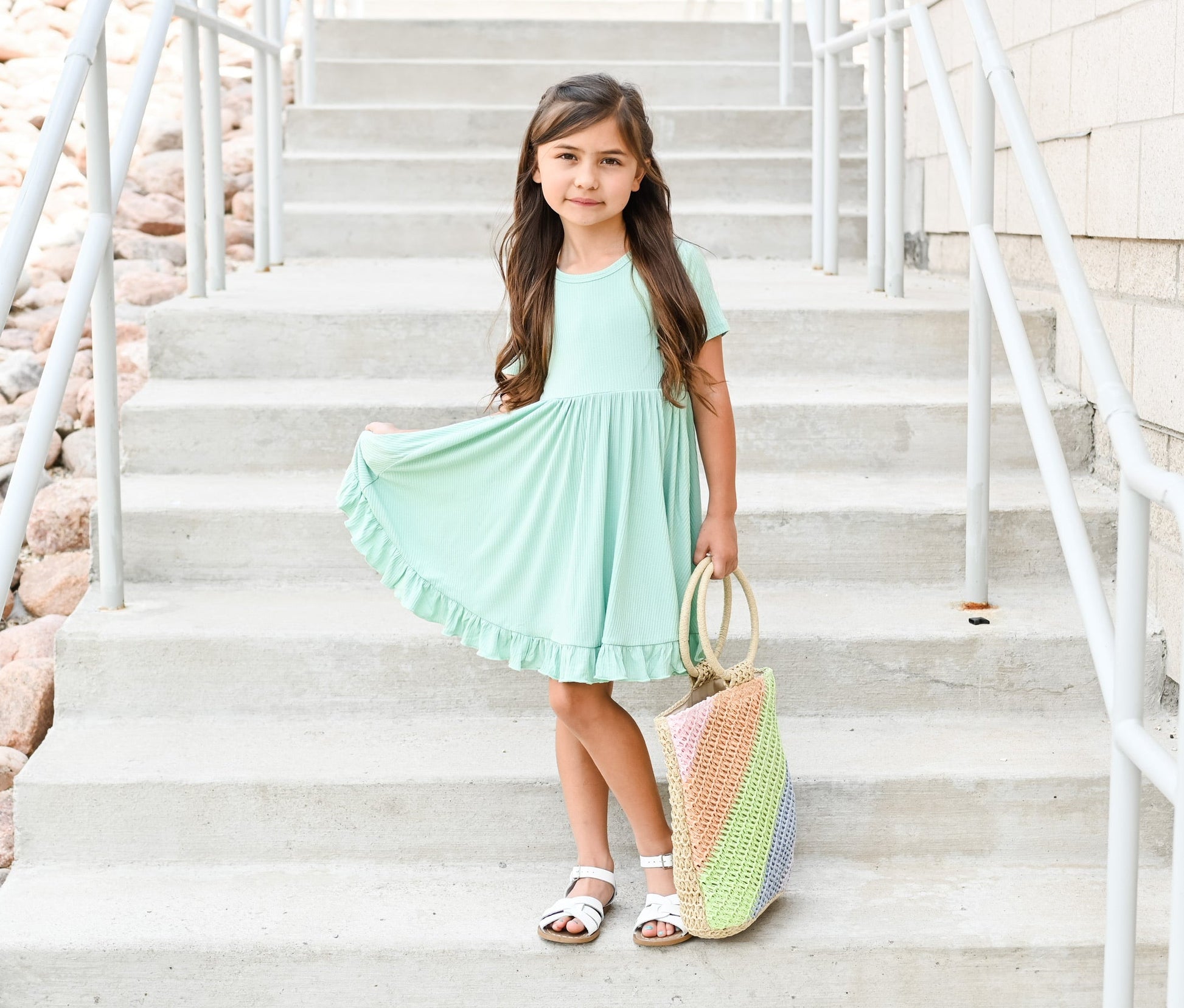 Your little girl will be the twirling queen in this little gem! Our Mint Rib Dream Ruffle Dress is the perfect way to compliment her one-of-a-kind style. With this short sleeve dress, ribbed detail and darling ruffles, she's sure to feel like she's living the dream. She'll take all the compliments in stride!